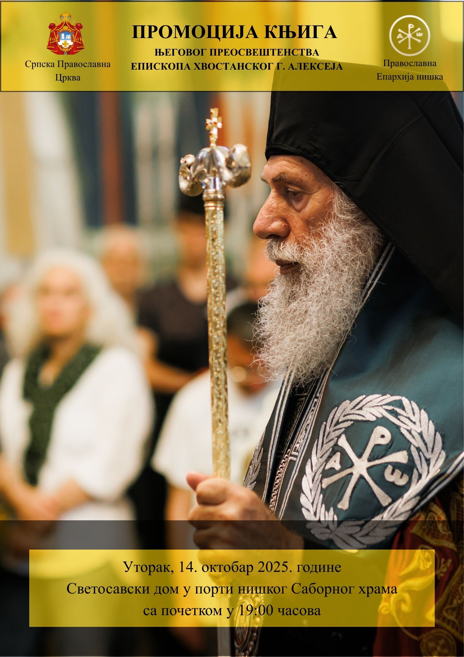НАЈАВА ЗА ПРОМОЦИЈУ КЊИГА ЊЕГОВОГ ПРЕОСВЕШТЕНСТВА ЕПИСКОПА ХВОСТАНСКОГ Г. АЛЕКСЕЈА