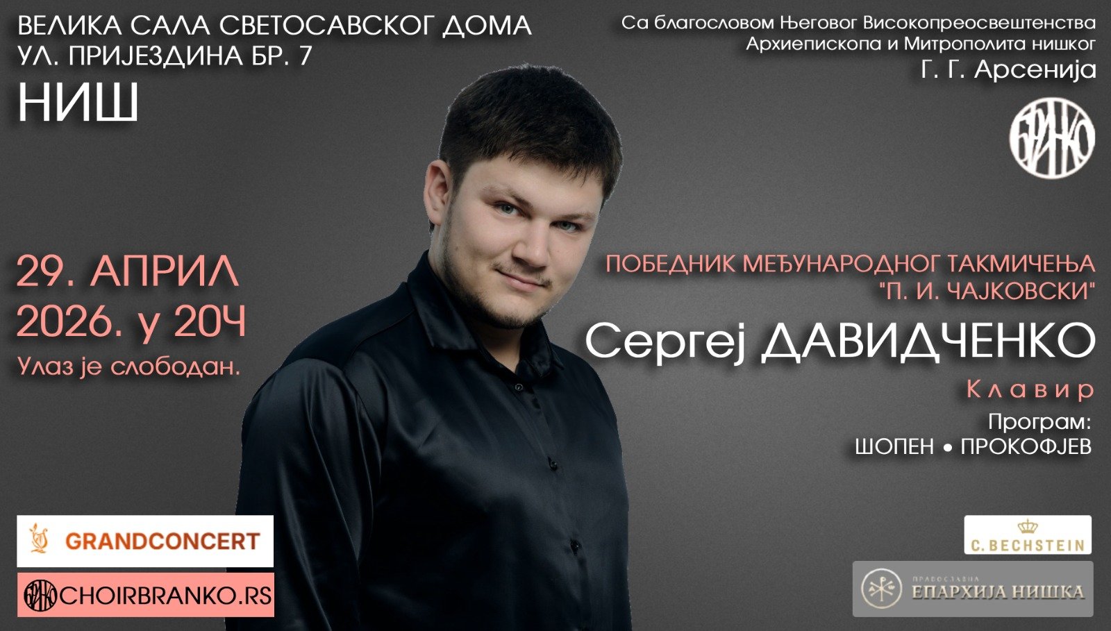 НАЈАВА ЗА НАСТУП ПИЈАНИСТЕ СЕРГЕЈА ДАВИДЧЕНКА У СВЕТОСАВСКОМ ДОМУ У НИШУ