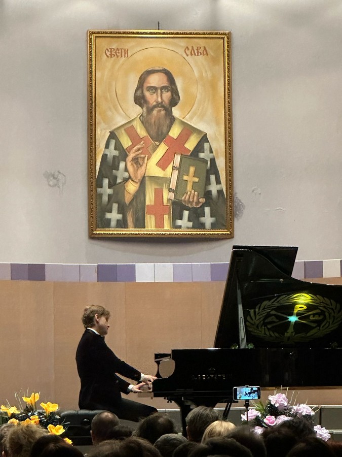 Посебну димензију концерту дао је и инструмент на којем је пијаниста наступио – концертни клавир марке Бехштајн (Bechstein) у Великој сали Светосавског дома, на коме се налази монограм Исуса Христа, симбол који се традиционално повезује са царем Константином Великим и његовом чувеном поруком „Овим знаком побеђујеш“.