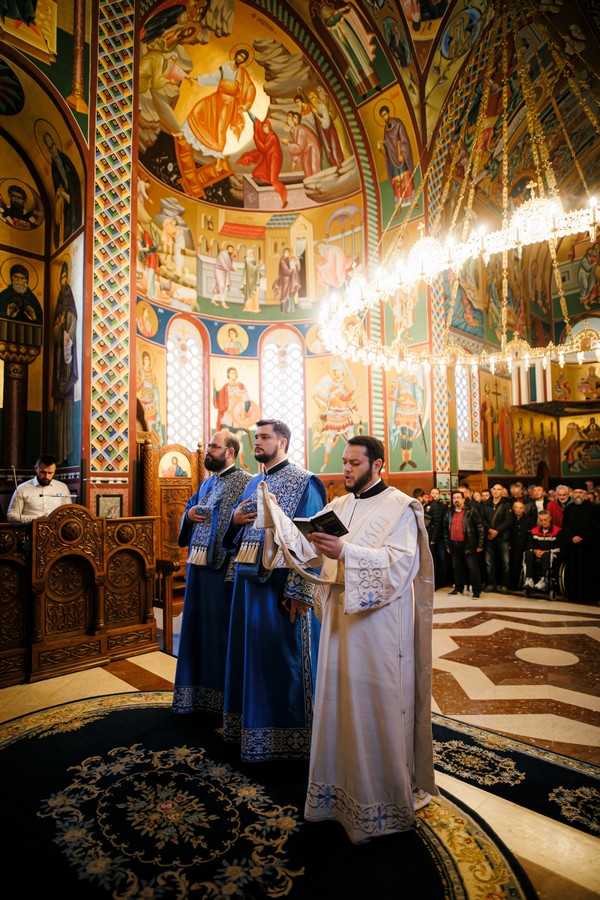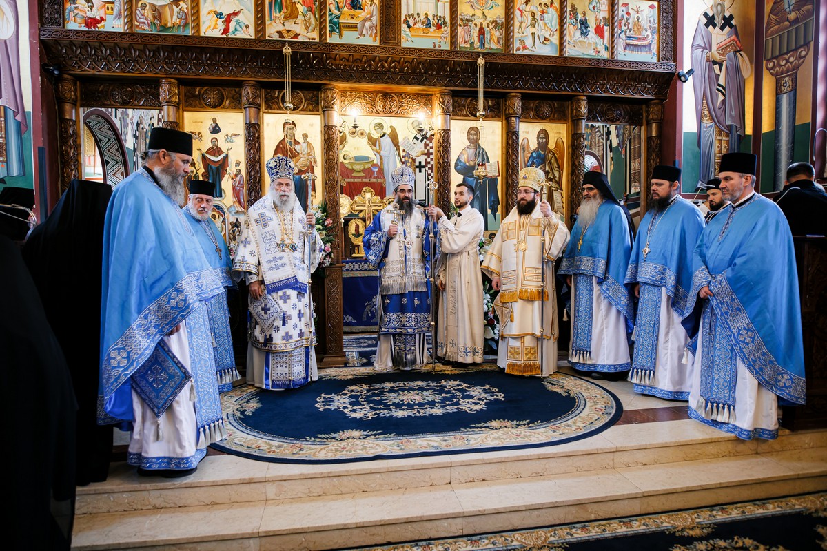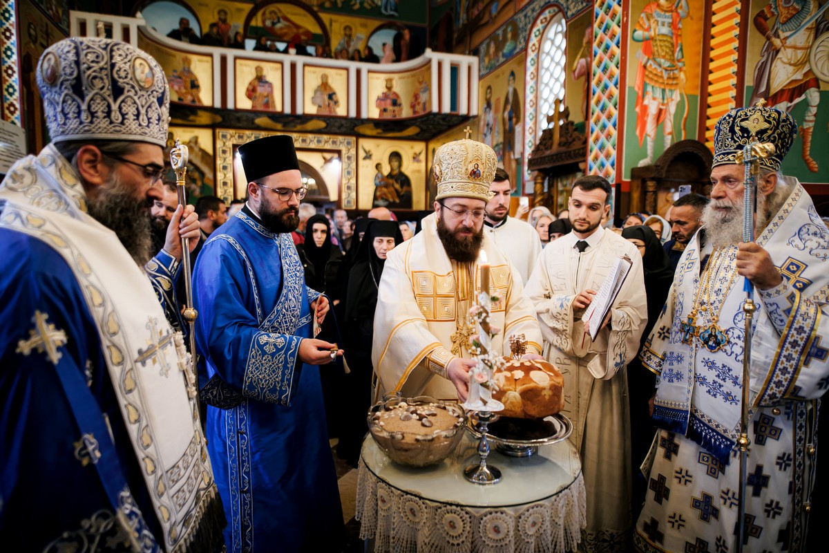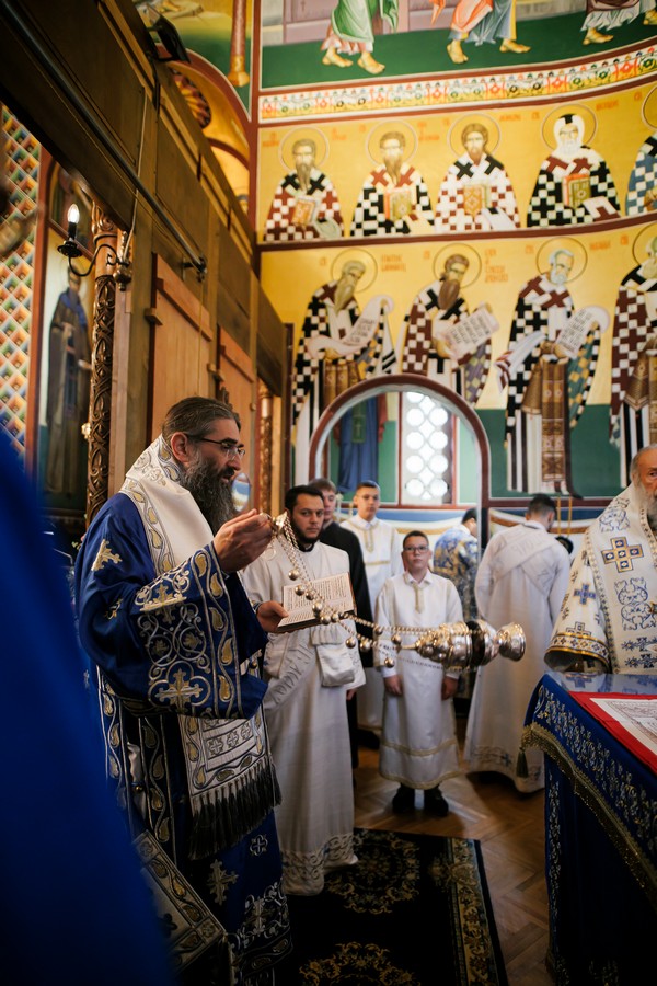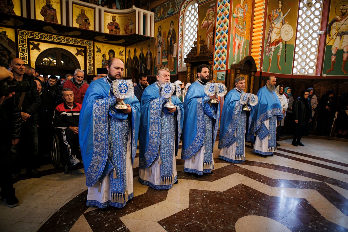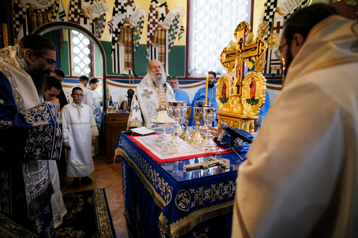 Евхаристијском прославом началствовао је Његово Високопреосвештенство Митрополит нишки г. Арсеније, уз саслужење Његовог Преосвештенства Епископа лондонског и великобританско-ирског г. Нектарија и Његовог Преосвештенства Епископа хвостанског г. Алексеја, викара Његове Светости Патријарха српског г. Порфирија. Својим саслужењем учешћа у Светој Литургији узели су и архимандрит Мардарије Ковачевић, протојереј-ставрофор Бранислав Цинцаревић, протојереј-ставрофор Ненад Поповић, протојереј-ставрофор Ђорђе Милојковић, протојереј Миодраг Павловић, протојереј Милан Ристивојчевић, протођакон Никола Ераковић, ђакон Стефан Пекић и ђакон Филип Миливојевић.