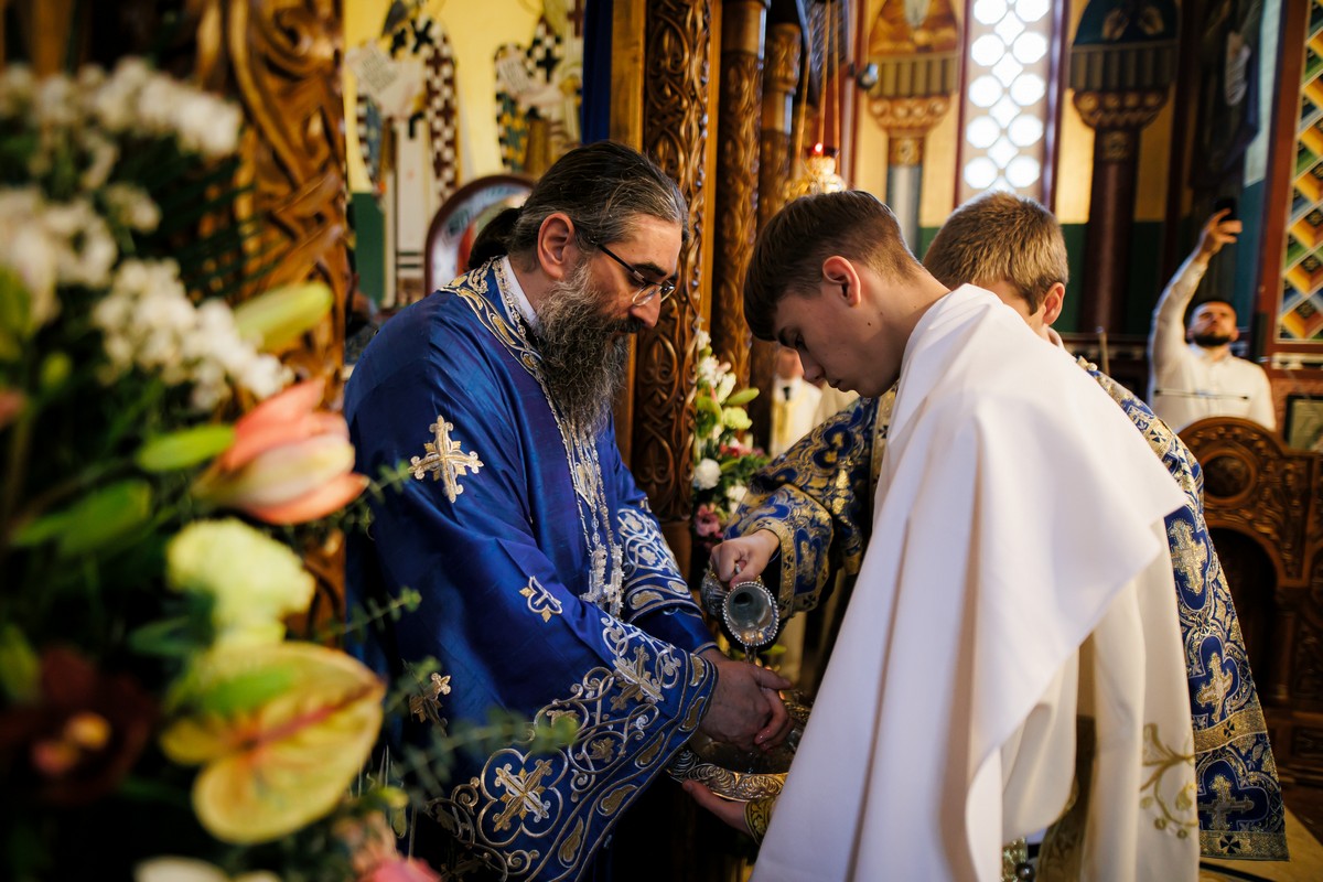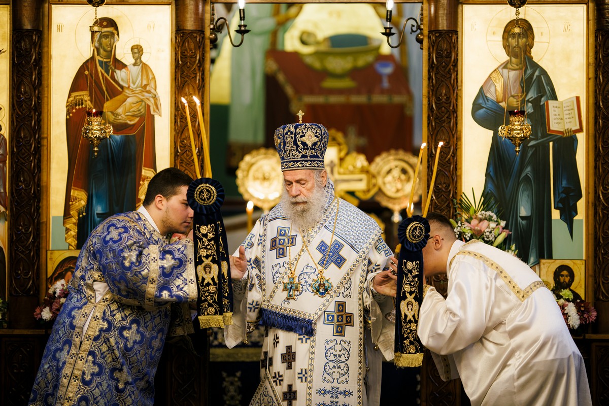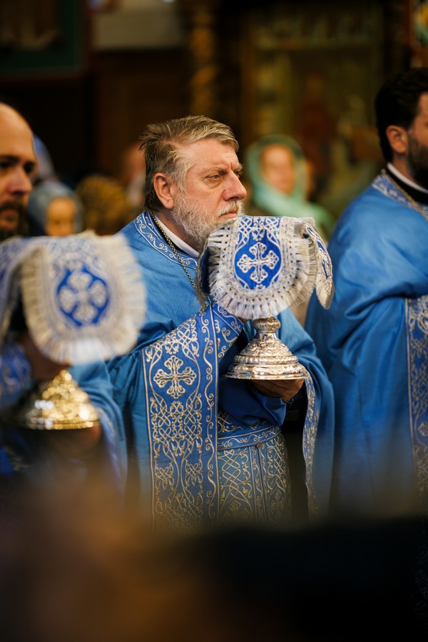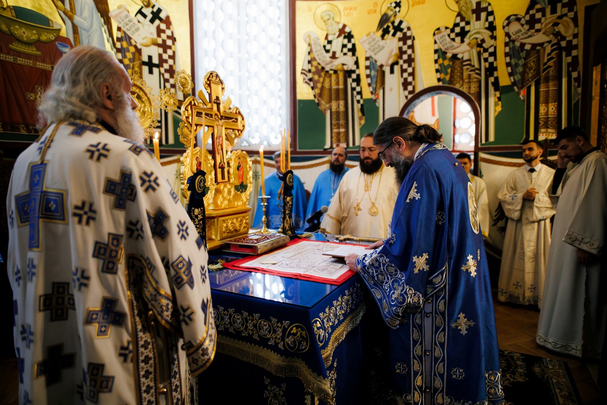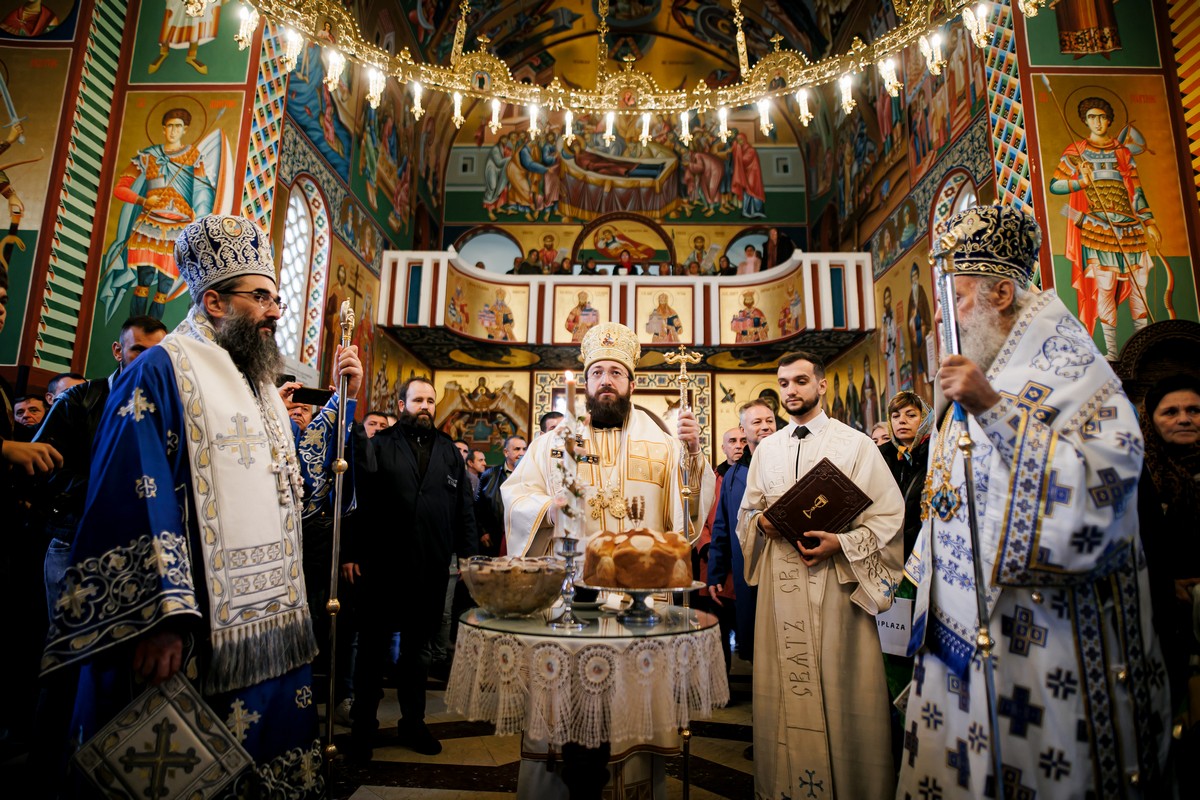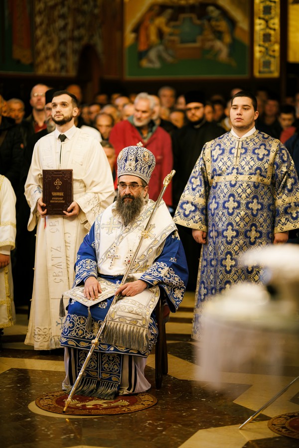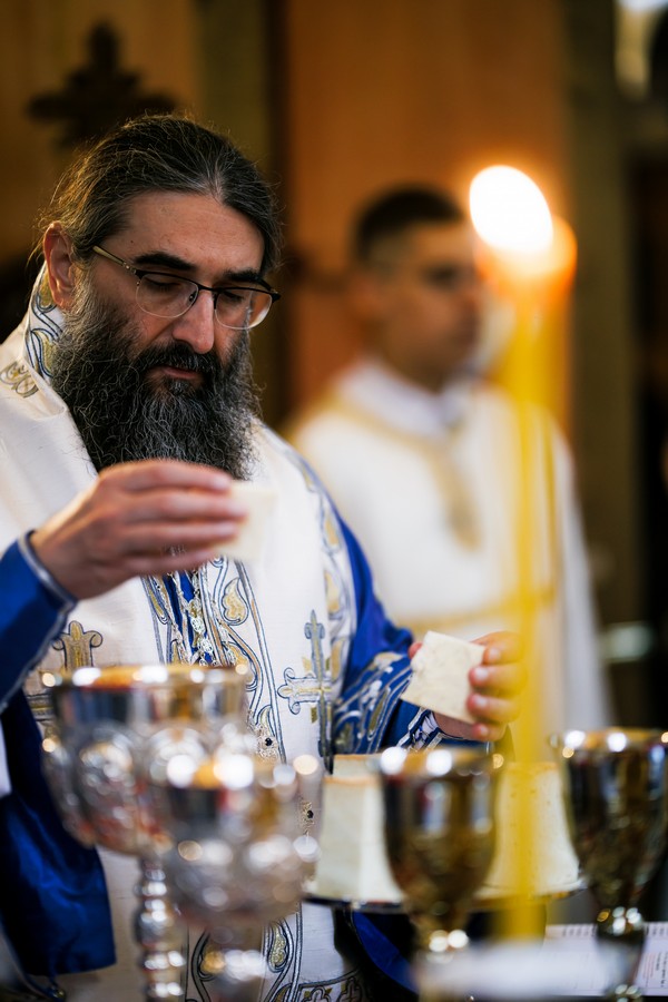 Евхаристијском прославом началствовао је Његово Високопреосвештенство Митрополит нишки г. Арсеније, уз саслужење Његовог Преосвештенства Епископа лондонског и великобританско-ирског г. Нектарија и Његовог Преосвештенства Епископа хвостанског г. Алексеја, викара Његове Светости Патријарха српског г. Порфирија. Својим саслужењем учешћа у Светој Литургији узели су и архимандрит Мардарије Ковачевић, протојереј-ставрофор Бранислав Цинцаревић, протојереј-ставрофор Ненад Поповић, протојереј-ставрофор Ђорђе Милојковић, протојереј Миодраг Павловић, протојереј Милан Ристивојчевић, протођакон Никола Ераковић, ђакон Стефан Пекић и ђакон Филип Миливојевић.