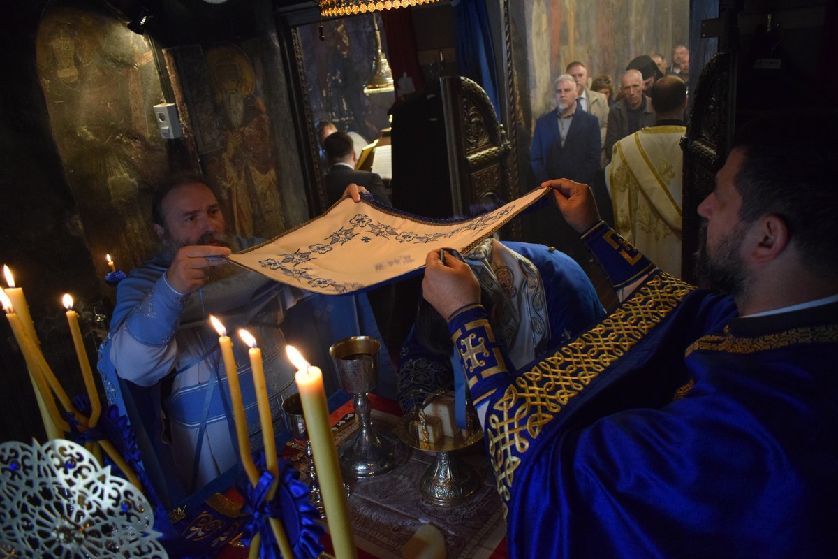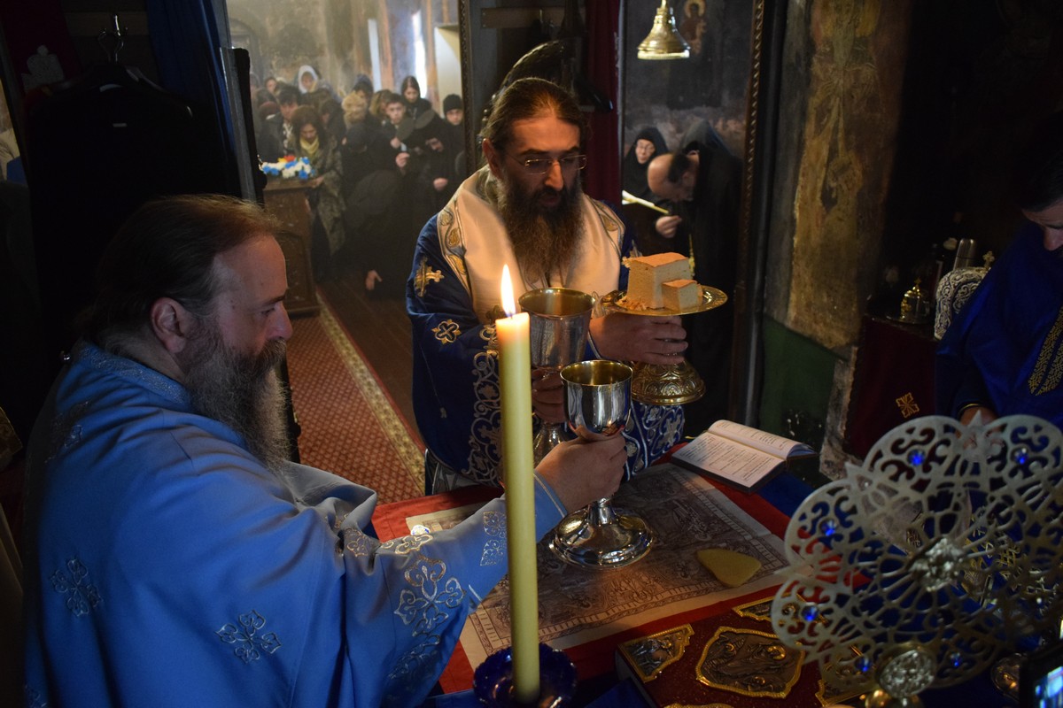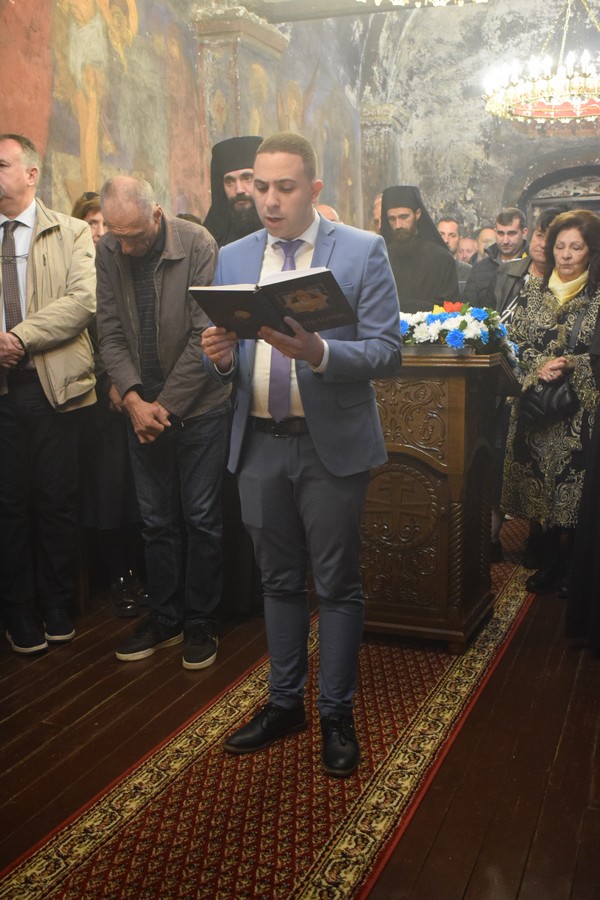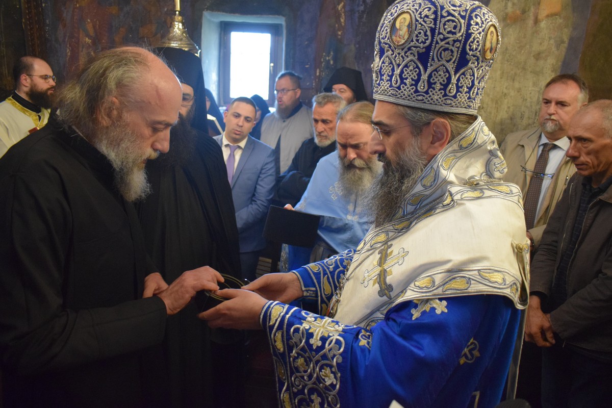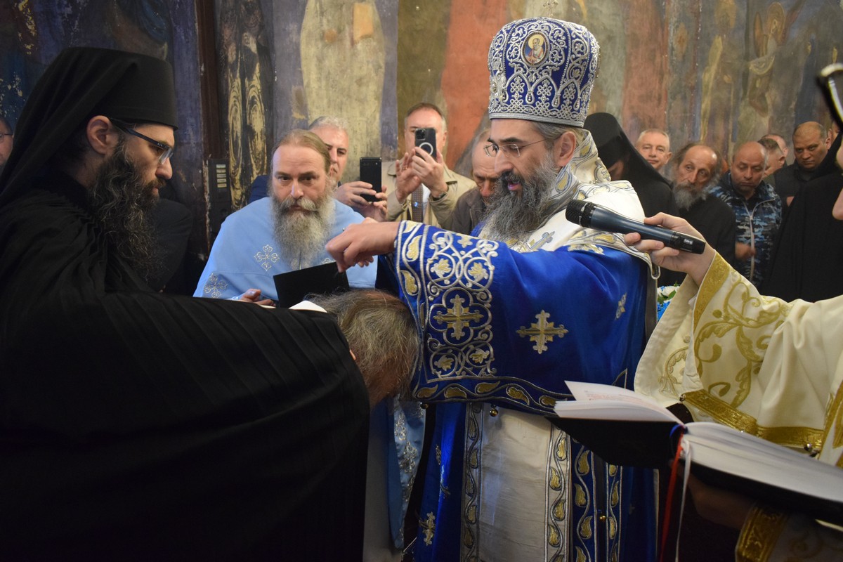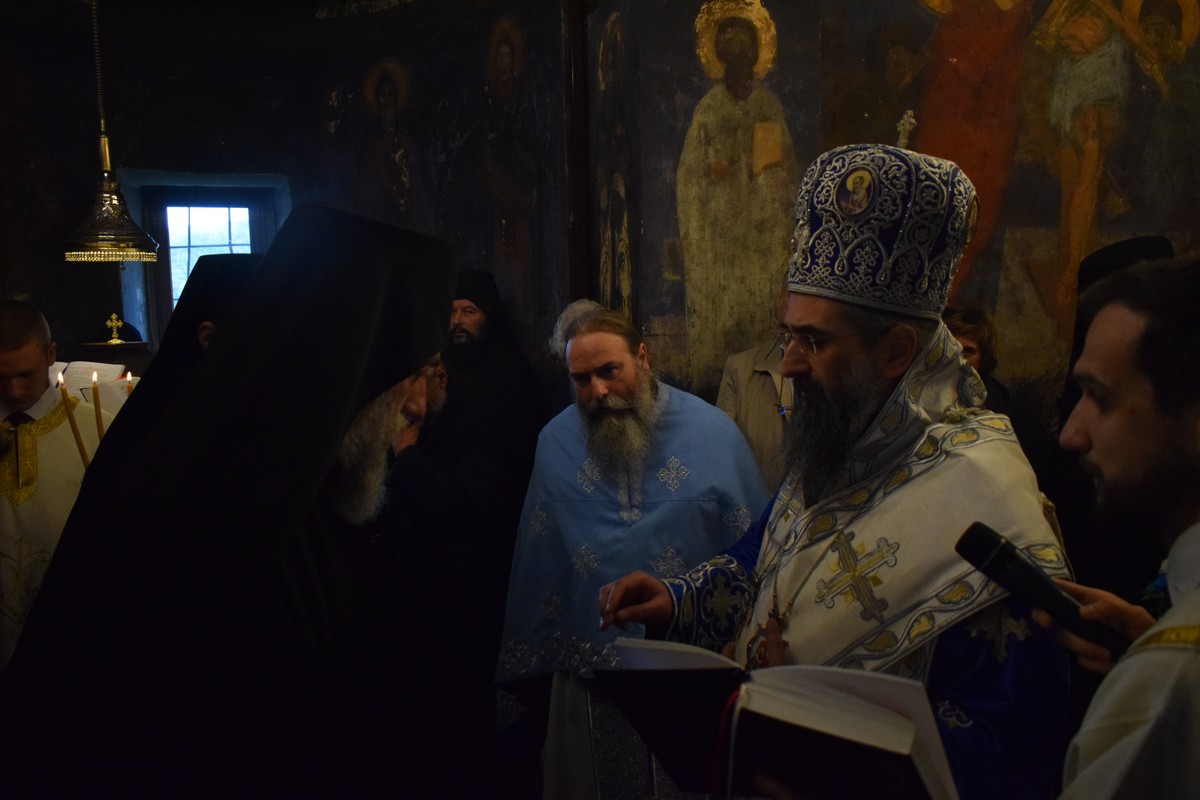 На Малом входу овог литургијског сабрања, које почиње вечерњом службом, Високопреосвећени Владика је, по чину одевања расе и камилавке, у монашки чин увео искушеника ове свете обитељи Радомира, који је, благословом Његовог Високопреосвештенства, понео име Агатон.
