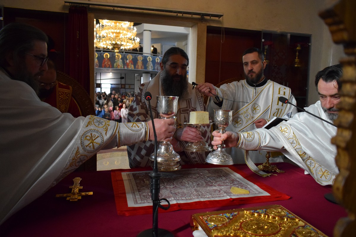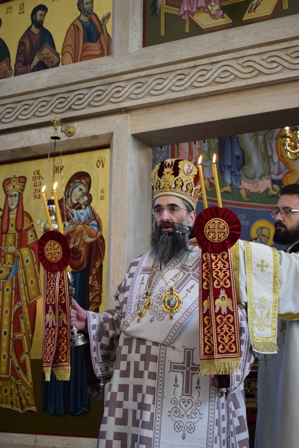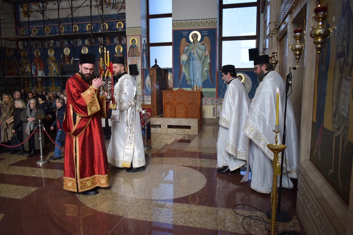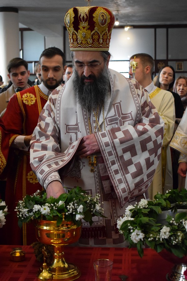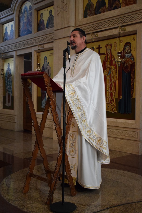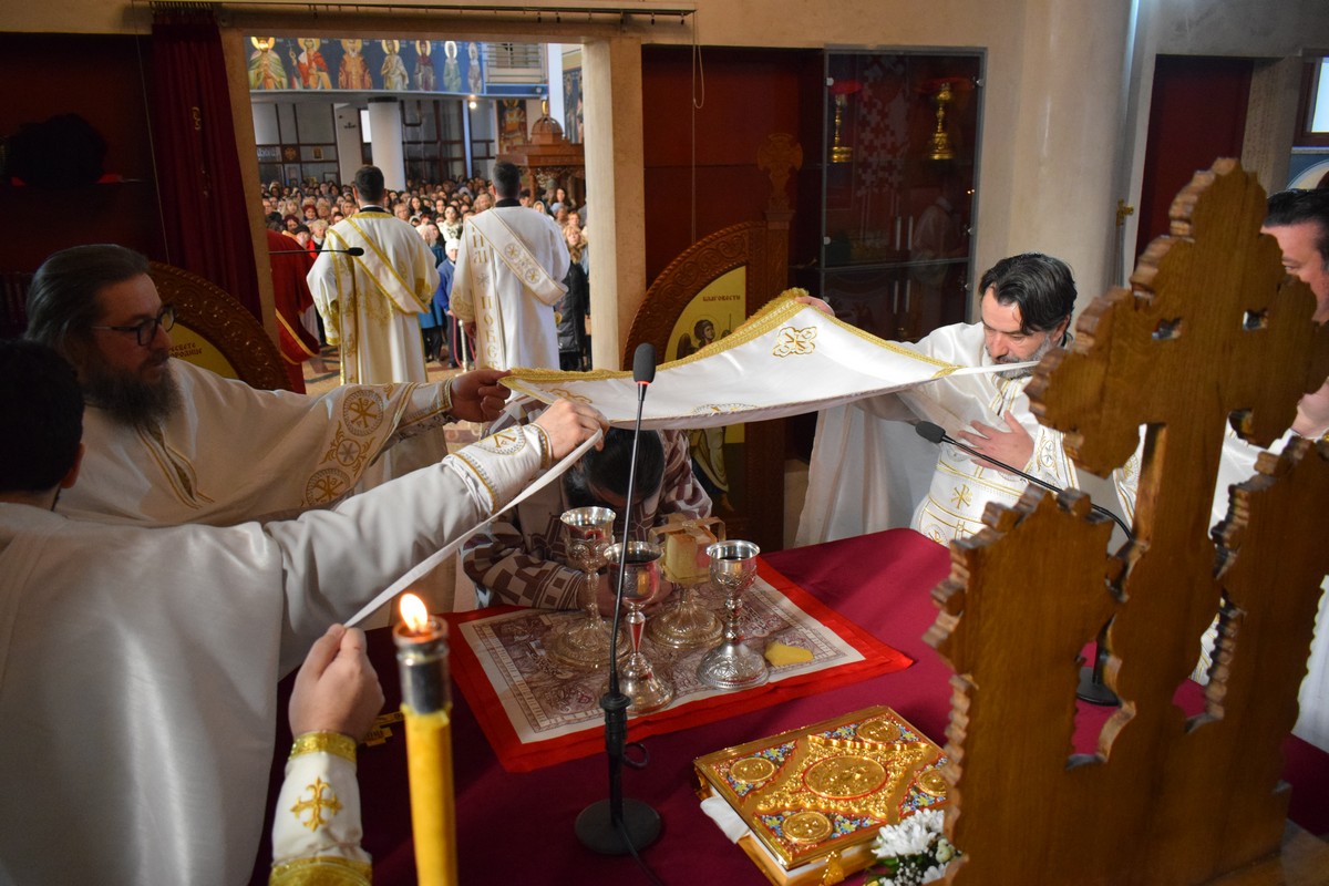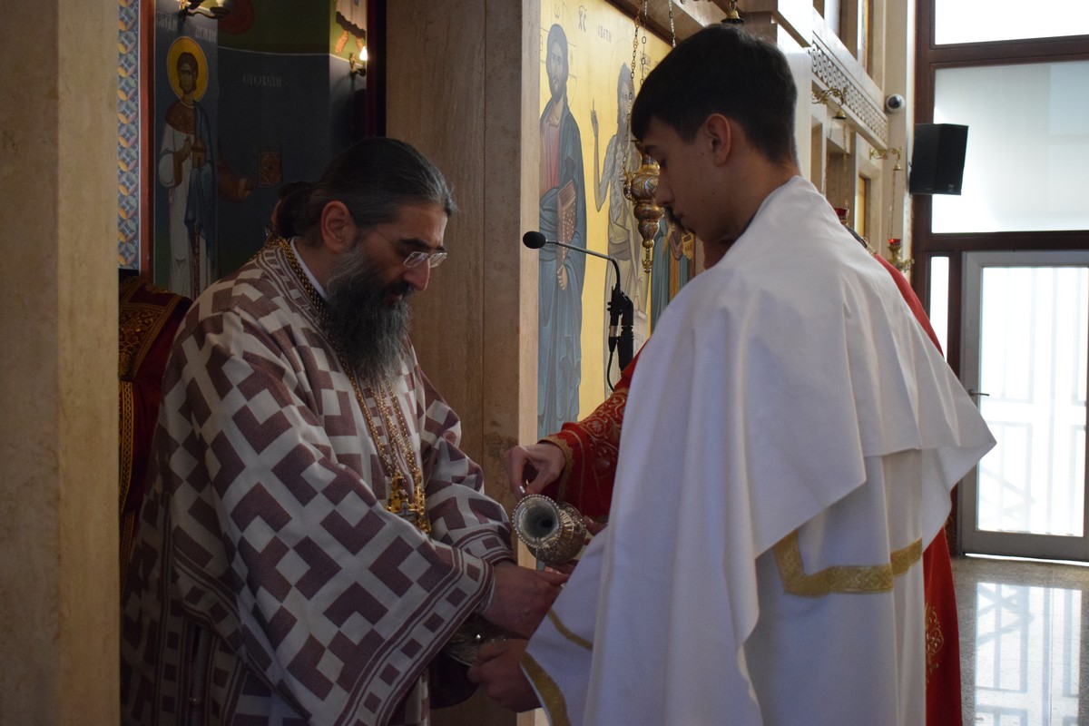 Након читања из Светог Јеванђеља, празничном омилијом је верни народ, по благослову Његовог Високопреосвештенства, поучио јереј Бобан Димитријевић.