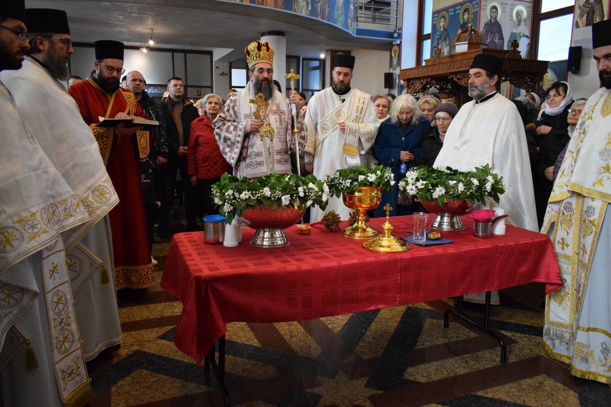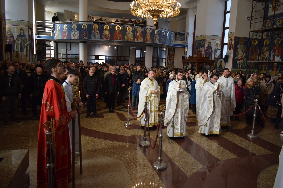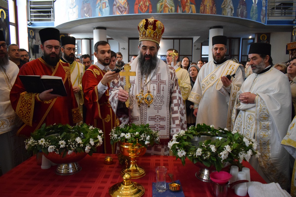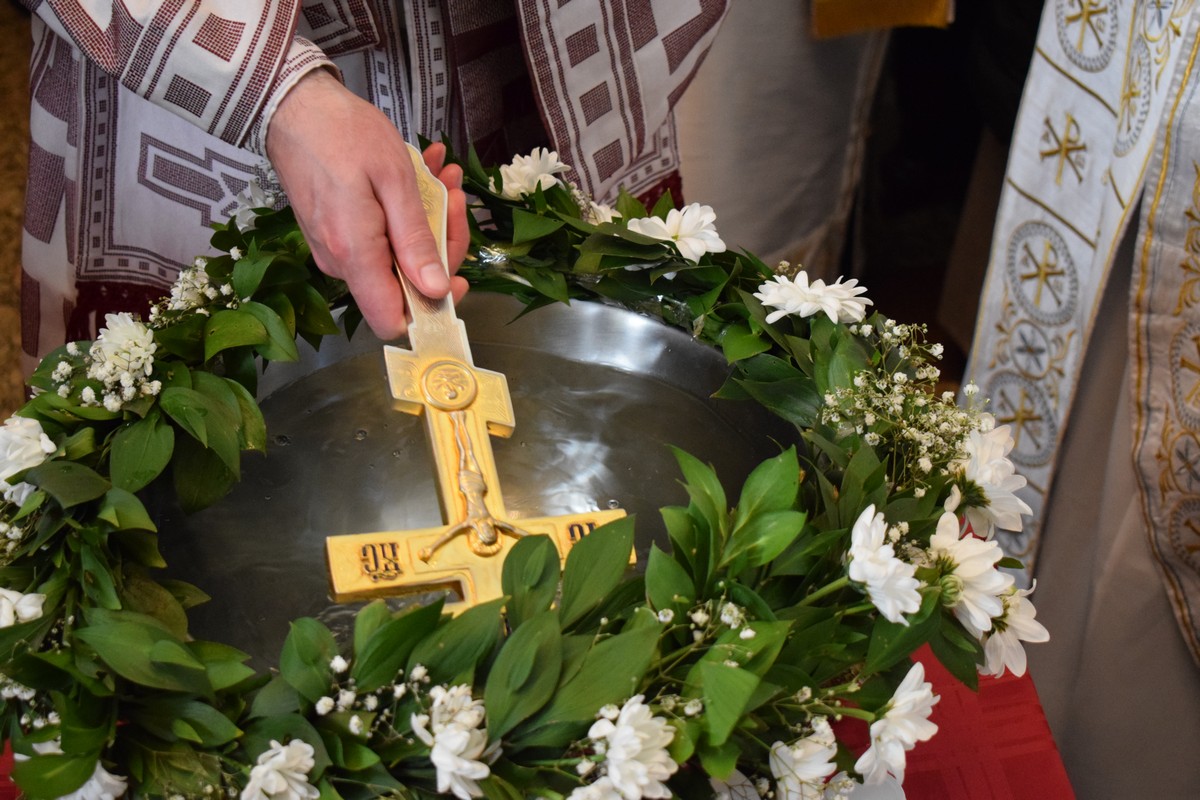 Литургији Светог Јована Златоустог следило је служење празничног вечерњег богослужења, на крају чега је у лађи храма извршен чин Великог освећења воде.