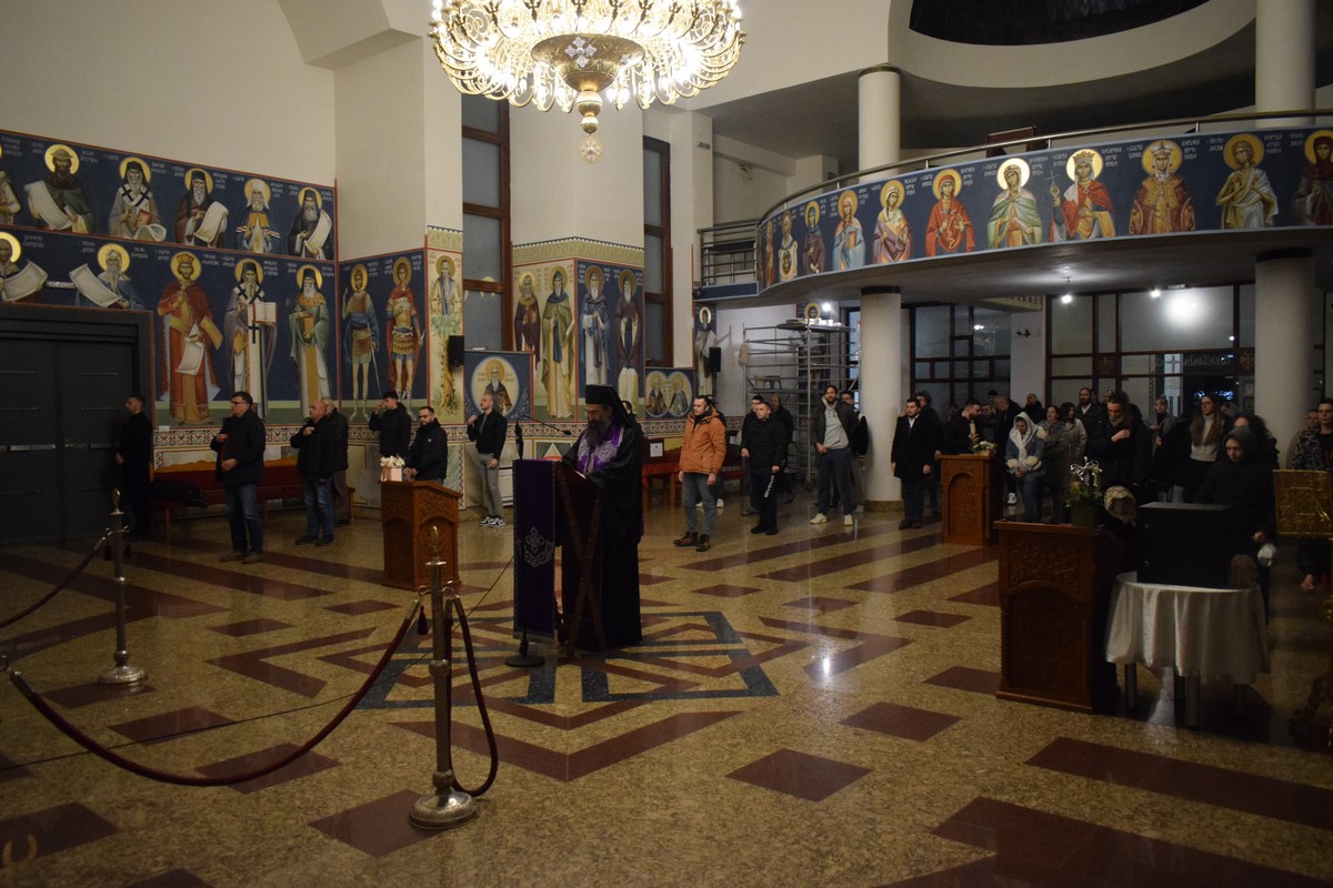 Чин Великог повечерја служио је јереј Далибор Мидић, парох четврти при овом светом храму, а покајни канон Светог Андреја Критског, који се чита током Великог поста у склопу овог богослужења, читао је Високопреосвећени Митрополит.