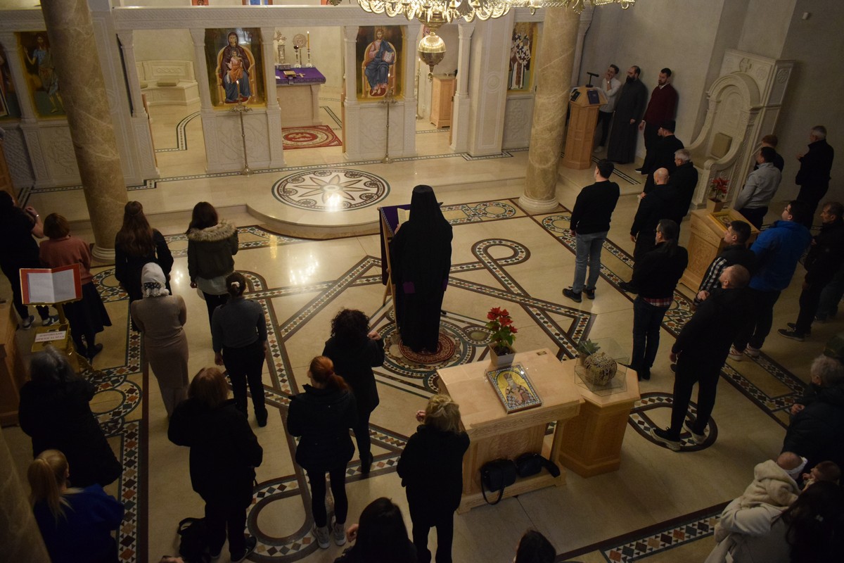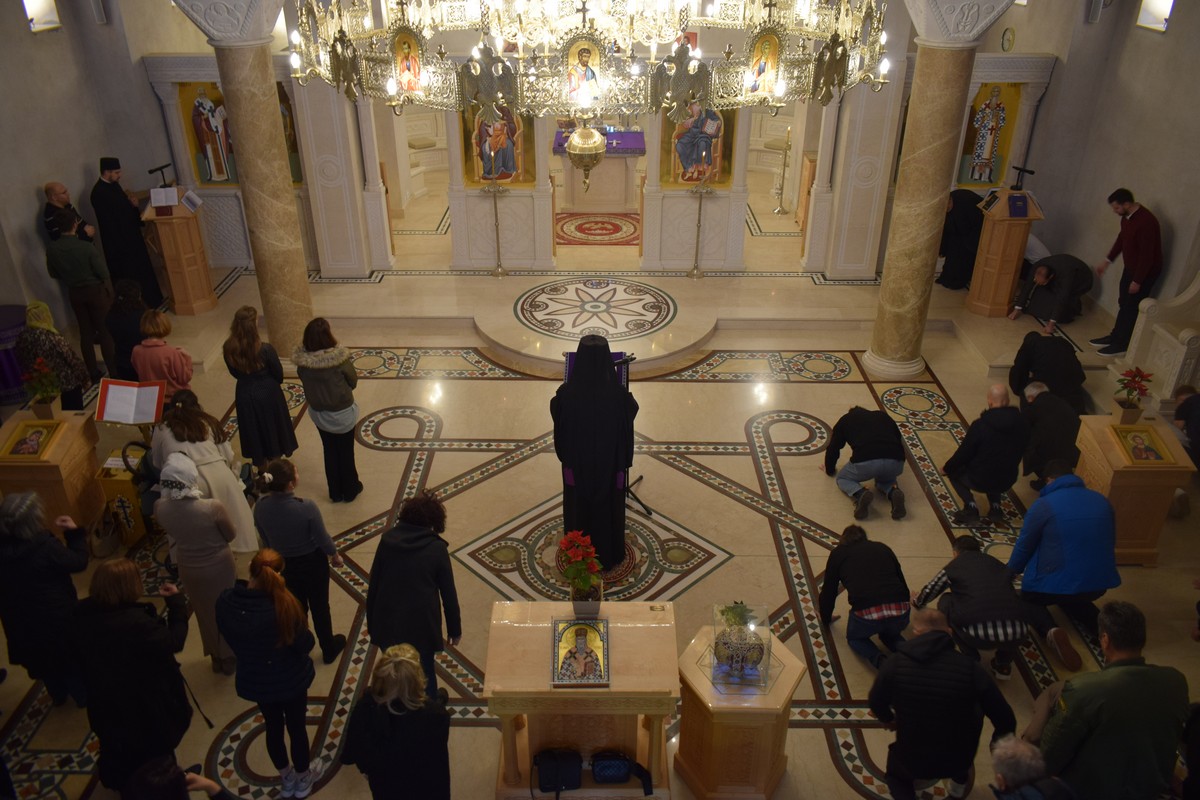 Чин Великог повечерја служио је протојереј Владан Стојановић, парох трећи при овој светињи, а покајни канон Светог Андреја Критског, који се чита током Великог поста у склопу овог богослужења, читао је Високопреосвећени Митрополит.