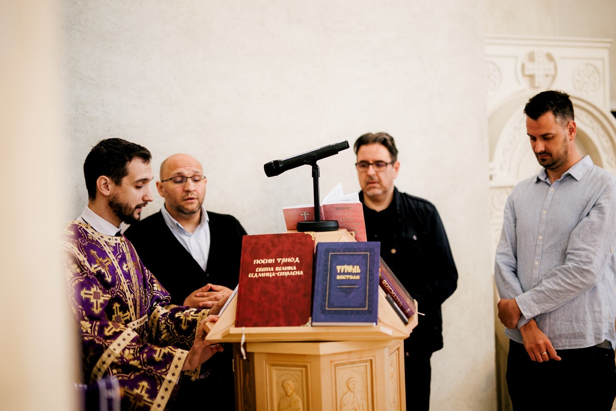 Високопреосвећеном Митрополиту саслуживали су протојереј Предраг Радосављевић, старешина храма, протојереј Владан Стојановић, парох трећи, јереј Драган Стефановић, парох други, јеромонах Пантелејмон Мијаиловић, протођакон Никола Ераковић и ђакон Ранђел Стошић.