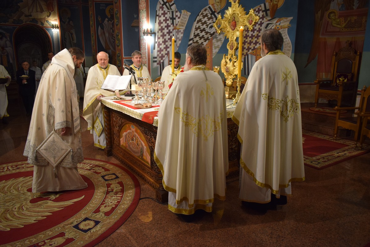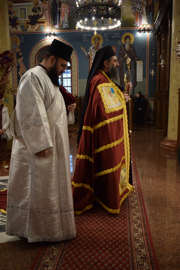 Високопреосвећеном Митрополиту саслуживали су протојереј-ставрофор Бранислав Цинцаревић, старешина храма, протојереј-ставрофор Влајко Грабеж, свештеник у пензији, протојереј-ставрофор Ненад Микић, парох први при Саборном храму, протојереј Миодраг Павловић, Архијерејски намесник први нишки, протојереј Владица Савић, парох пети, јереј Владе Капларевић, службеник ЕУО Епархије нишке и протођакон Ђорђе Филиповић.