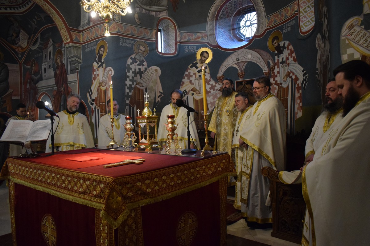 Високопреосвећеном Митрополиту саслуживали су протојереј-ставрофор Бранислав Цинцаревић, старешина Саборног храма, протојереј-ставрофор Ненад Микић, парох први при овој светињи, протојереј Дејан Крстић, ректор нишке Богословије Светих Кирила и Методија, протојереј Миодраг Павловић, Архијерејски намесник први нишки, јереј Теодор Кустијанис из Неи Порија, клирик Митрополије китруске, катеринске и платамонске, протојереј Борислав Стаменковић, парох трећи, јеромонах Пантелејмон Мијаиловић, протођакон Ђорђе Филиповић и протођакон Стеван Кричка.