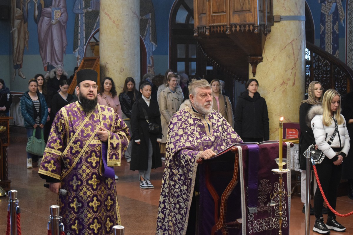 На Велики петак, 10. априла 2026. године, у нишком Саборном храму Силаска Светога Духа на Апостоле служени су Царски часови.