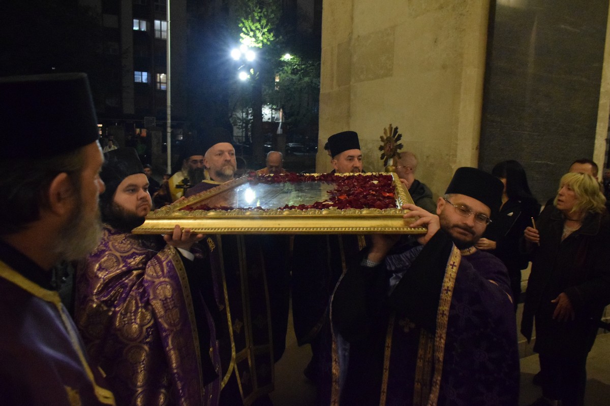 После појања Великог славословља, свечани литијски ход извршен је неким од главних градских улица, окончавши се пред Гробом Господњим у средини храма. Богослужбено сабрање је потом завршено након читања пригодних зачала из Старог и Новог Завета.