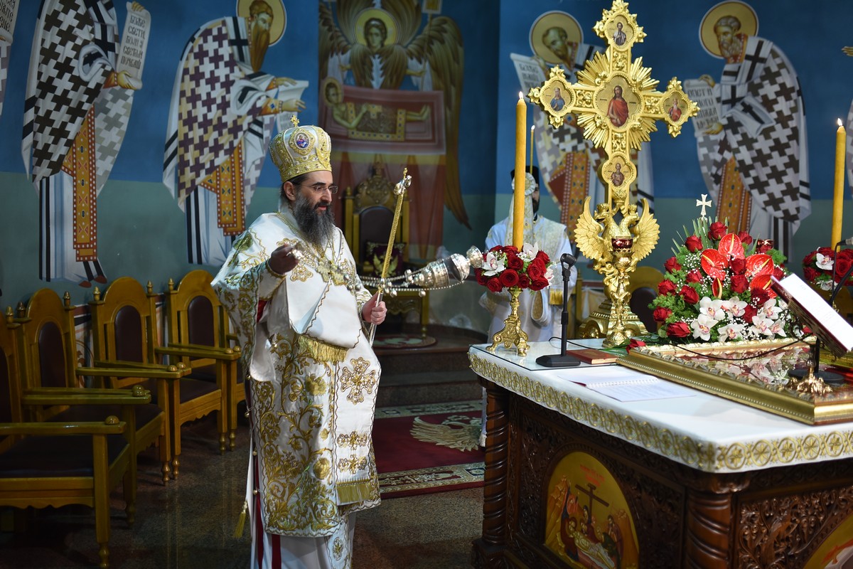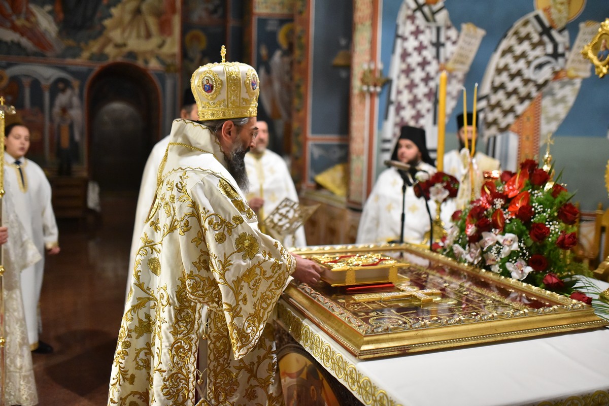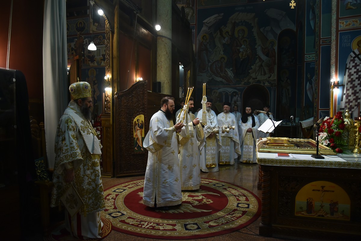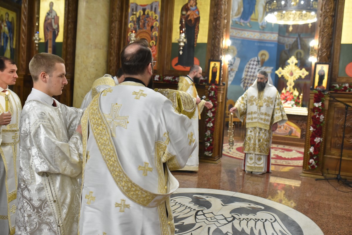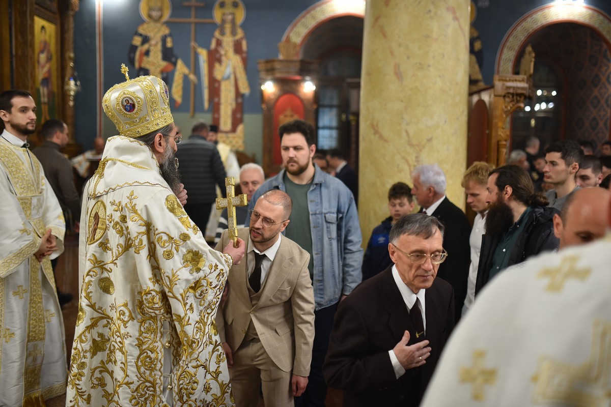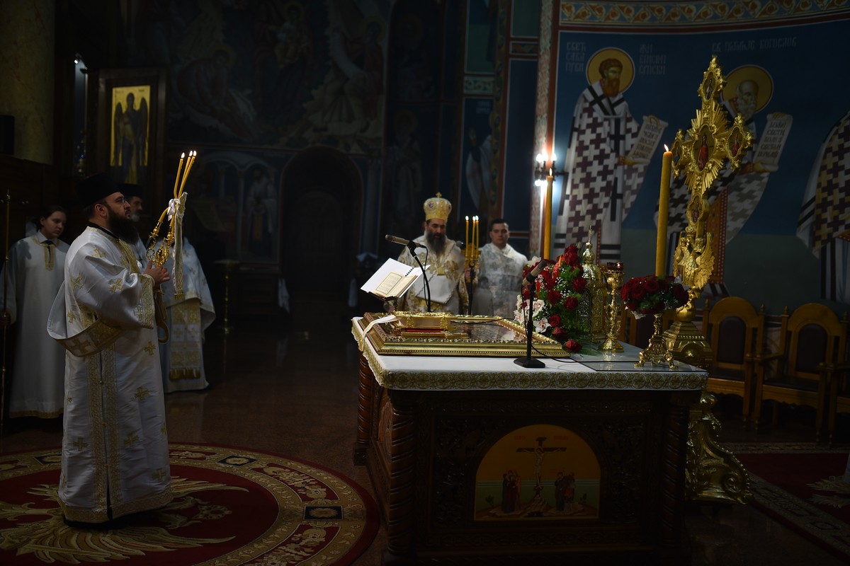 По уласку у храм настављена је јутарња служба, са посебно наглашеним празничним каноном, који својом дубином и радосном поруком све верне уводи у посебно духовно расположење.