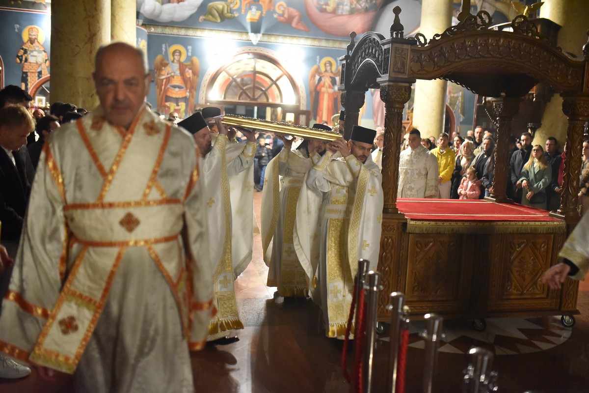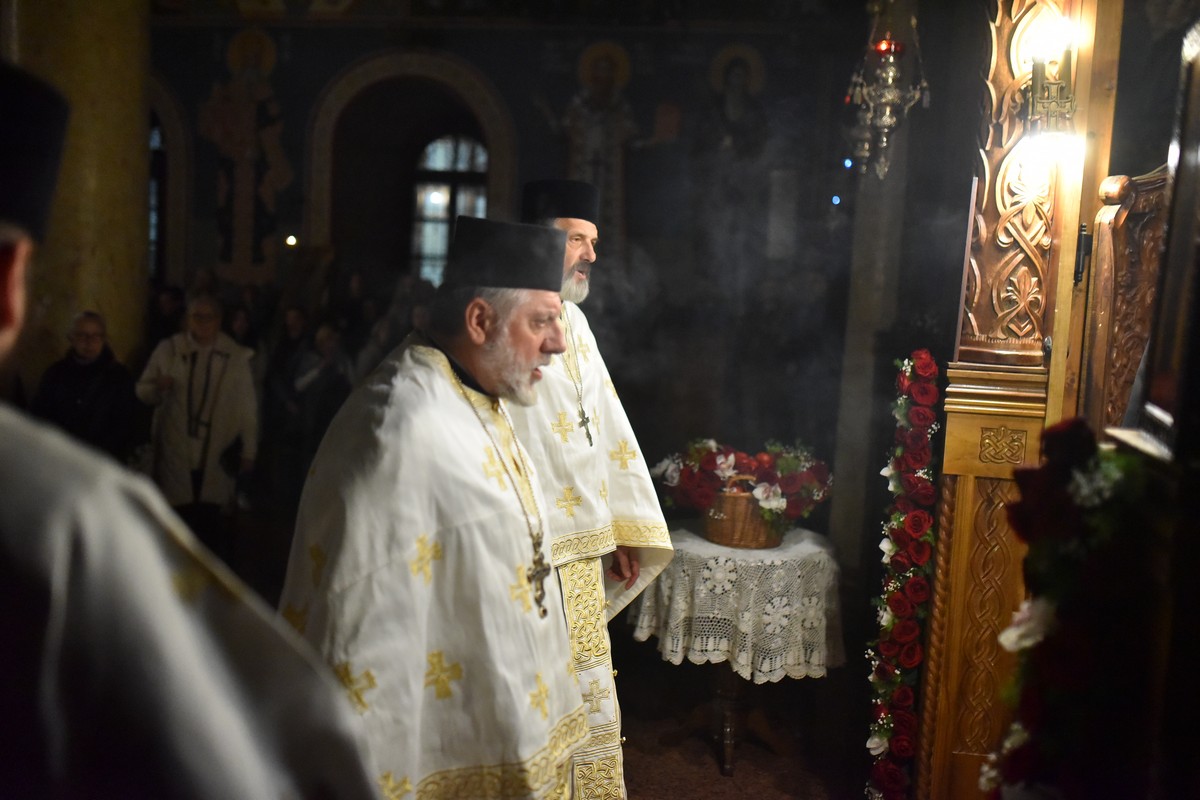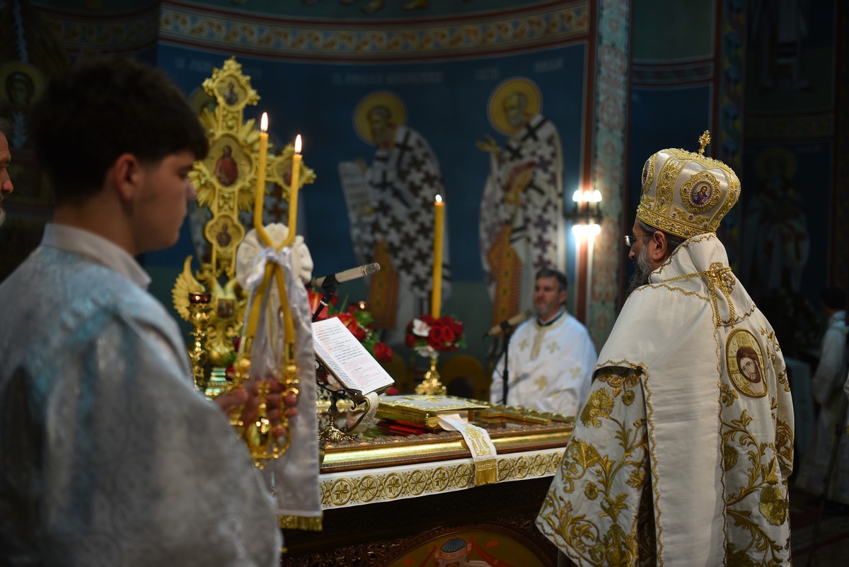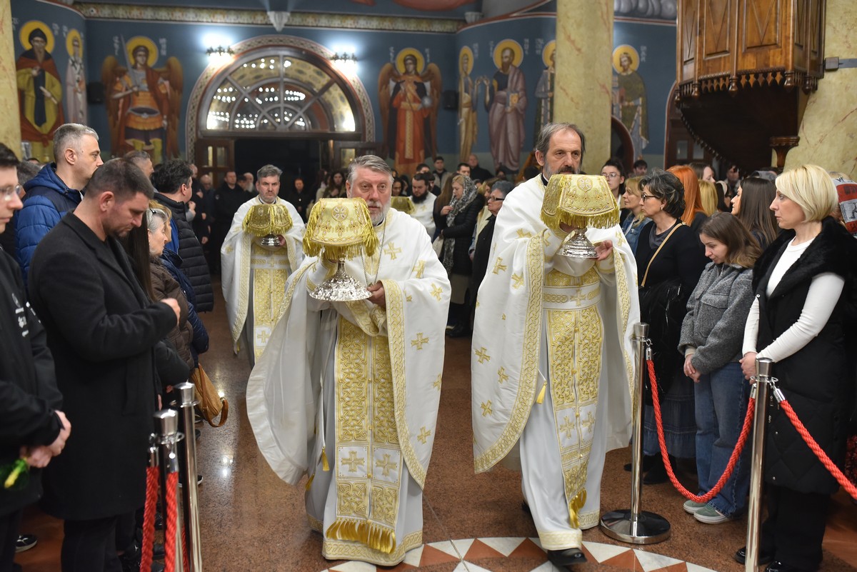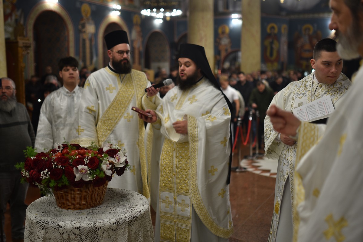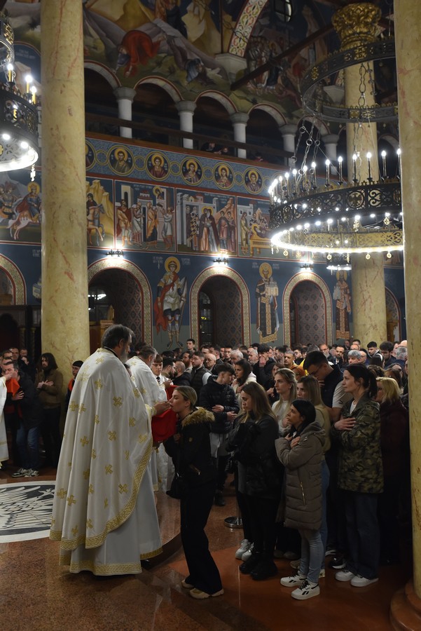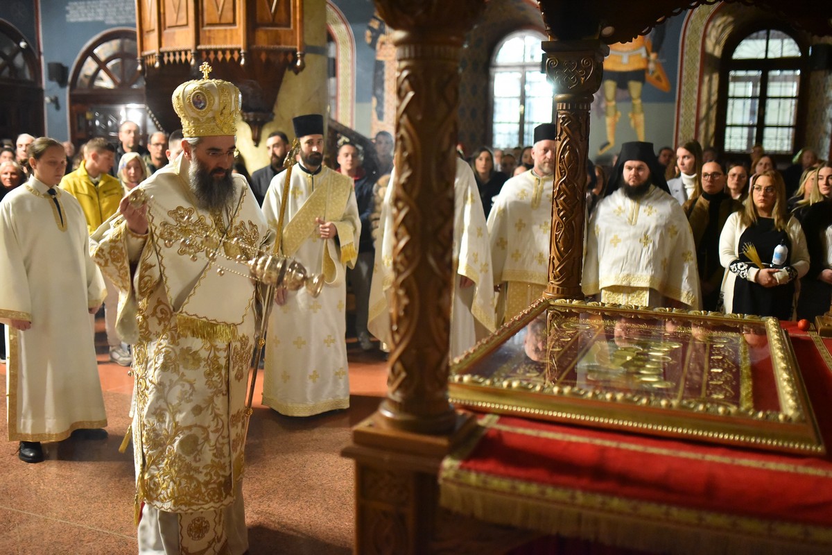 По уласку у храм настављена је јутарња служба, са посебно наглашеним празничним каноном, који својом дубином и радосном поруком све верне уводи у посебно духовно расположење.