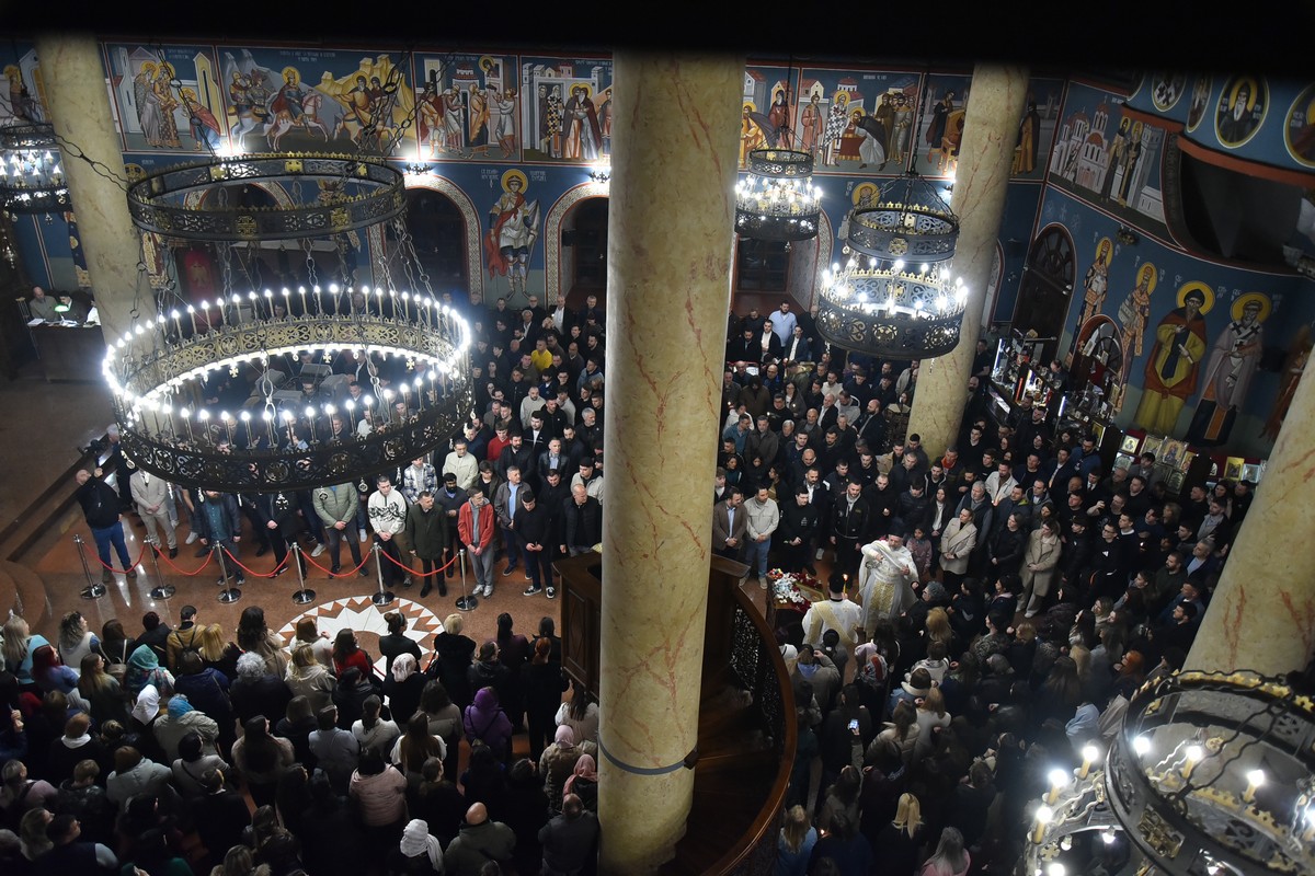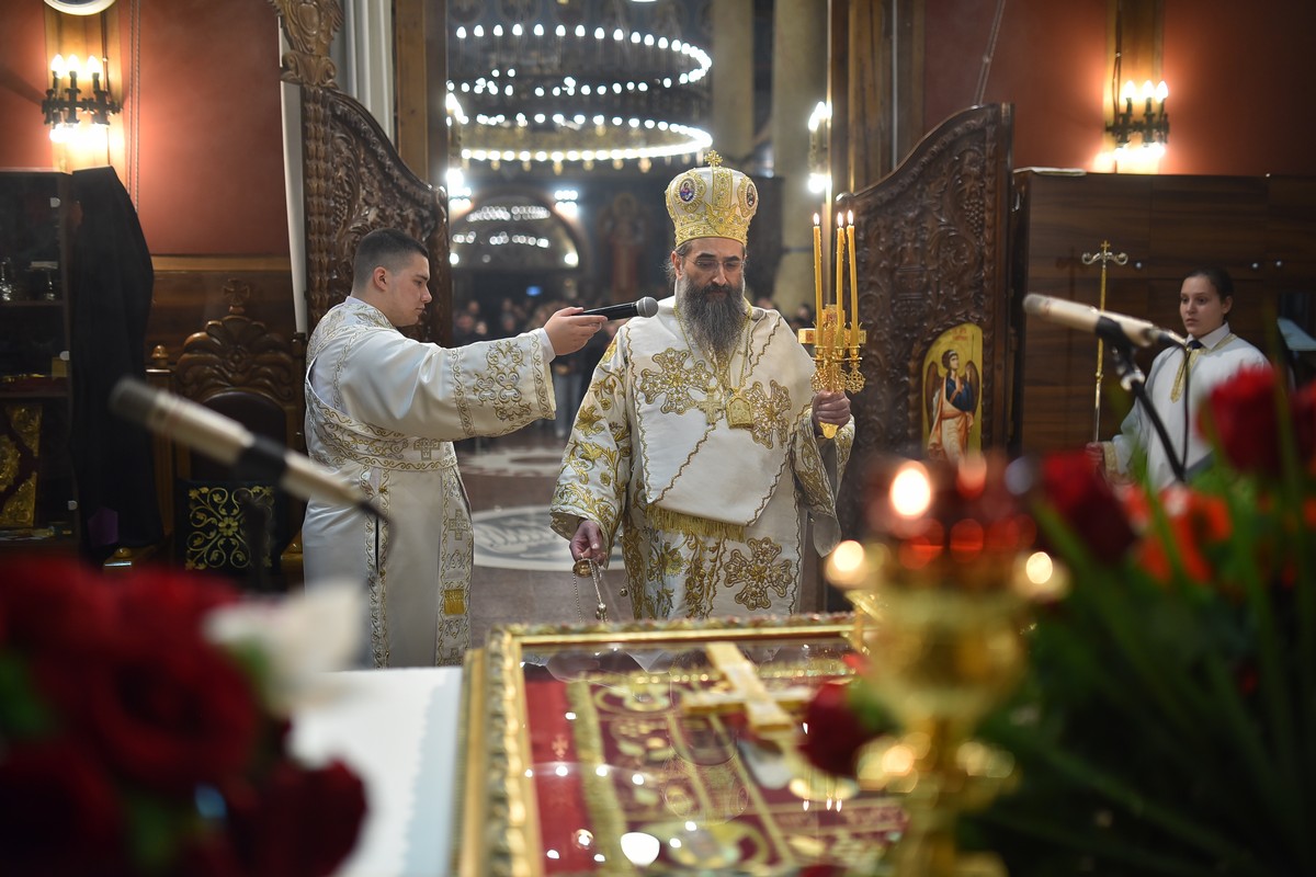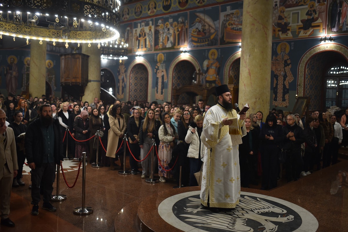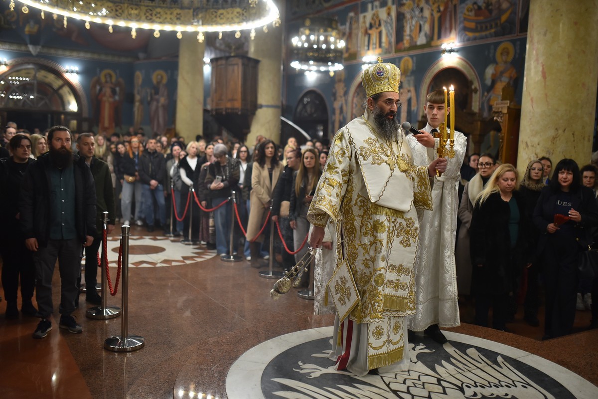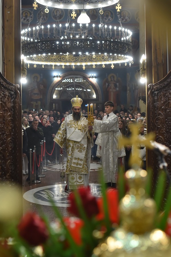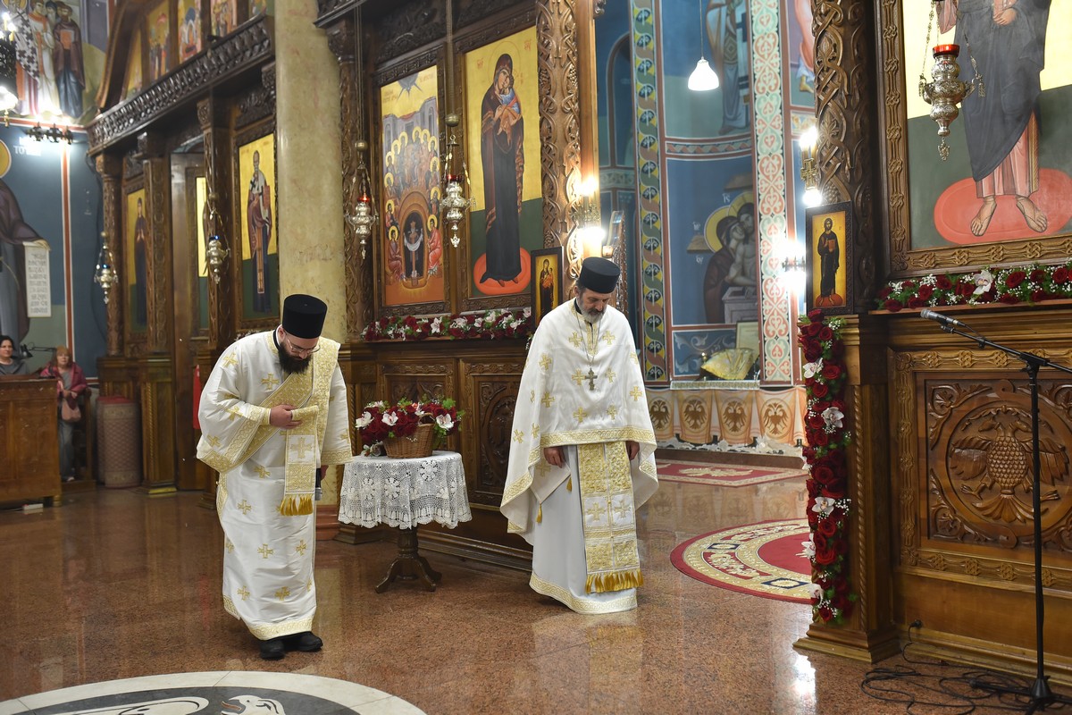 По уласку у храм настављена је јутарња служба, са посебно наглашеним празничним каноном, који својом дубином и радосном поруком све верне уводи у посебно духовно расположење.