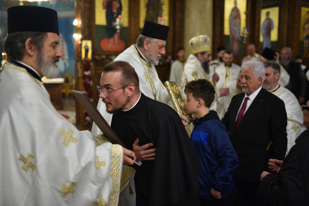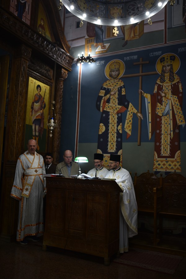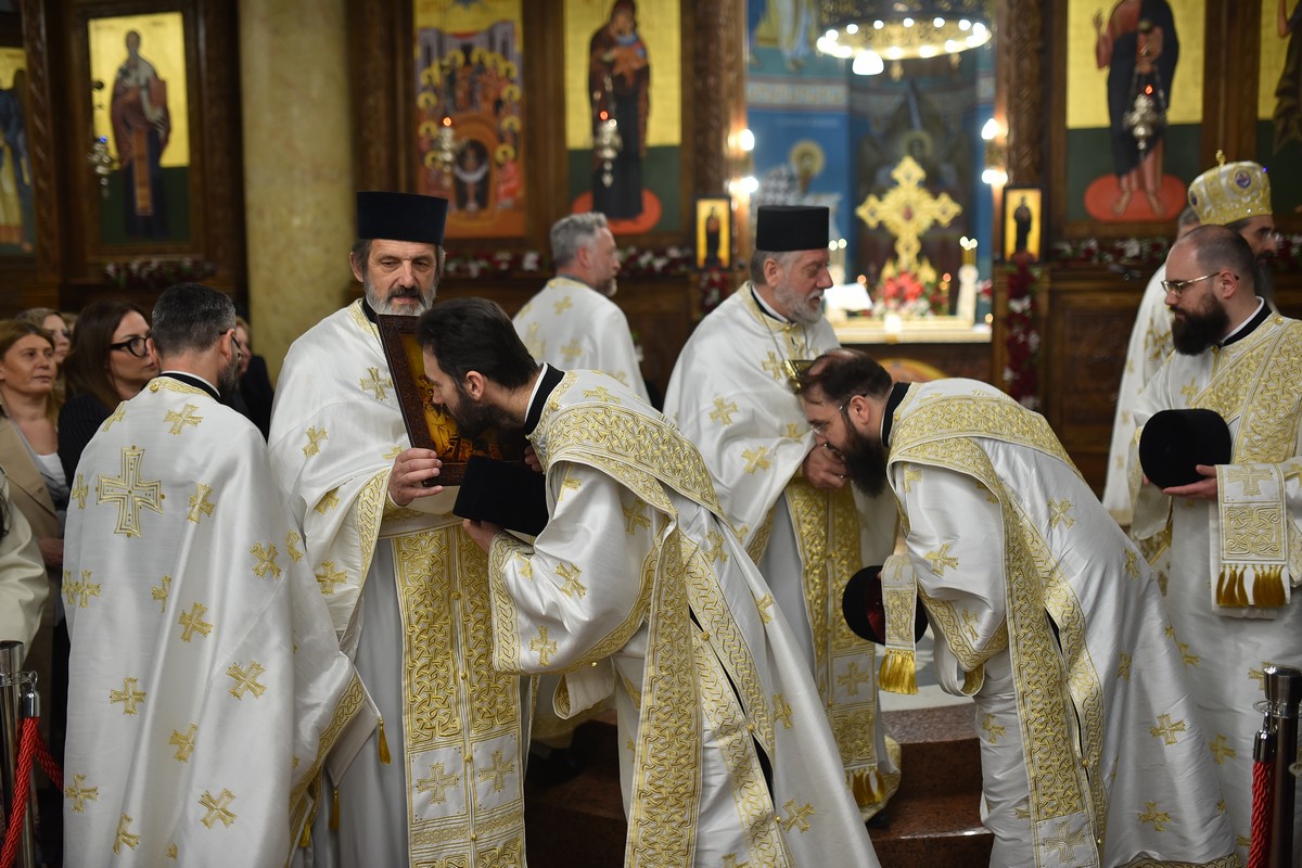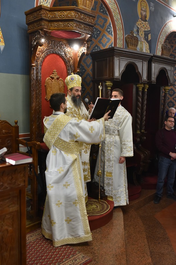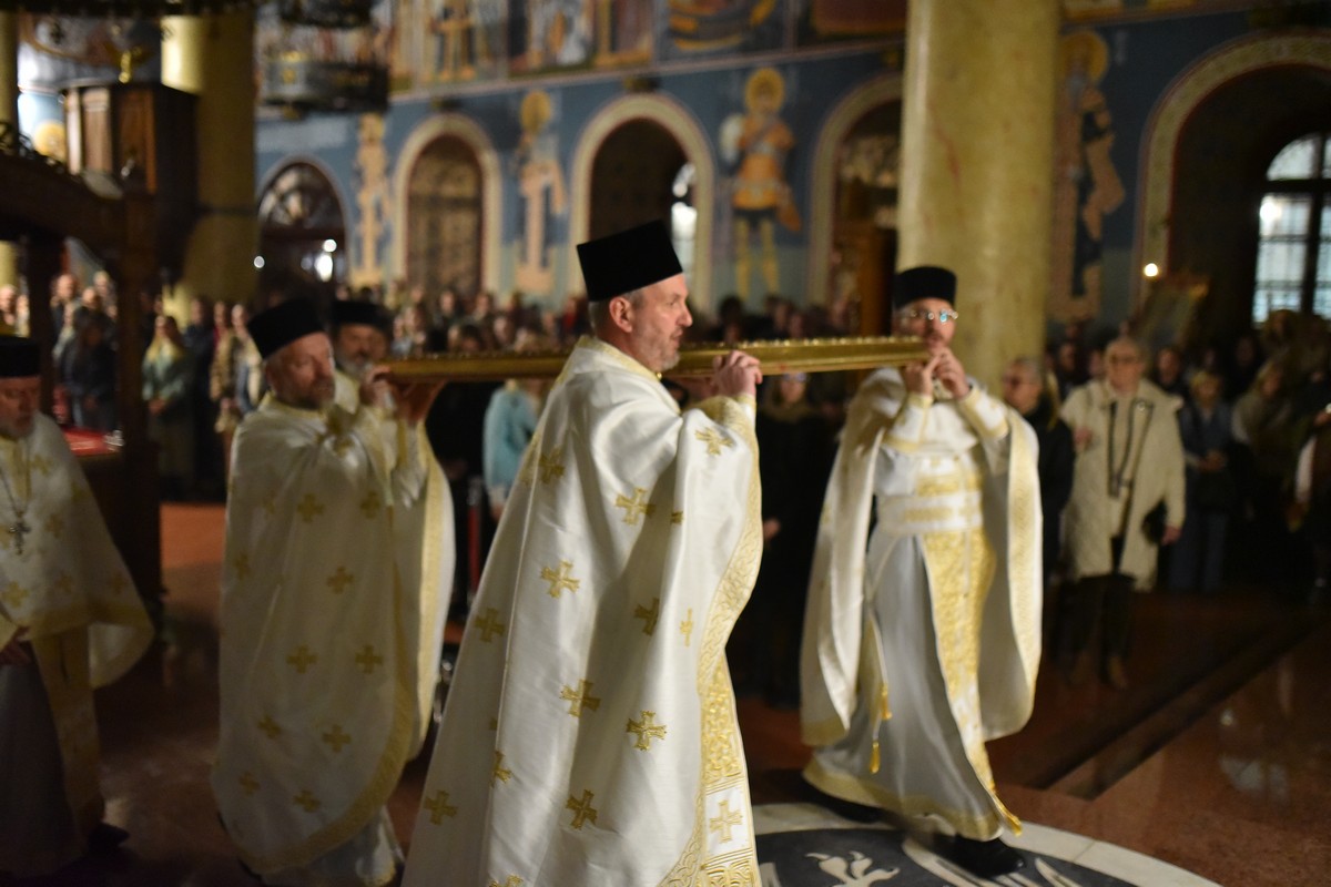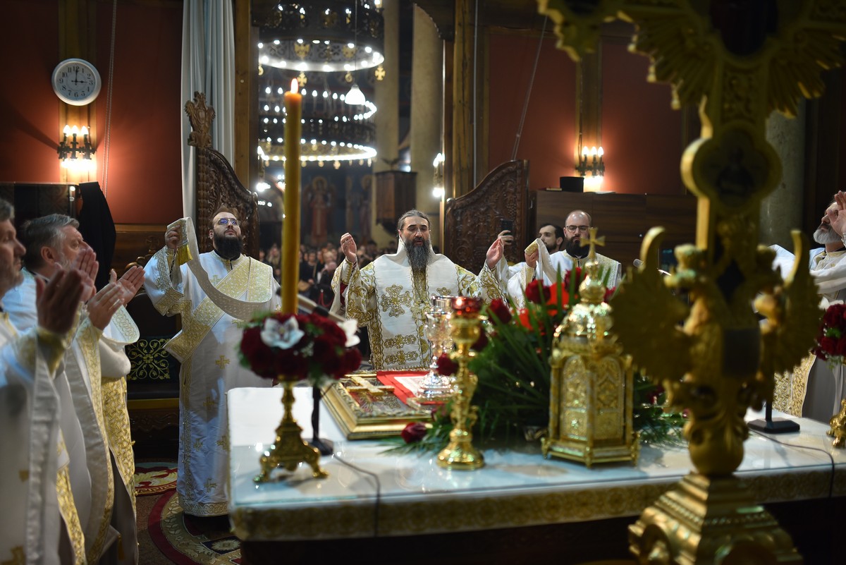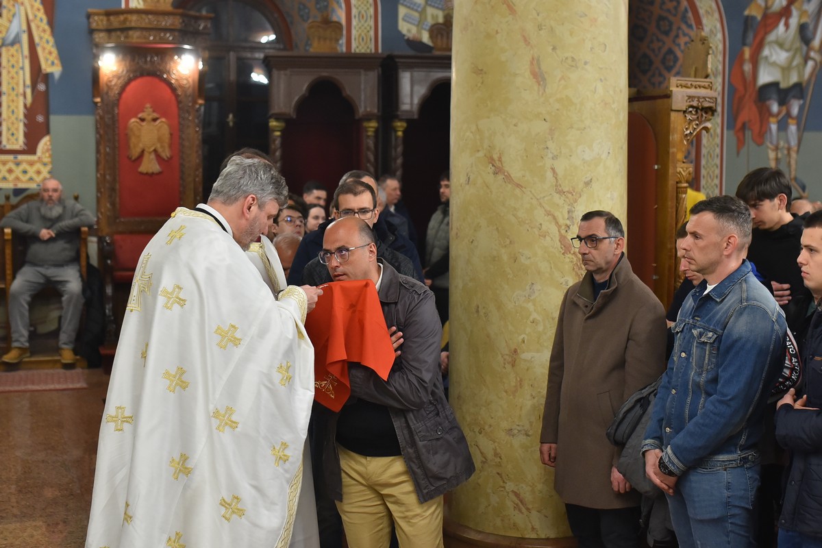 По уласку у храм настављена је јутарња служба, са посебно наглашеним празничним каноном, који својом дубином и радосном поруком све верне уводи у посебно духовно расположење.
