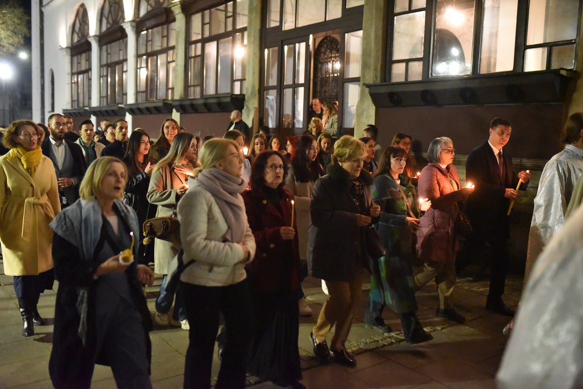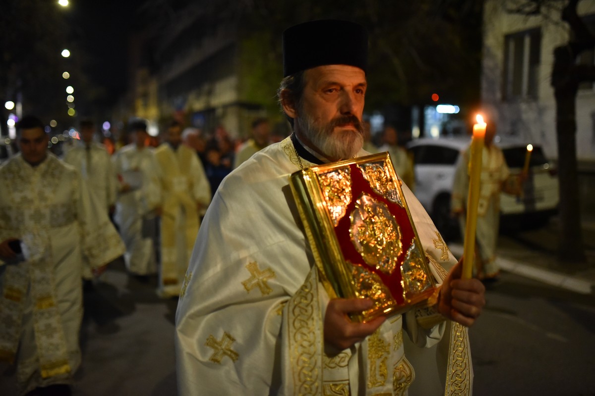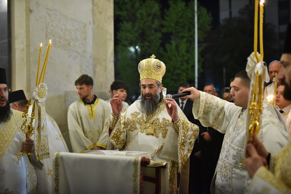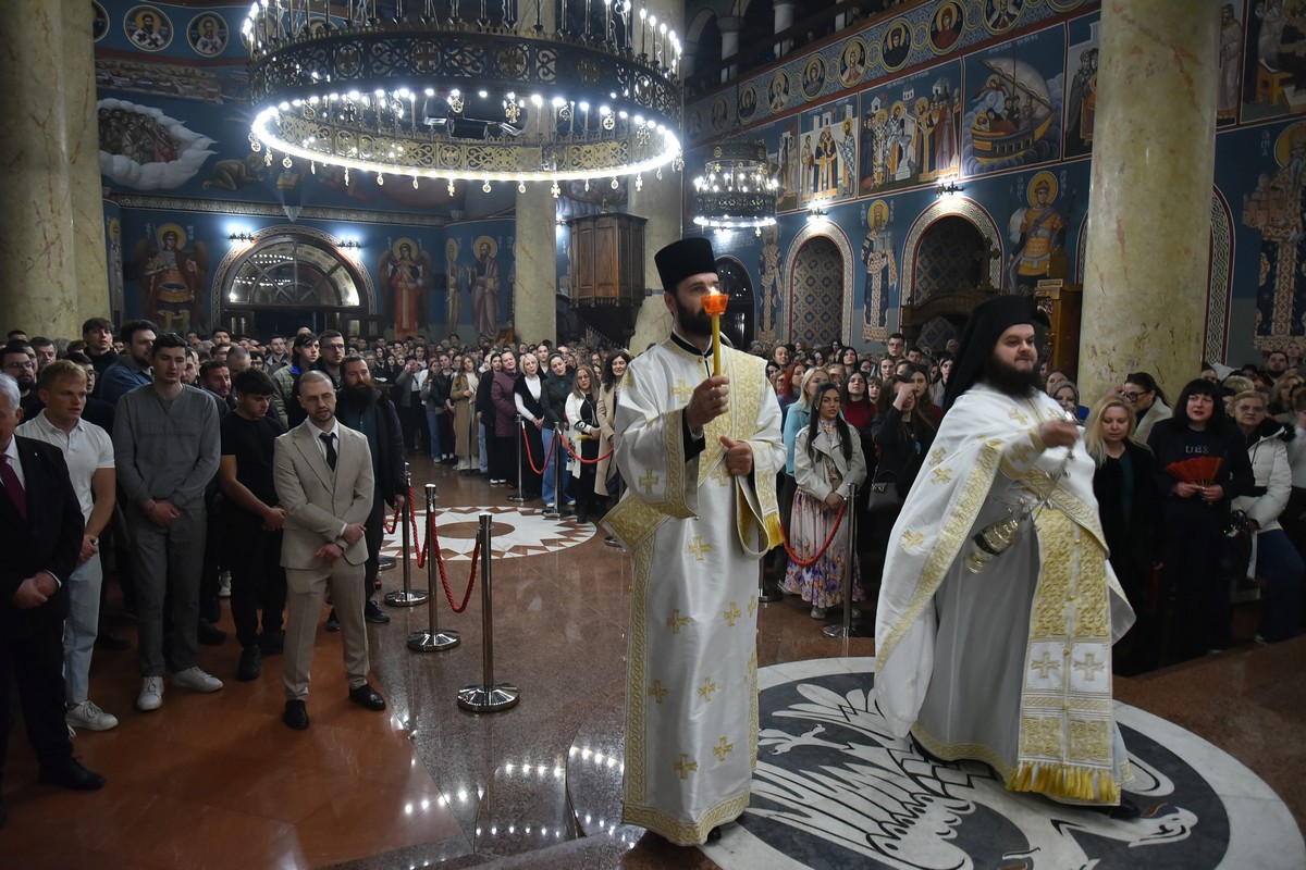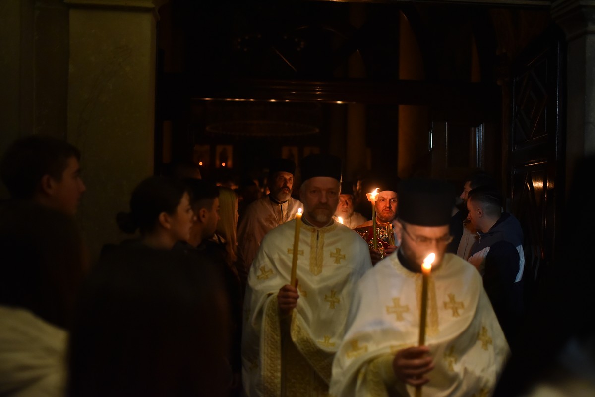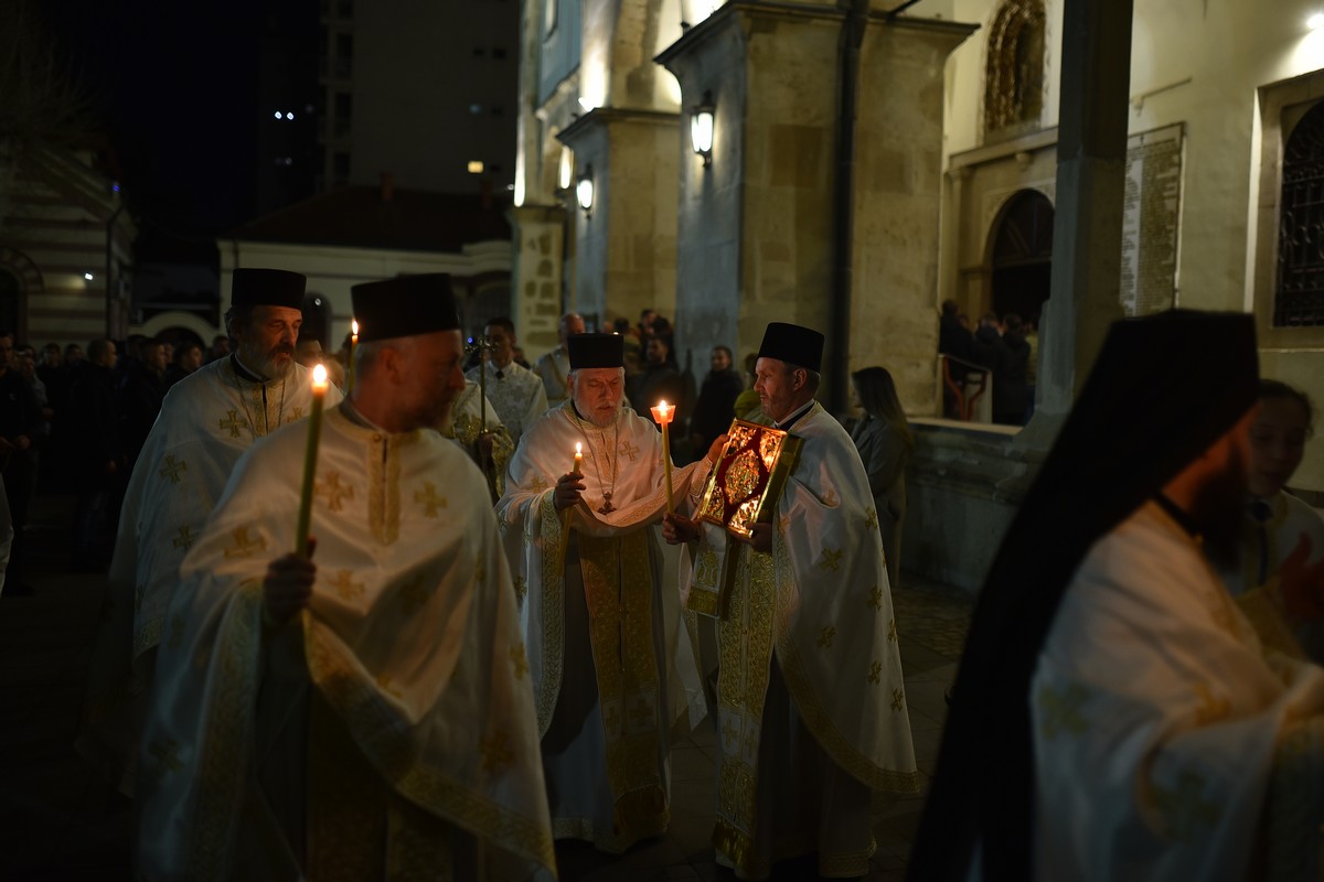 Празнично последовање започето је свечаним изношењем Плаштанице из Гроба Господњег и њеним уношењем у олтар, где ће на Часној Трпези стајати током ових дана радости и торжества. Уследила је величанствена литија, која је, прошавши оближњим градским улицама, окончана повратком у храмовну порту.