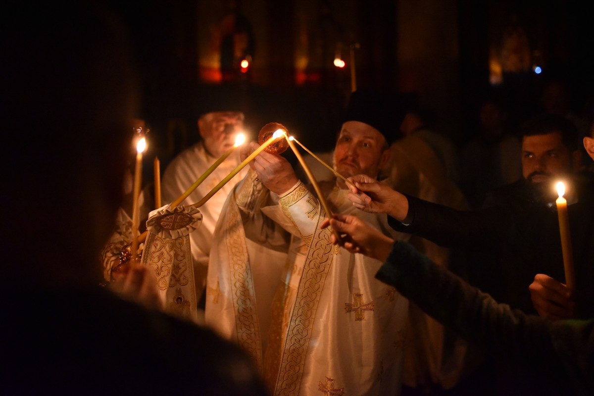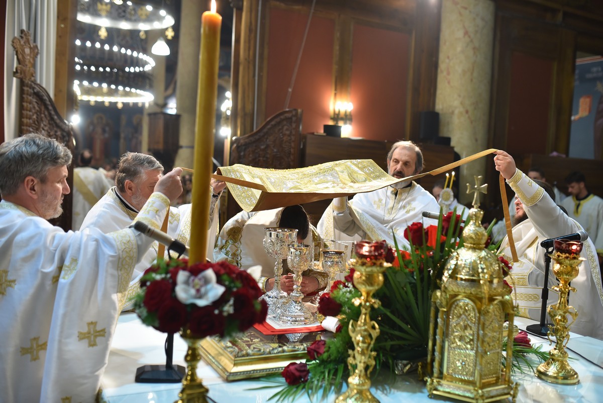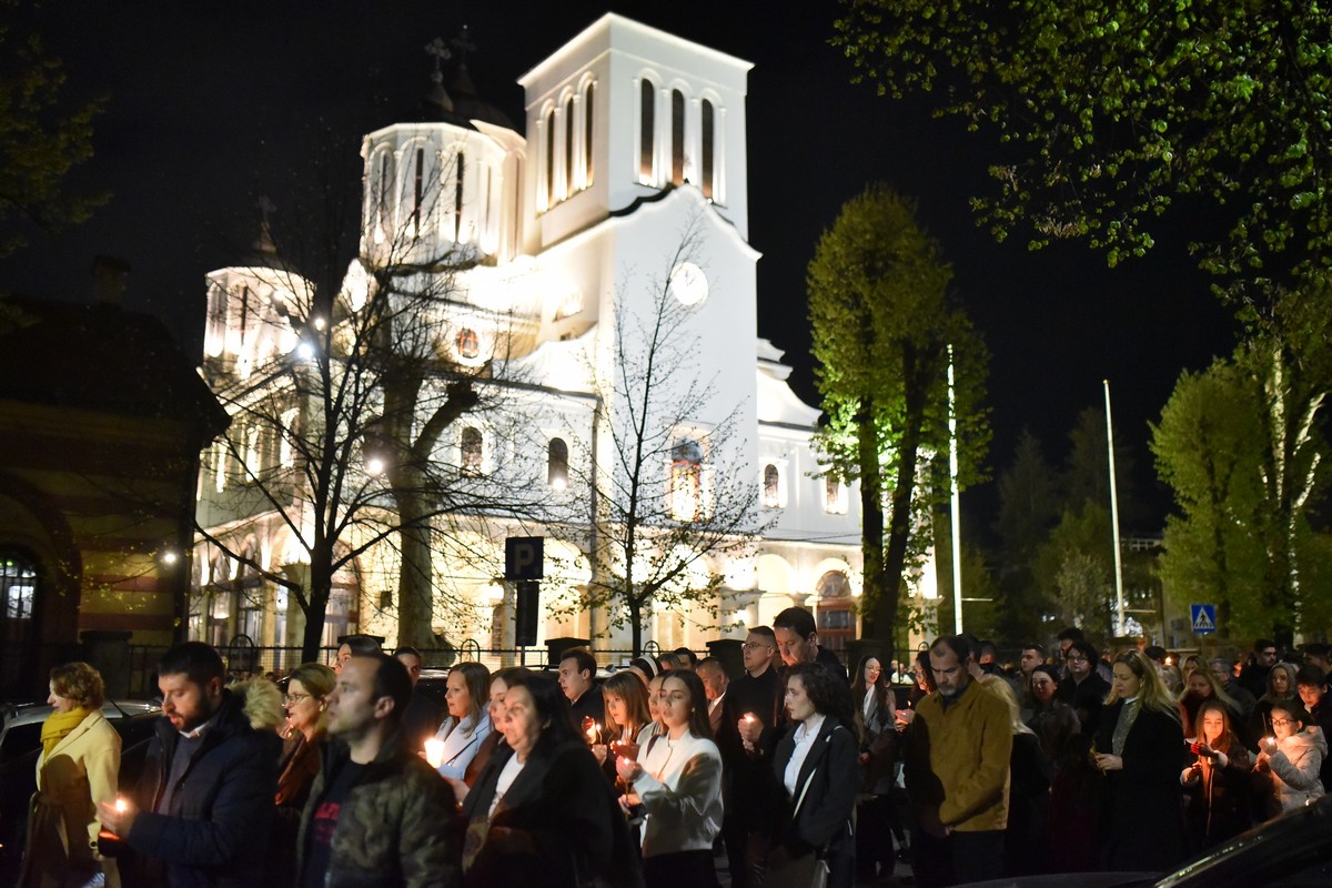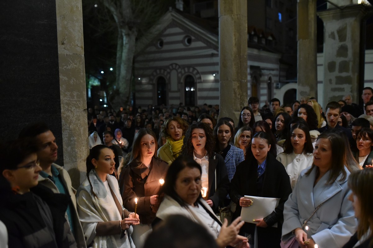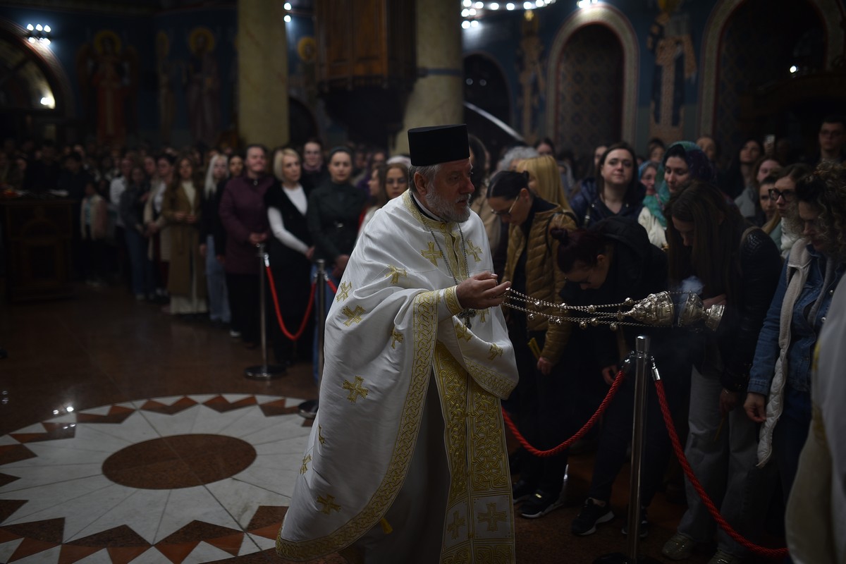 Празнично последовање започето је свечаним изношењем Плаштанице из Гроба Господњег и њеним уношењем у олтар, где ће на Часној Трпези стајати током ових дана радости и торжества. Уследила је величанствена литија, која је, прошавши оближњим градским улицама, окончана повратком у храмовну порту.