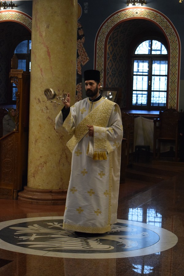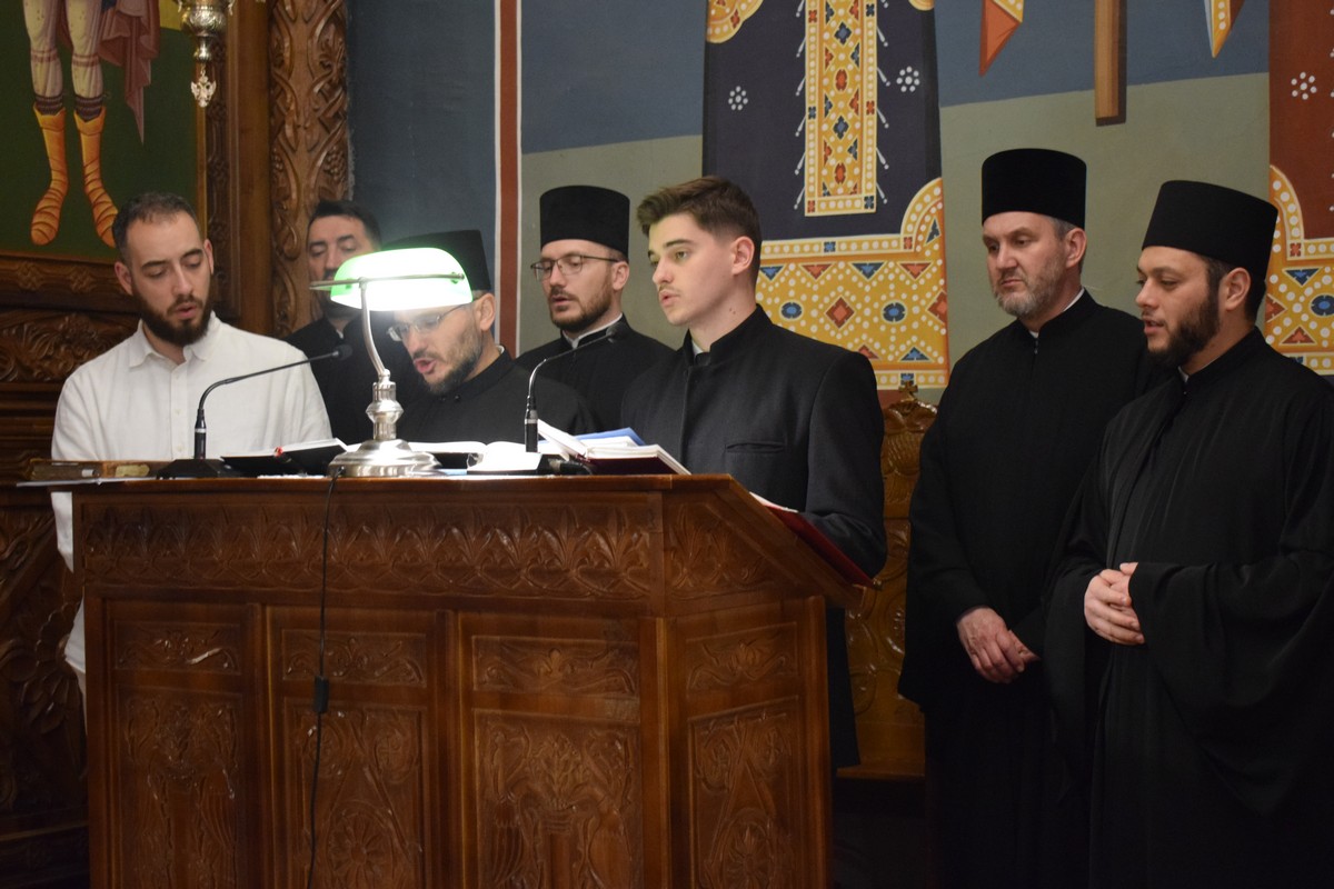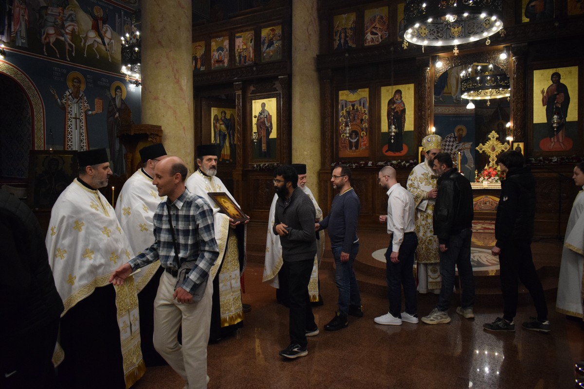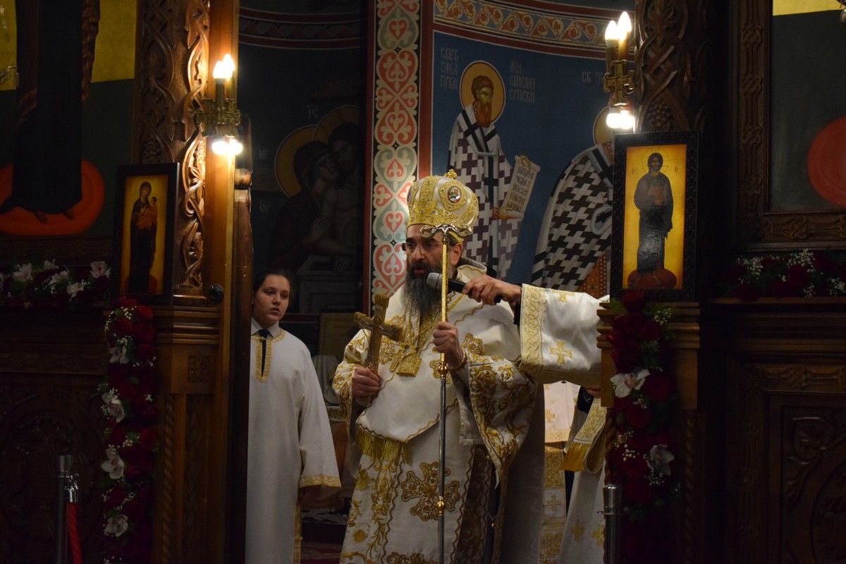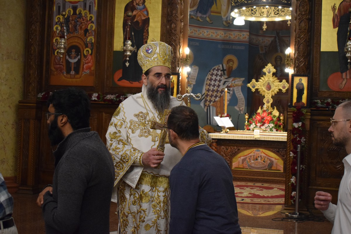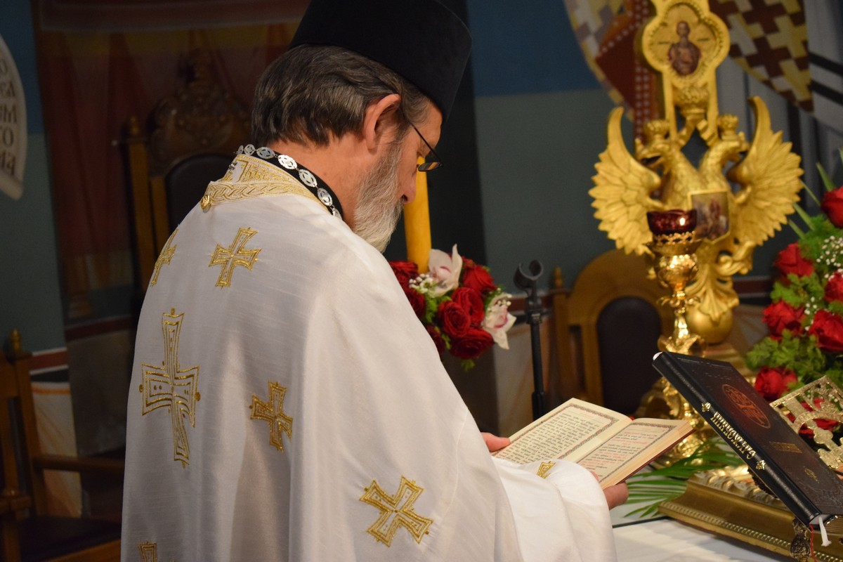 Након Входа и појања Великог прокимена, прописано зачало из Јеванђеља по Јовану је од стране Високопреосвећеног Владике и саслужујућег свештенства прочитано на више светских језика.