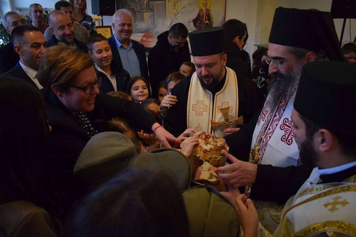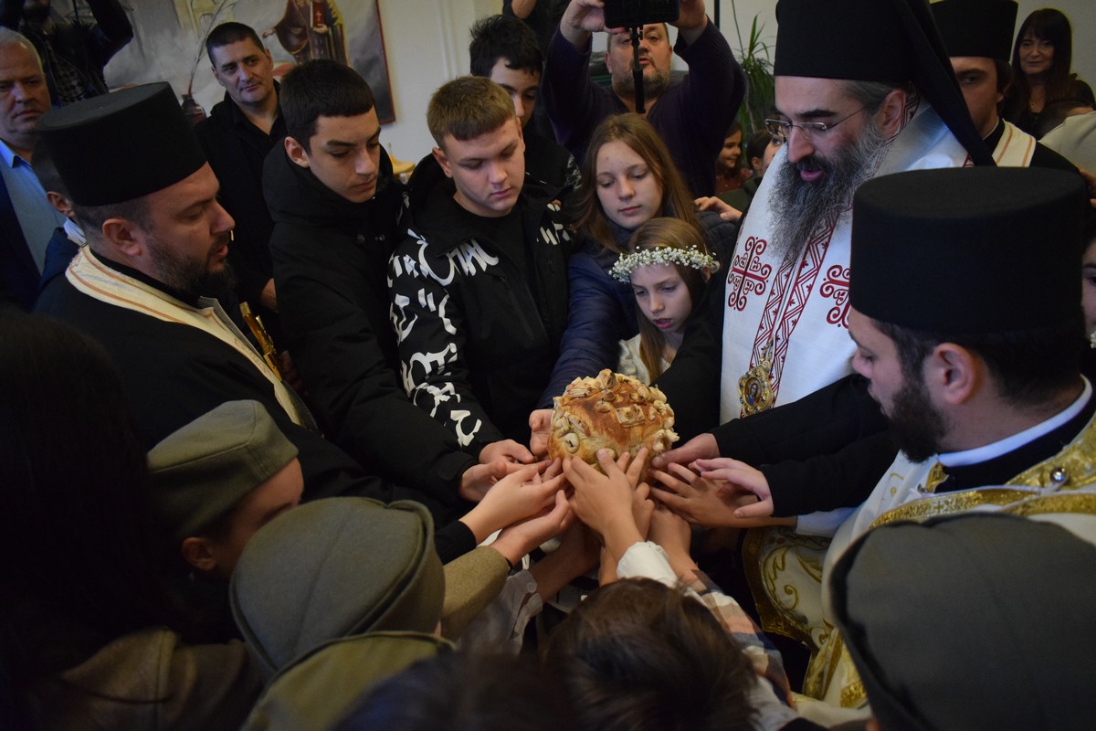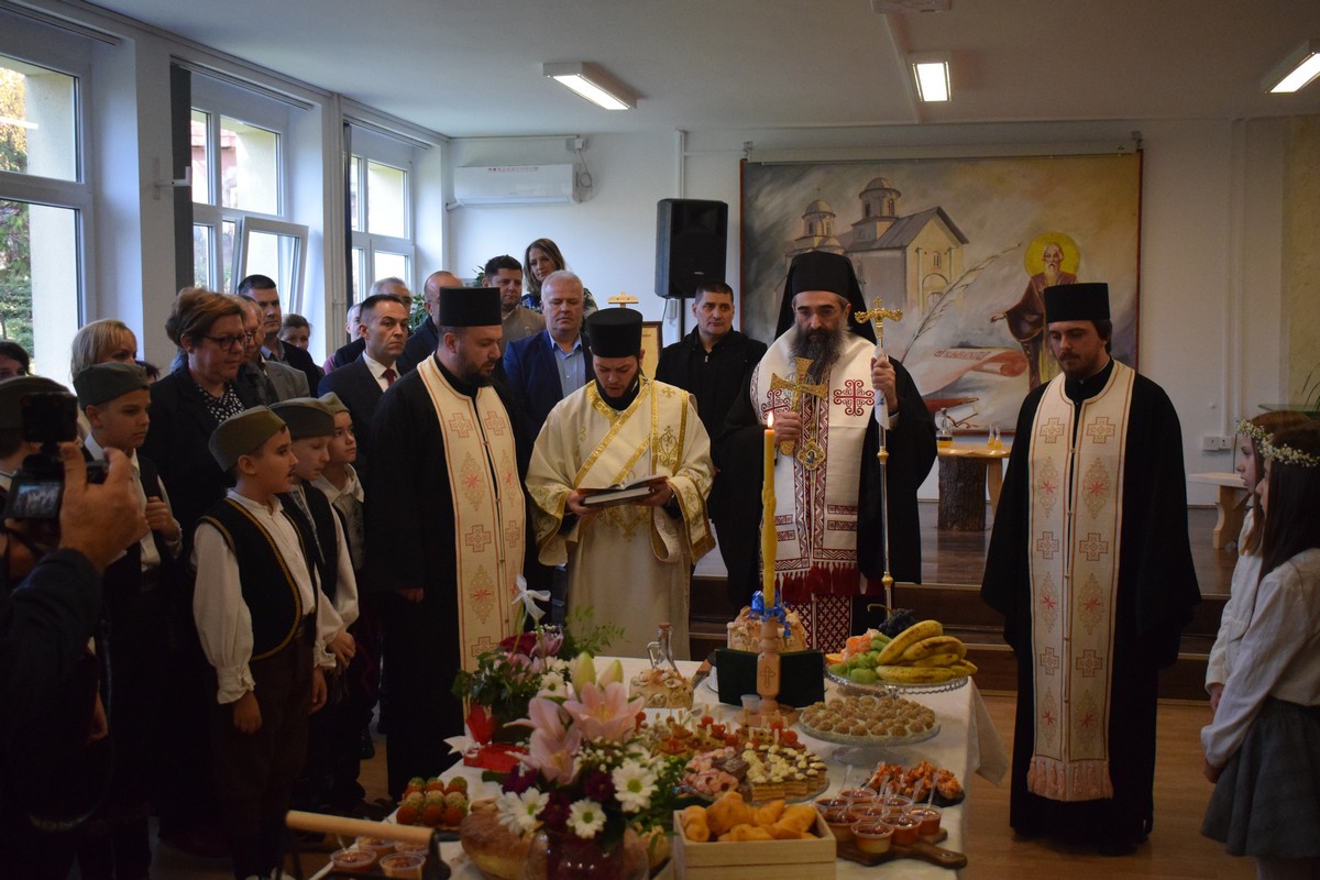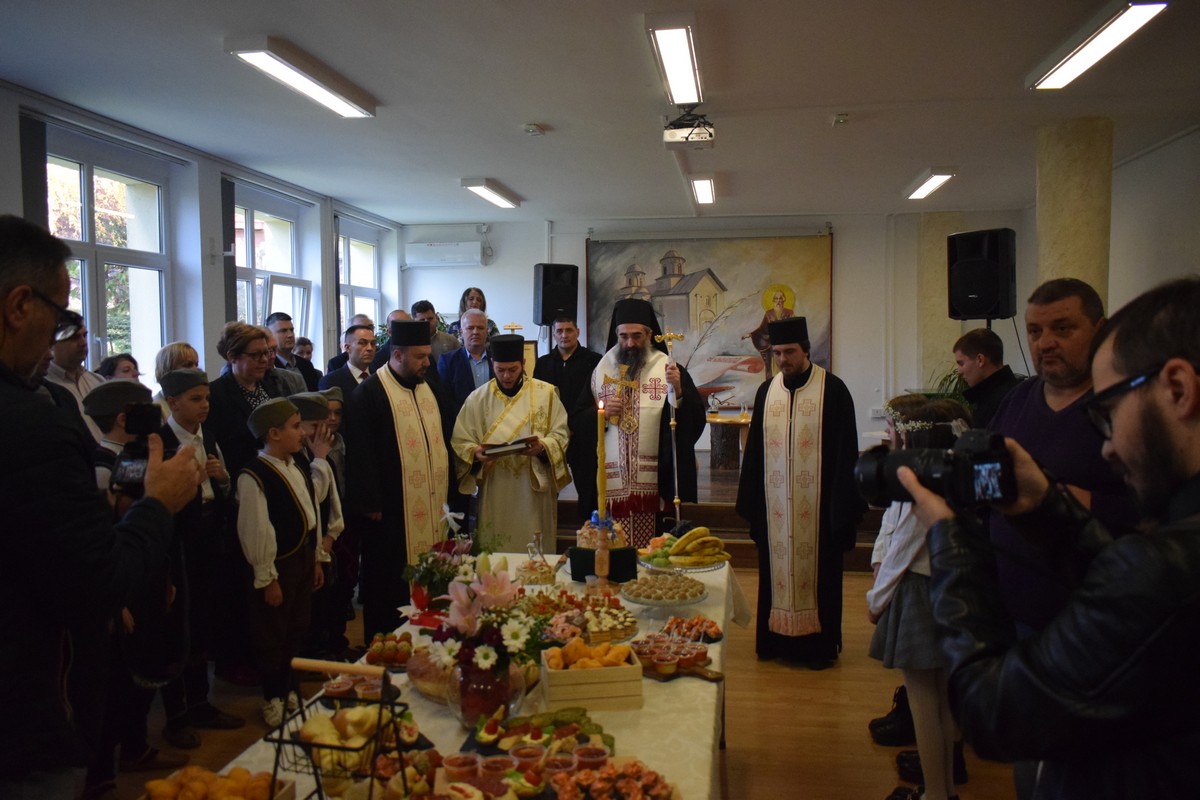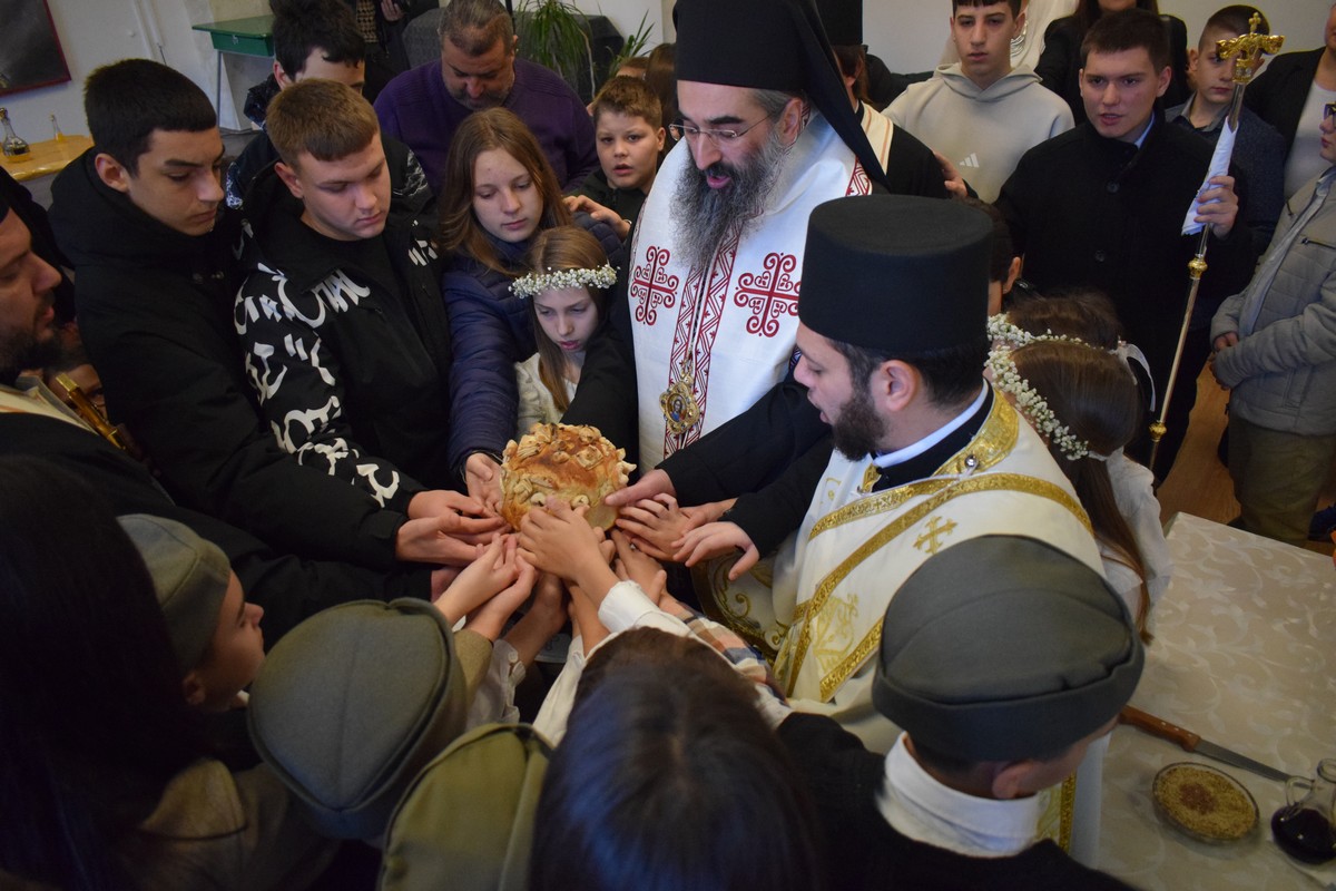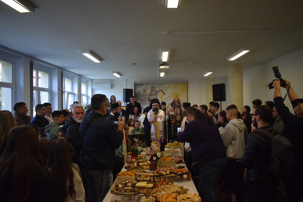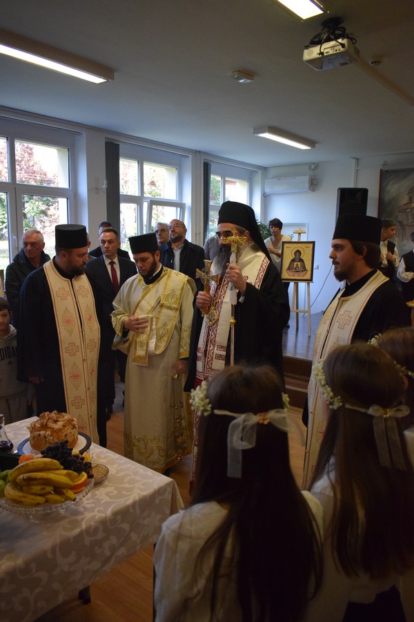 На самом почетку, Високопреосвећени Митрополит је осветио славске дарове и пререзао колач, припремљен у славу и част Светог Алимпија, небеског покровитеља ове образовне установе.