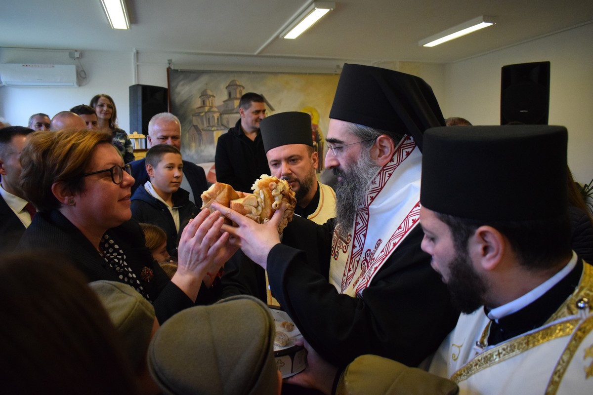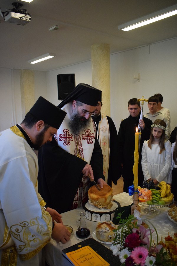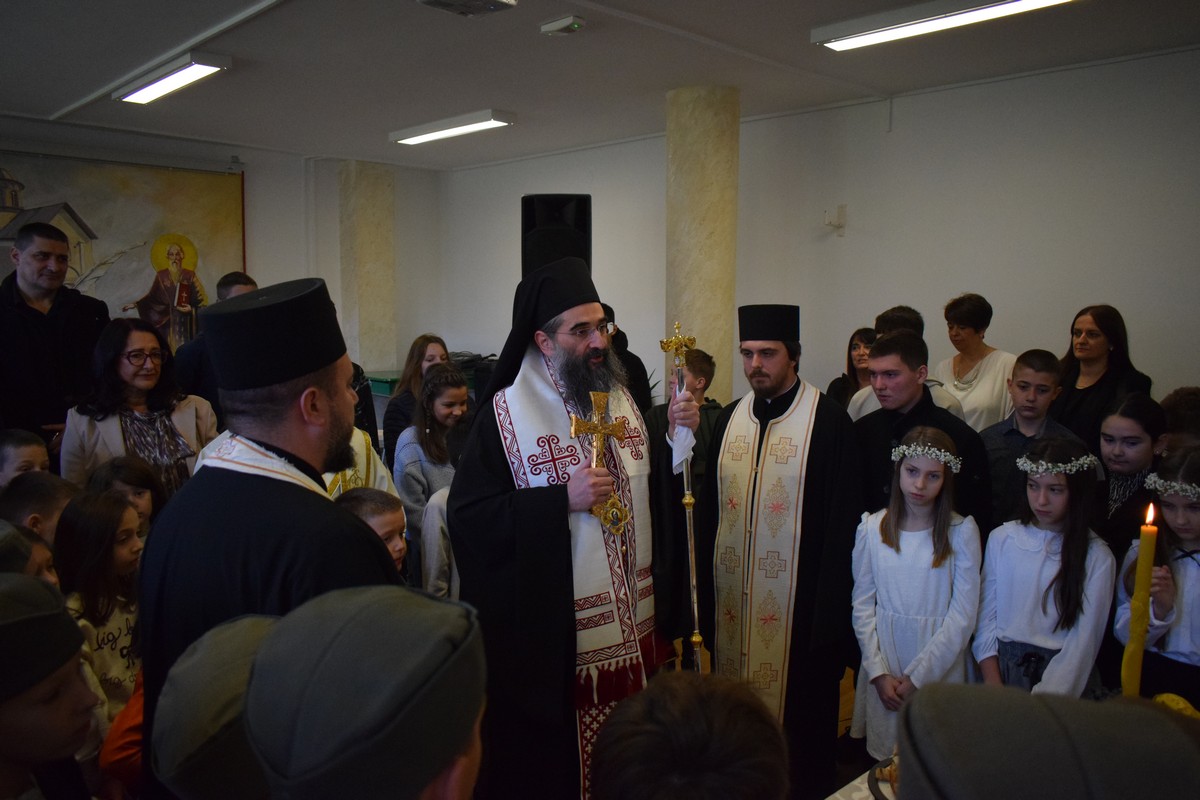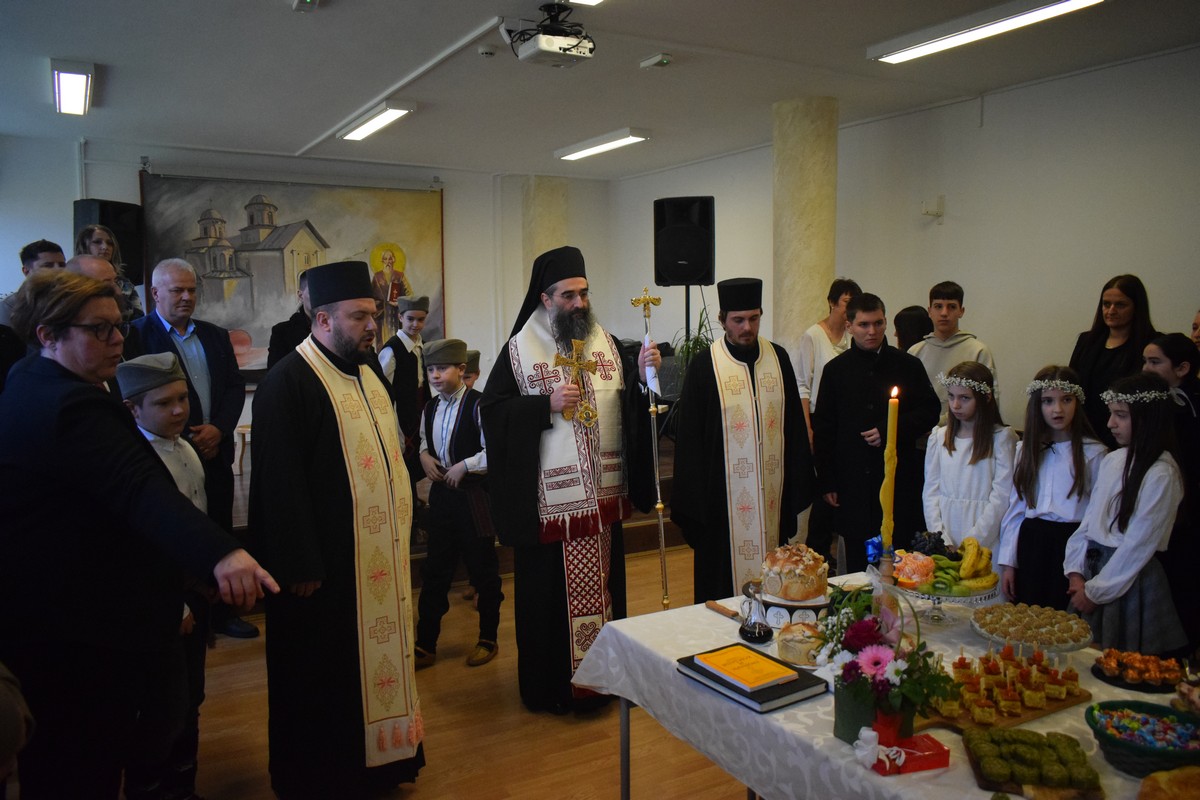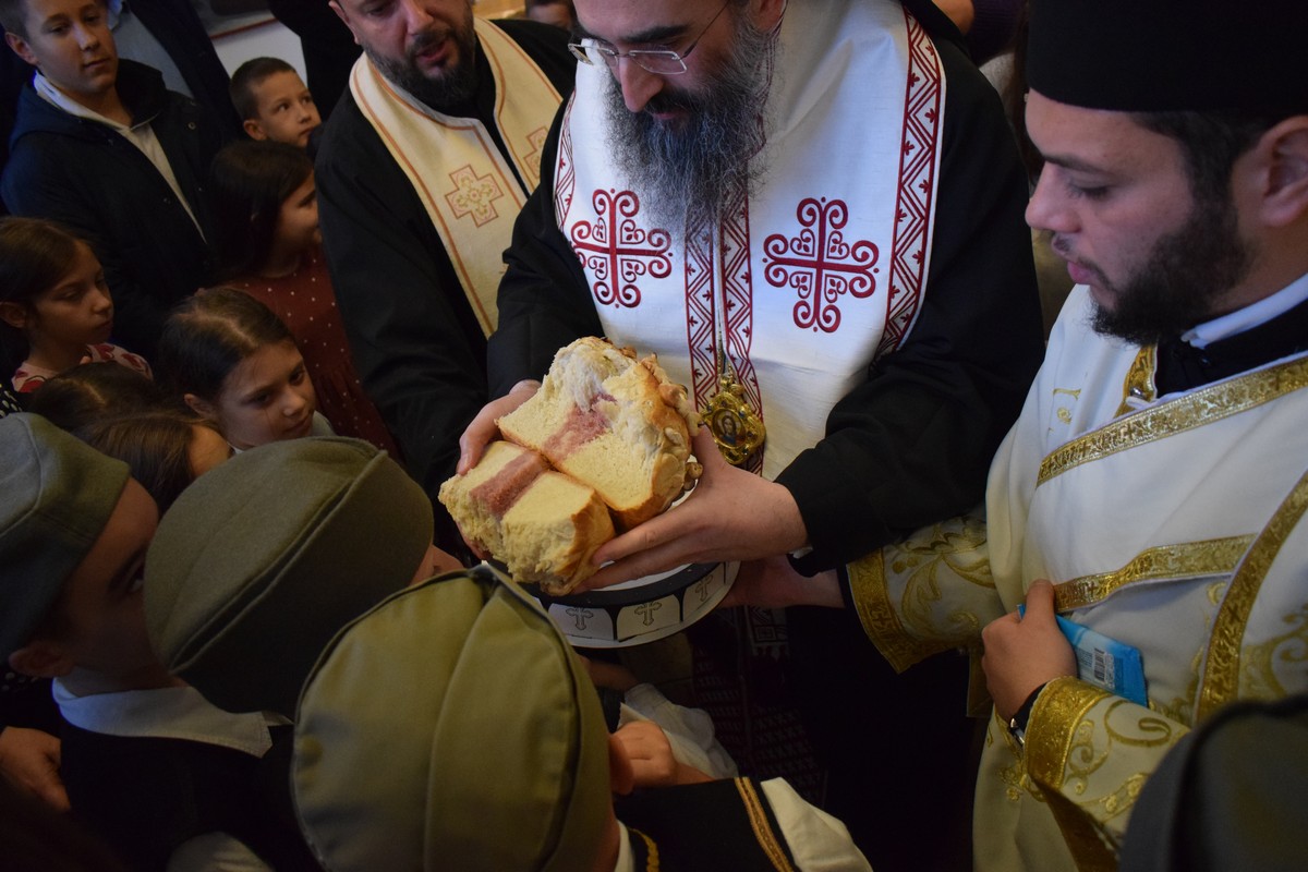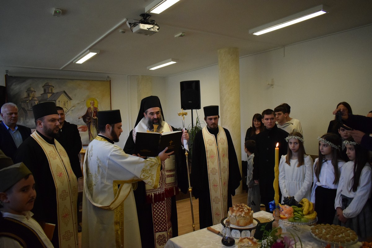 На самом почетку, Високопреосвећени Митрополит је осветио славске дарове и пререзао колач, припремљен у славу и част Светог Алимпија, небеског покровитеља ове образовне установе.