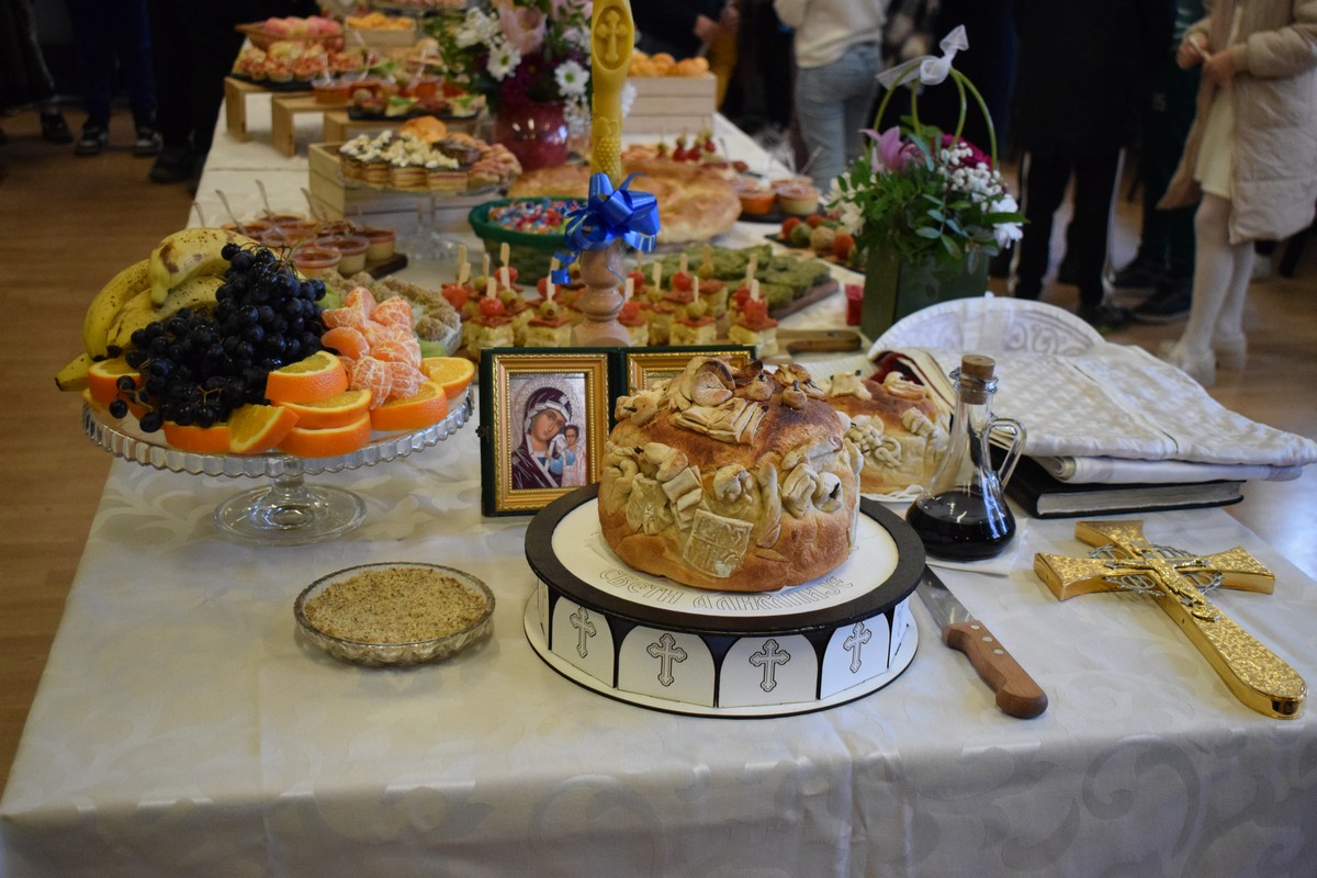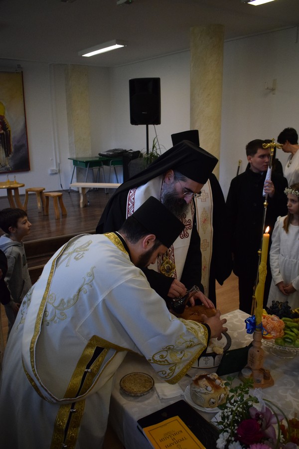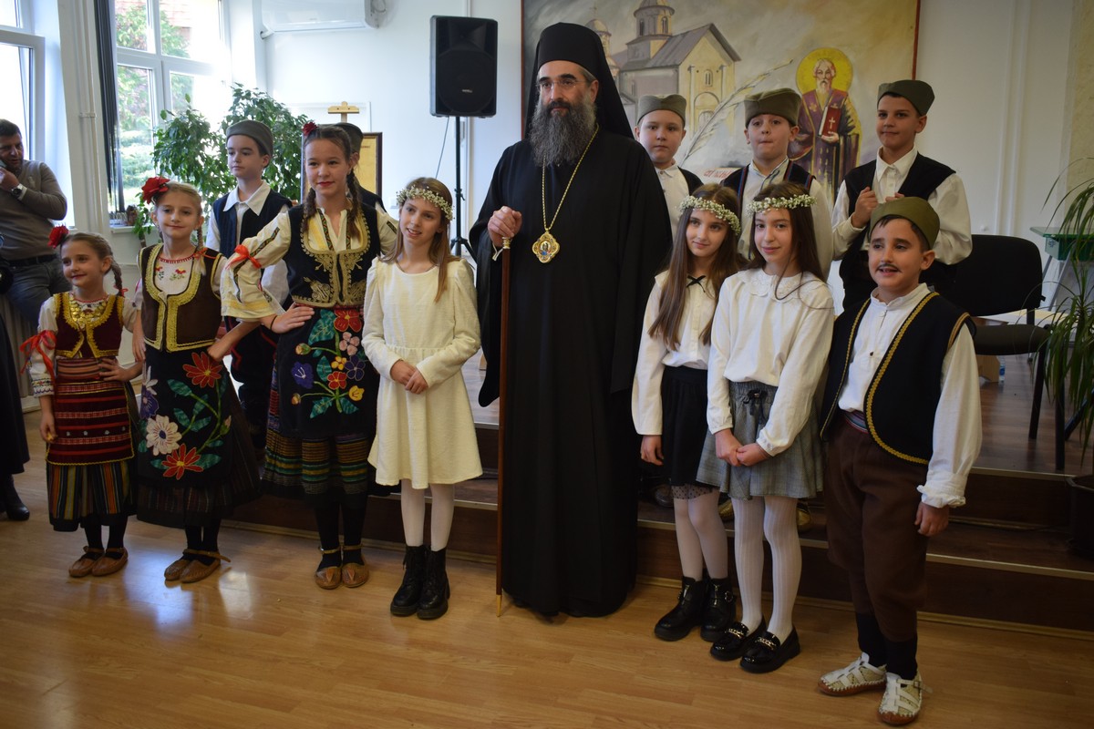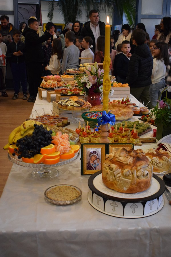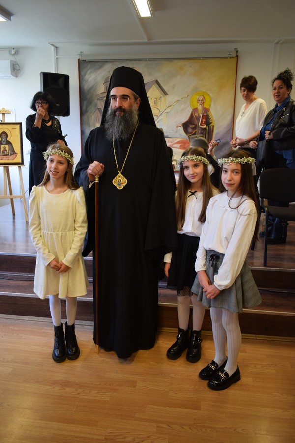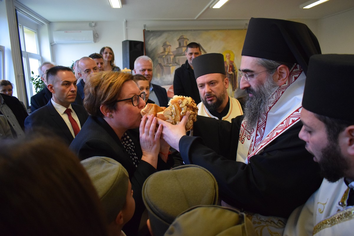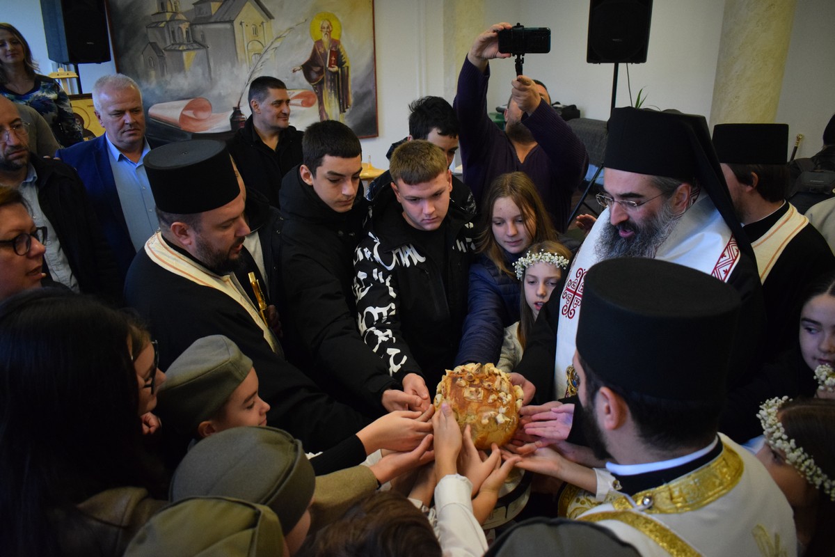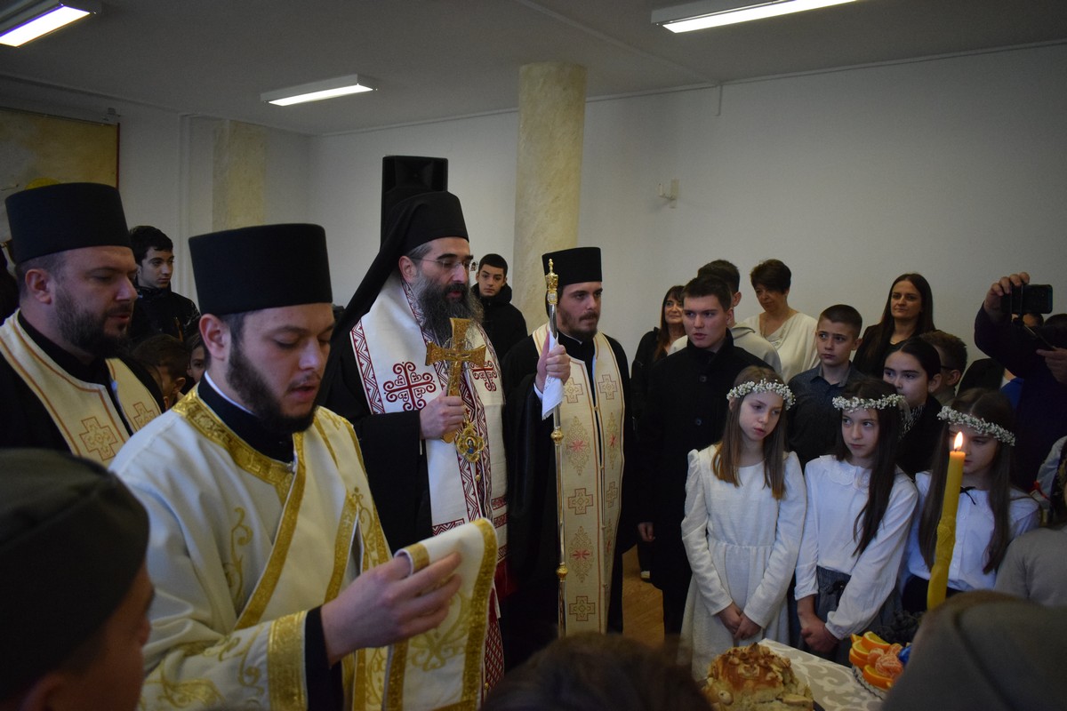 На самом почетку, Високопреосвећени Митрополит је осветио славске дарове и пререзао колач, припремљен у славу и част Светог Алимпија, небеског покровитеља ове образовне установе.