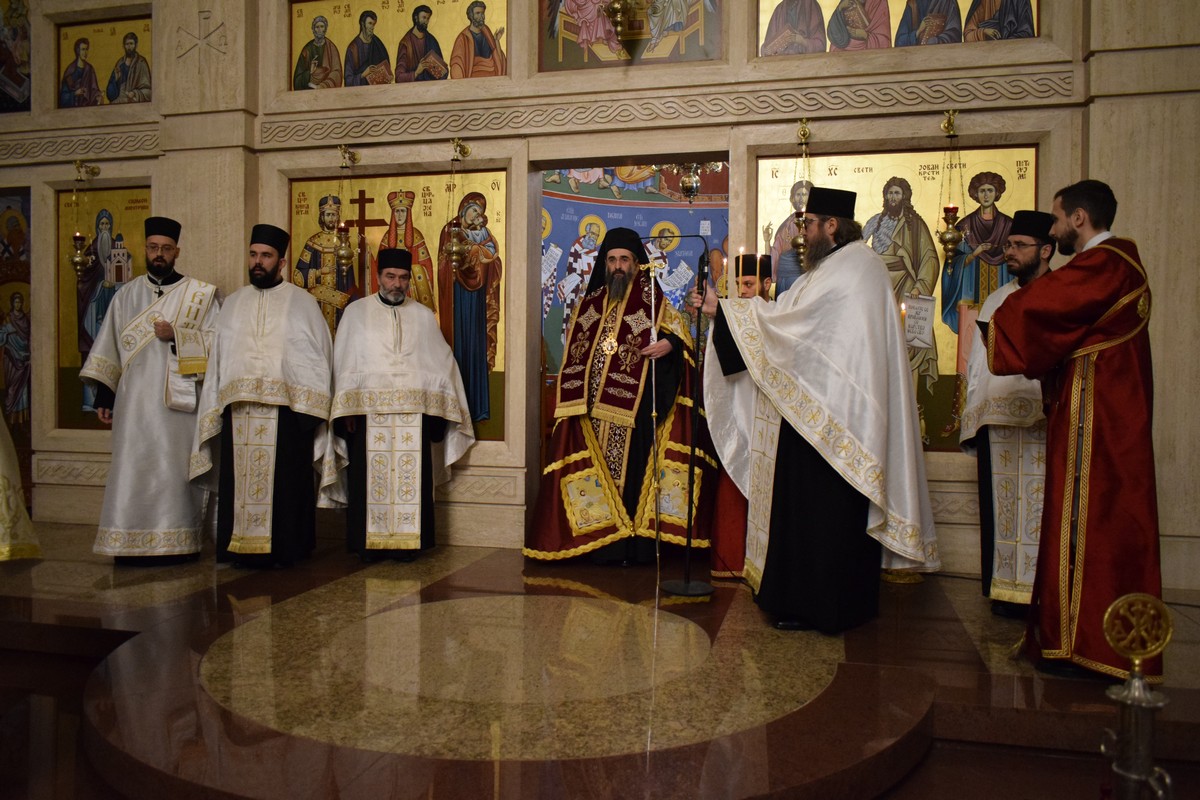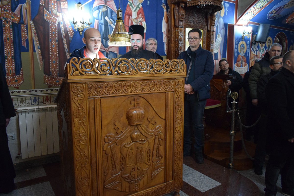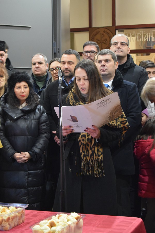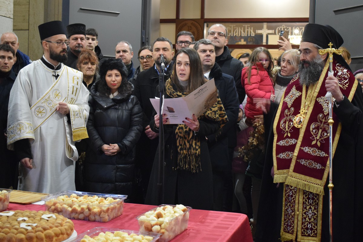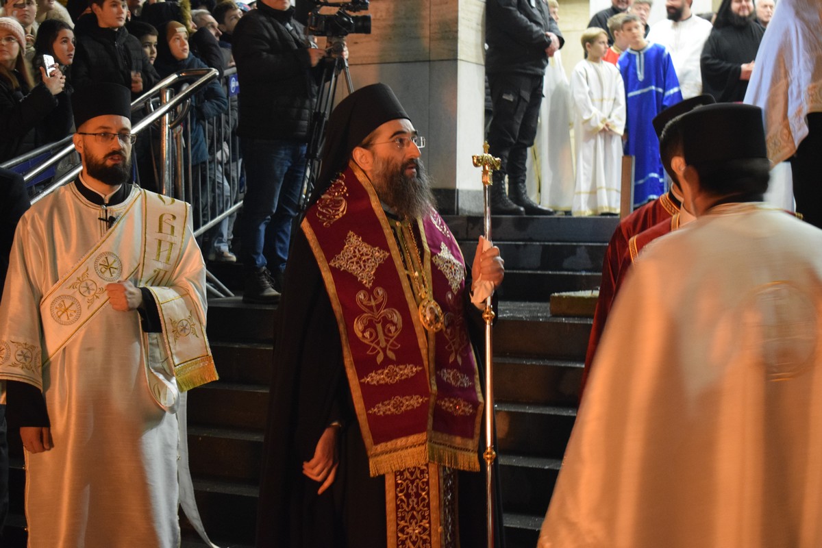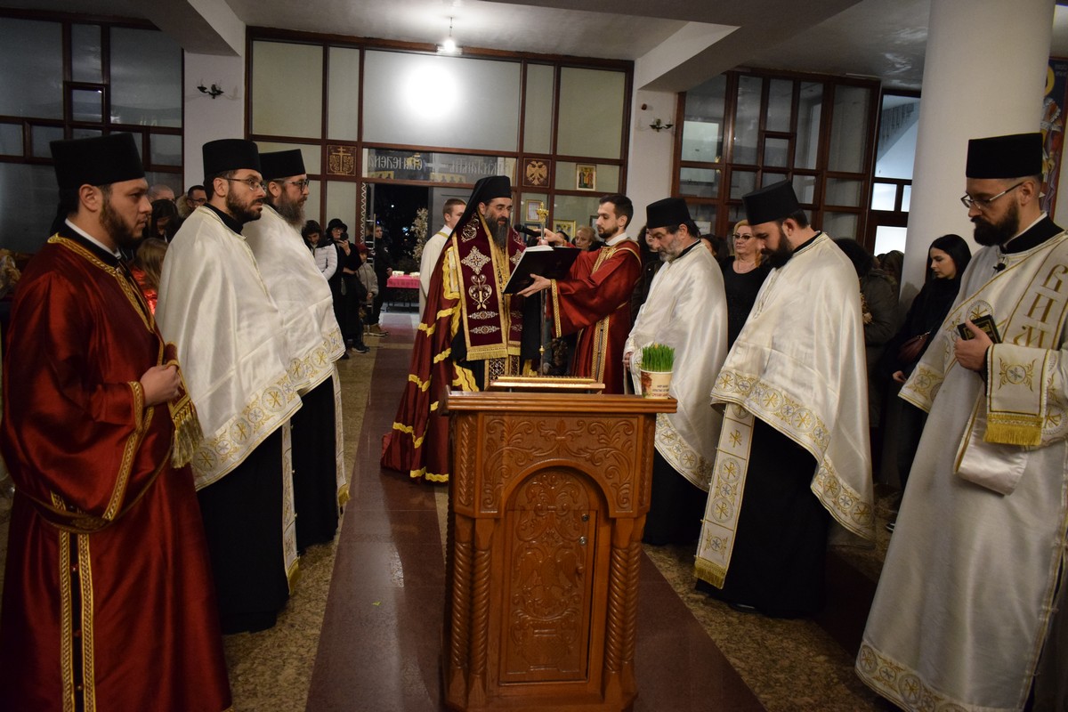 Његово Високопреосвештенство Митрополит нишки г. Арсеније посетио је најпре храм Светог Цара Константина и Царице Јелене, где је, након одслуженог Великог повечерја, благословио бадње дрво и припремљену чесницу. Благосиљању је следило налагање бадњака у храмовној порти.