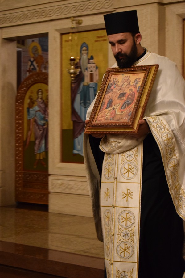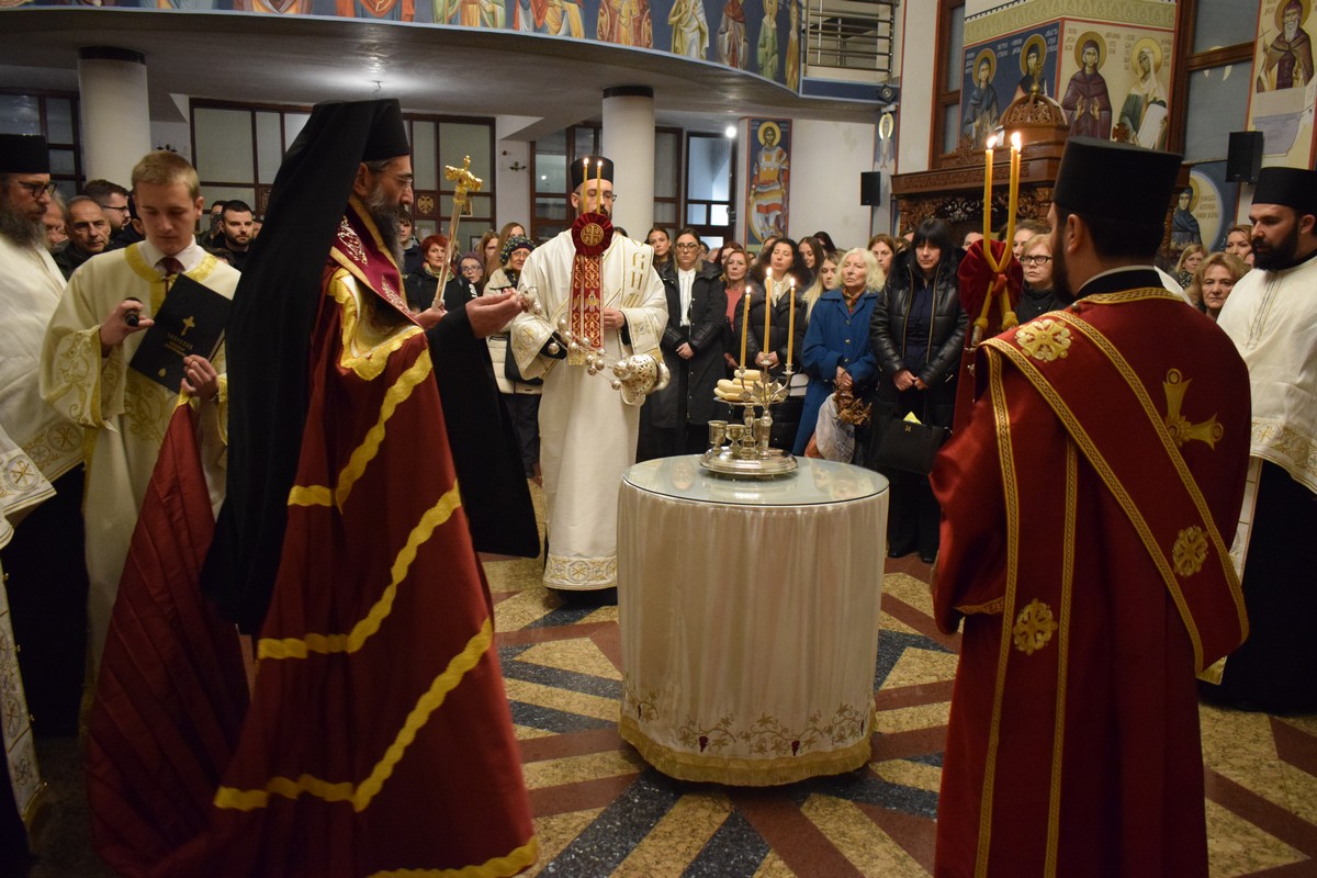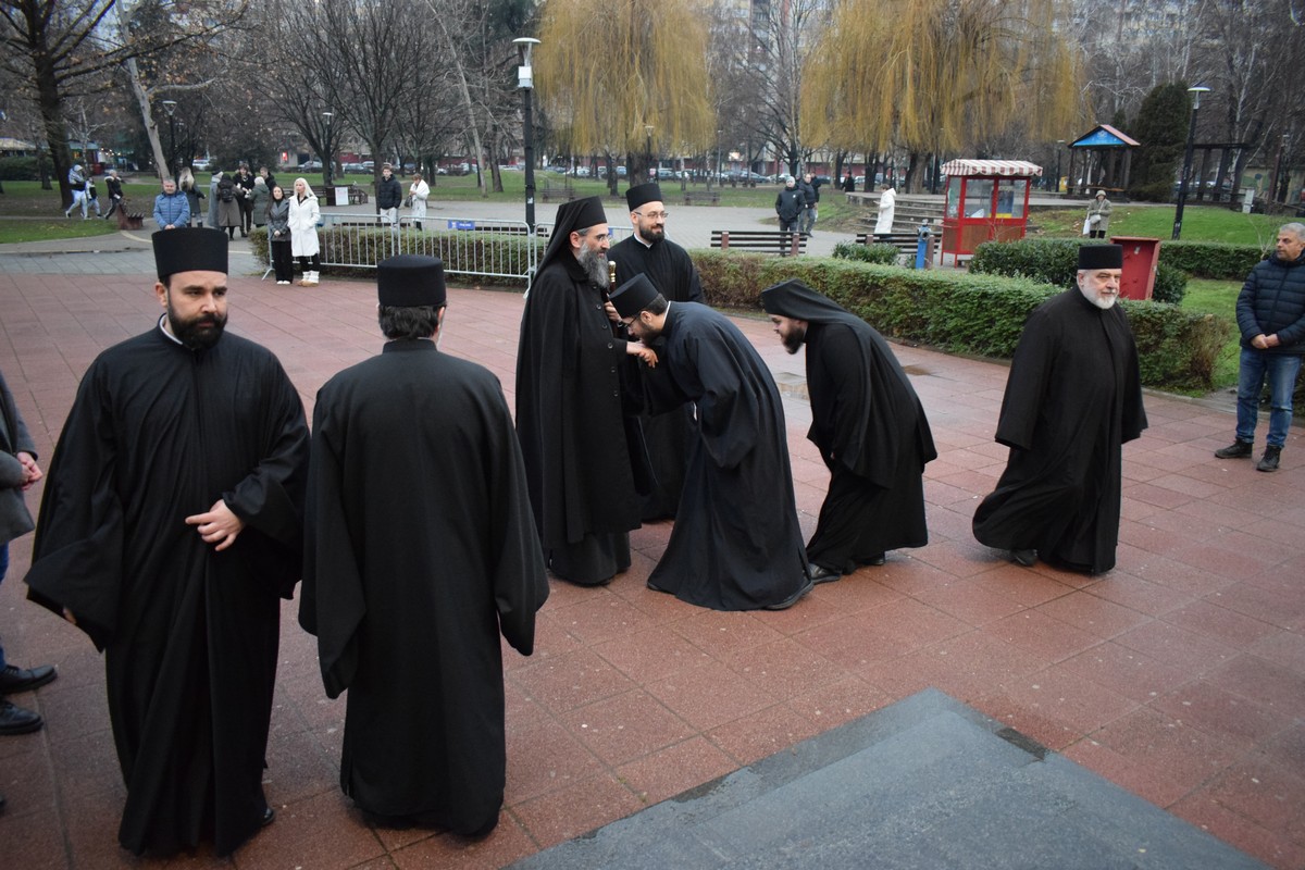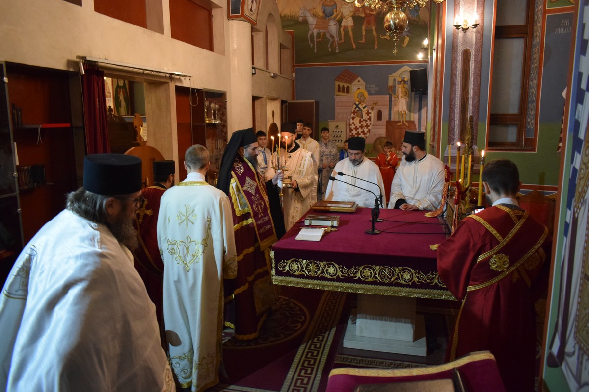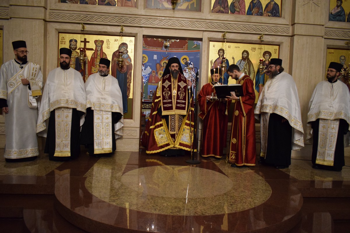 Његово Високопреосвештенство Митрополит нишки г. Арсеније посетио је најпре храм Светог Цара Константина и Царице Јелене, где је, након одслуженог Великог повечерја, благословио бадње дрво и припремљену чесницу. Благосиљању је следило налагање бадњака у храмовној порти.