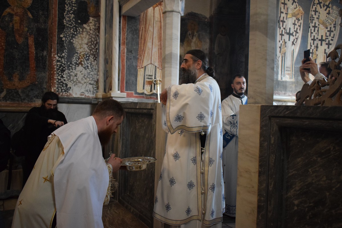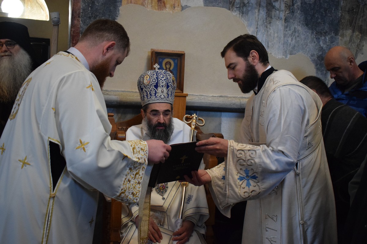 Високопреосвећеном Митрополиту саслуживали су протојереј ставрофор Љубинко Костић, Архијерејски заменик, протојереј Данило Петровић, Архијерејски намесник студенички, протосинђел Стефан Чкоњевић, настојатељ манастира Згодачица, јеромонах Пантелејмон Мијаиловић, јеромонах Пантелејмон Дивљаковић, јеромонах Сергије Радивојевић, клирик крушевачке Епархије, јеромонах Паладије Вукшић, сабрат манастира Студеница, јереј Велимир Бугарин из Митрополије црногорско-приморске, протођакон Ђорђе Филиповић и ђакон Стефан Симић.