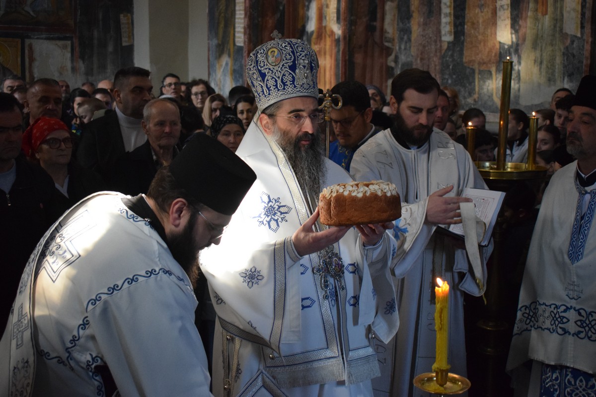 Након заамвоне молитве, Високопреосвећени Владика је осветио славске дарове и пререзао колач, припремљен поводом ктиторске славе ове Богородичине светиње, која вековима стоји као темељ духовног напретка нашег народа и путоказ ка најсветлијим примерима српске повести.