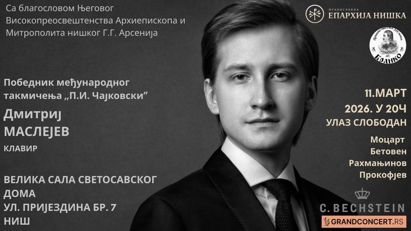 НАЈАВА ЗА КОНЦЕРТ ДМИТРИЈА МАСЛЕЈЕВА У СВЕТОСАВСКОМ ДОМУ У НИШУ