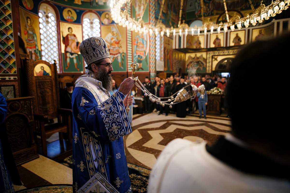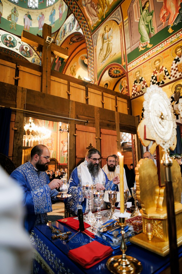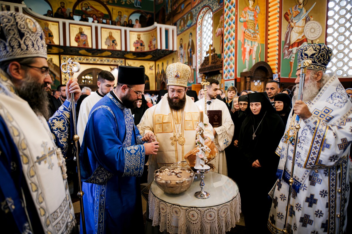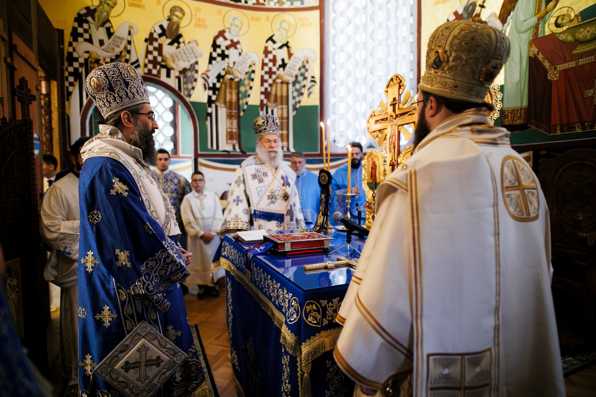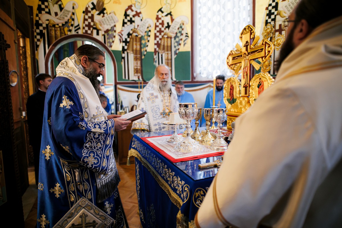 Евхаристијском прославом началствовао је Његово Високопреосвештенство Митрополит нишки г. Арсеније, уз саслужење Његовог Преосвештенства Епископа лондонског и великобританско-ирског г. Нектарија и Његовог Преосвештенства Епископа хвостанског г. Алексеја, викара Његове Светости Патријарха српског г. Порфирија. Својим саслужењем учешћа у Светој Литургији узели су и архимандрит Мардарије Ковачевић, протојереј-ставрофор Бранислав Цинцаревић, протојереј-ставрофор Ненад Поповић, протојереј-ставрофор Ђорђе Милојковић, протојереј Миодраг Павловић, протојереј Милан Ристивојчевић, протођакон Никола Ераковић, ђакон Стефан Пекић и ђакон Филип Миливојевић.