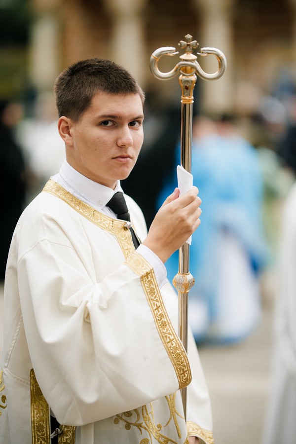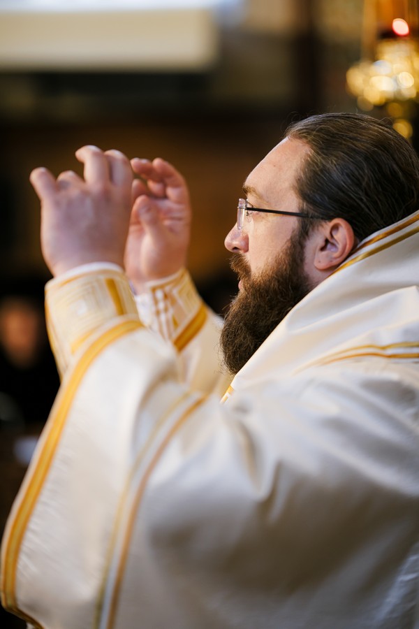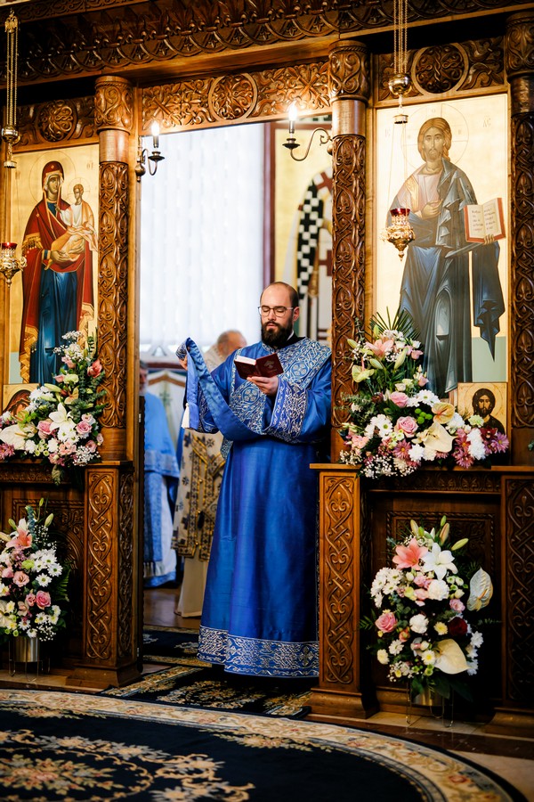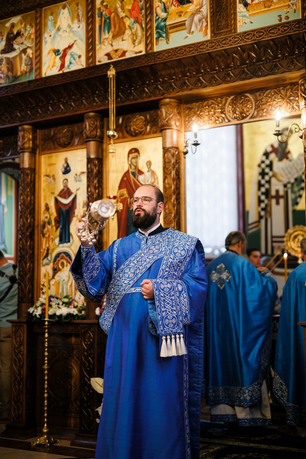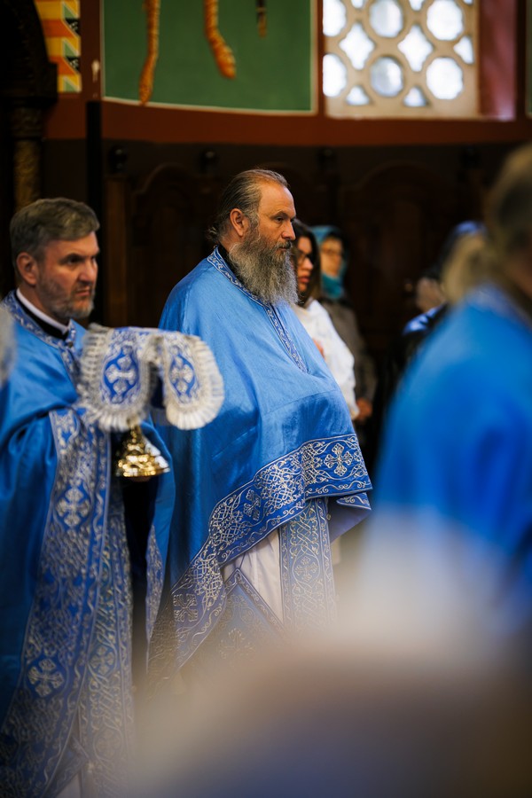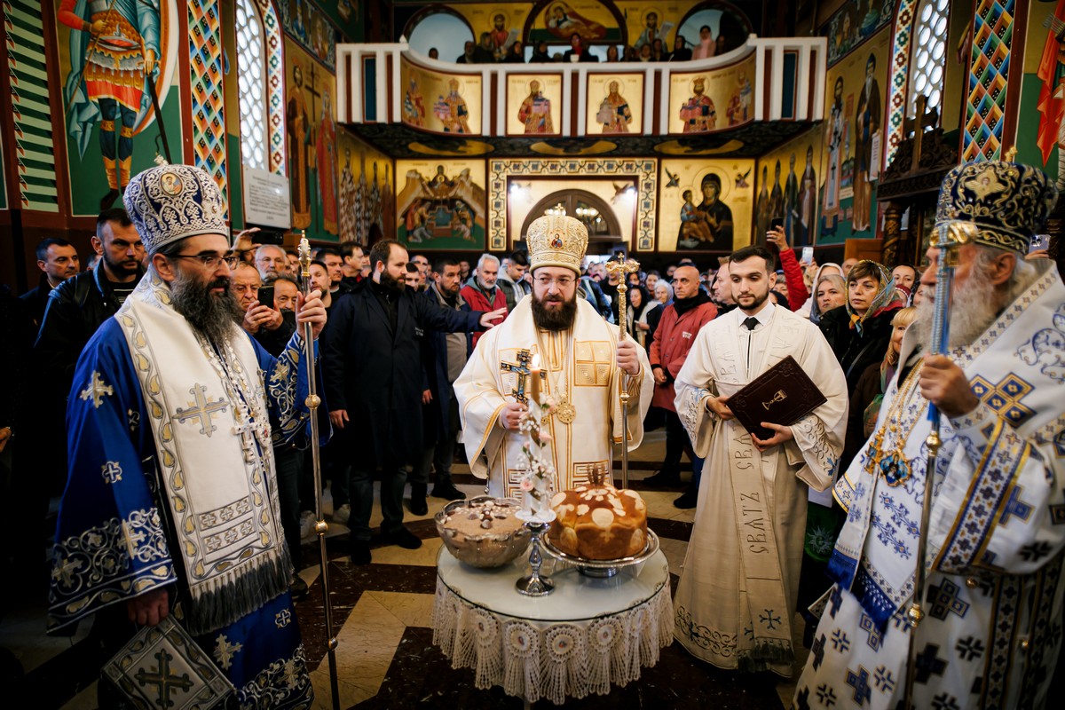 Евхаристијском прославом началствовао је Његово Високопреосвештенство Митрополит нишки г. Арсеније, уз саслужење Његовог Преосвештенства Епископа лондонског и великобританско-ирског г. Нектарија и Његовог Преосвештенства Епископа хвостанског г. Алексеја, викара Његове Светости Патријарха српског г. Порфирија. Својим саслужењем учешћа у Светој Литургији узели су и архимандрит Мардарије Ковачевић, протојереј-ставрофор Бранислав Цинцаревић, протојереј-ставрофор Ненад Поповић, протојереј-ставрофор Ђорђе Милојковић, протојереј Миодраг Павловић, протојереј Милан Ристивојчевић, протођакон Никола Ераковић, ђакон Стефан Пекић и ђакон Филип Миливојевић.