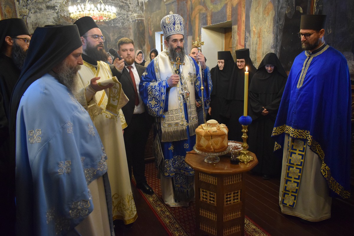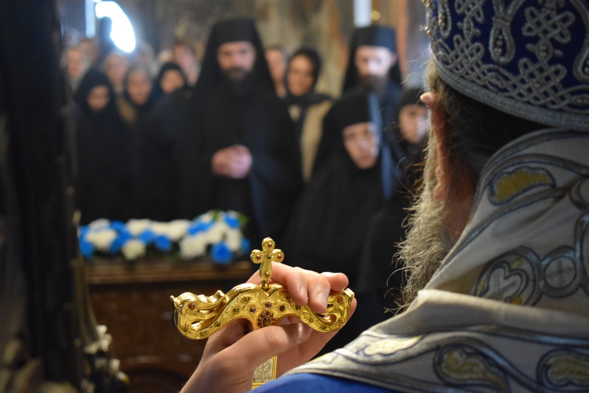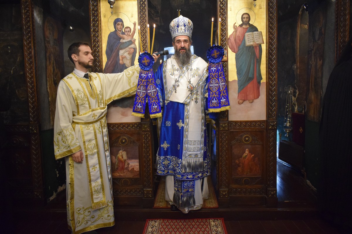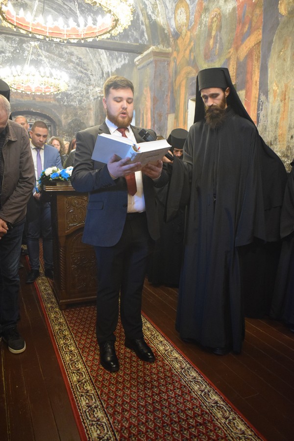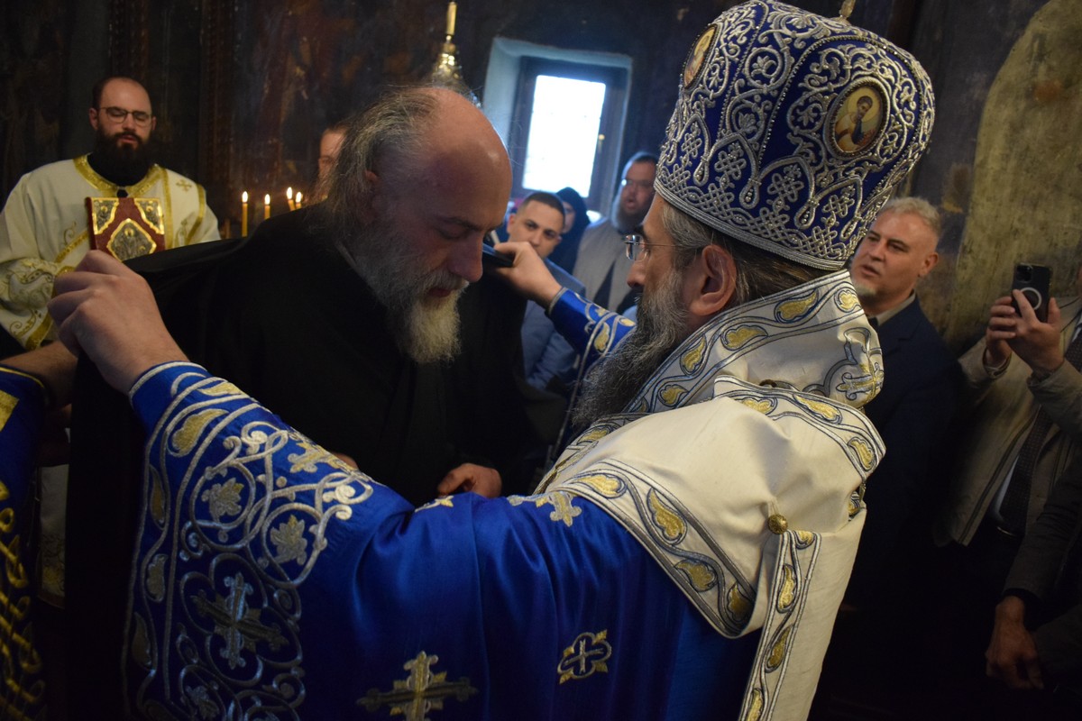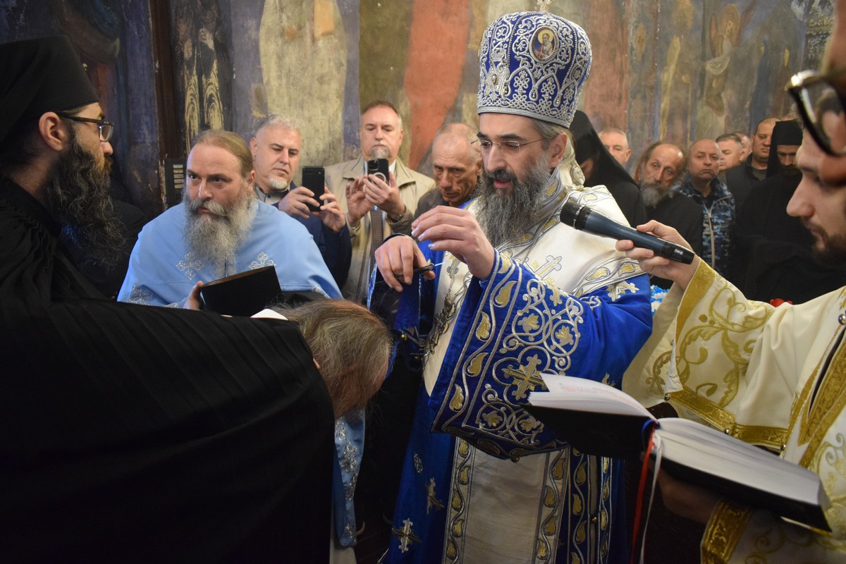 На Малом входу овог литургијског сабрања, које почиње вечерњом службом, Високопреосвећени Владика је, по чину одевања расе и камилавке, у монашки чин увео искушеника ове свете обитељи Радомира, који је, благословом Његовог Високопреосвештенства, понео име Агатон.