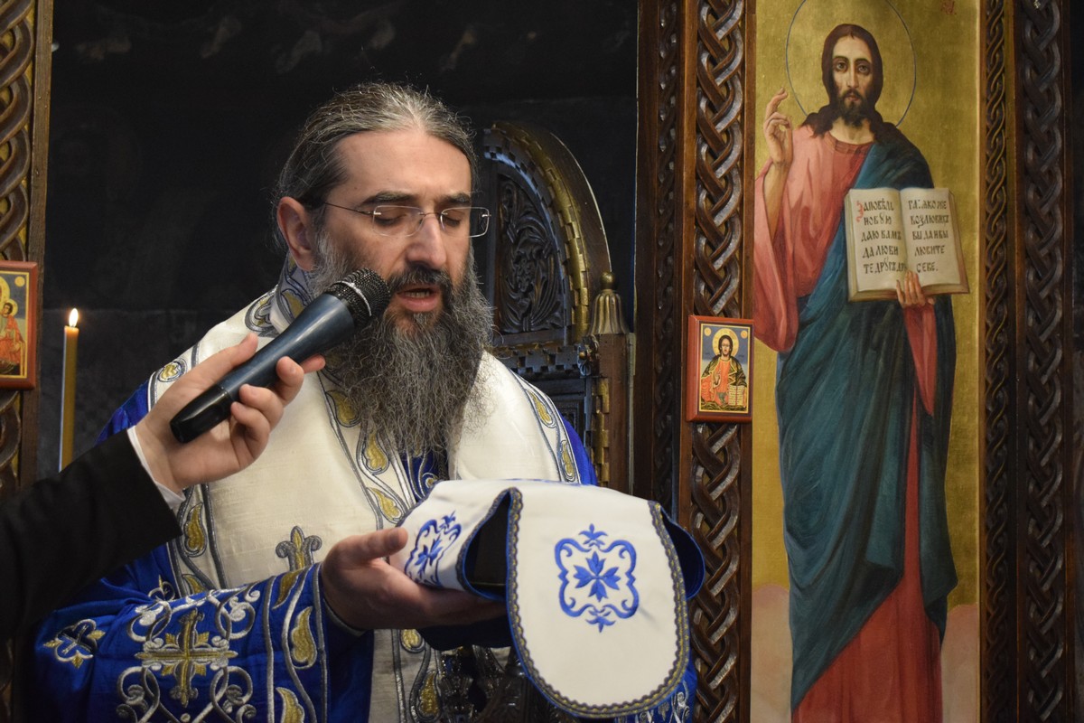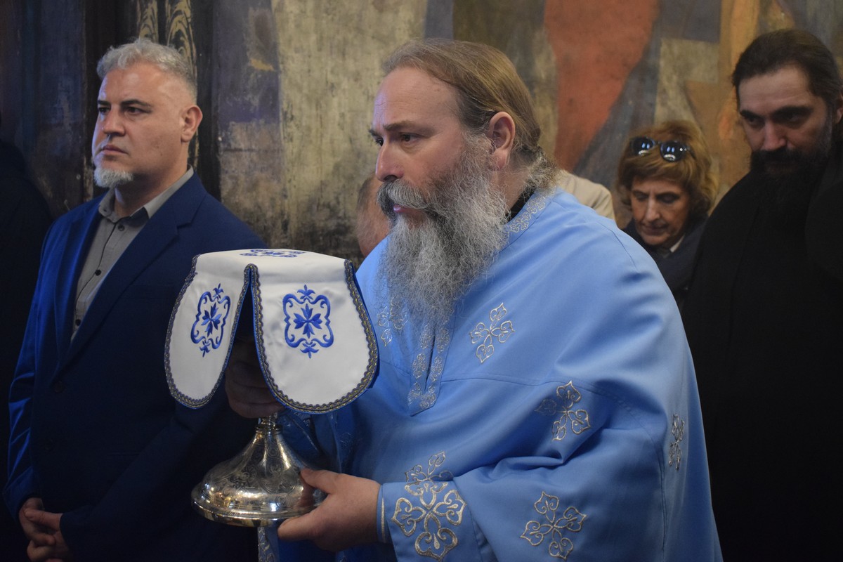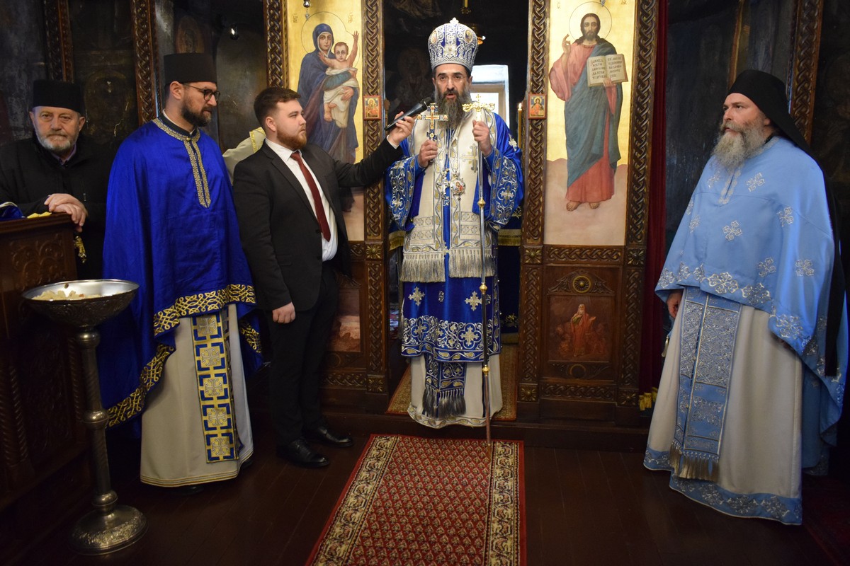 Након заамвоне молитве, Високопреосвећени Митрополит је осветио славске дарове и пререзао колач, припремљен у славу и част Пресвете Богородице, чије Благовештење овога дана Света Црква свечано прославља.