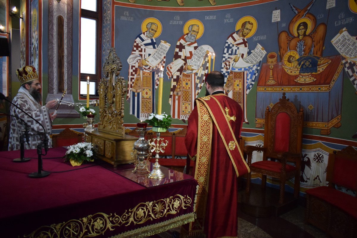 Након читања из Светог Јеванђеља, празничном омилијом је верни народ, по благослову Његовог Високопреосвештенства, поучио јереј Бобан Димитријевић.