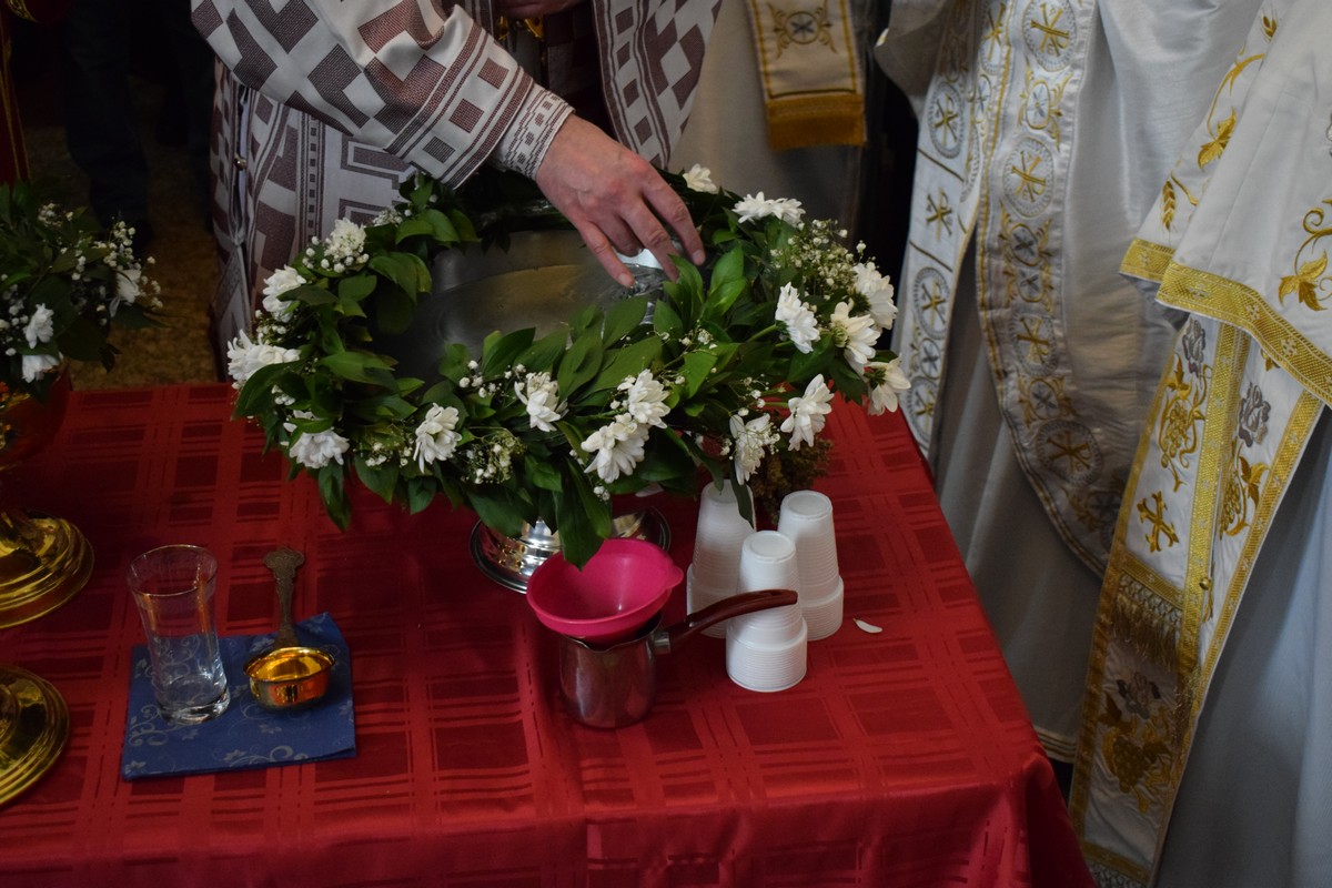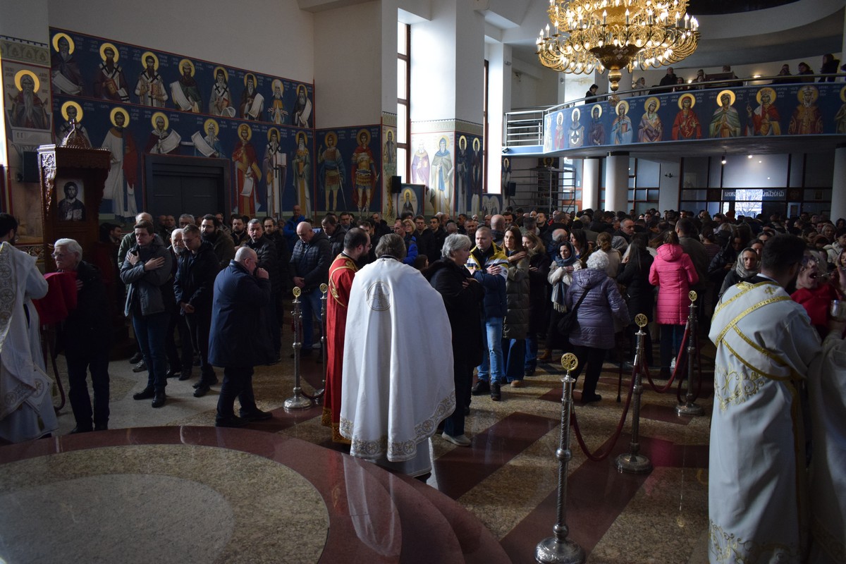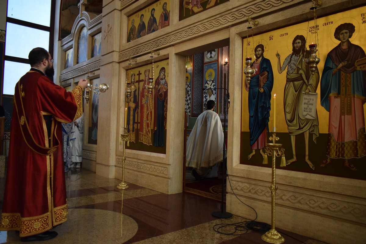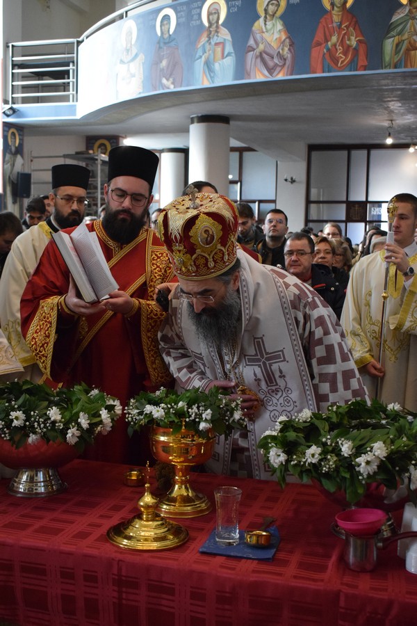 Литургији Светог Јована Златоустог следило је служење празничног вечерњег богослужења, на крају чега је у лађи храма извршен чин Великог освећења воде.