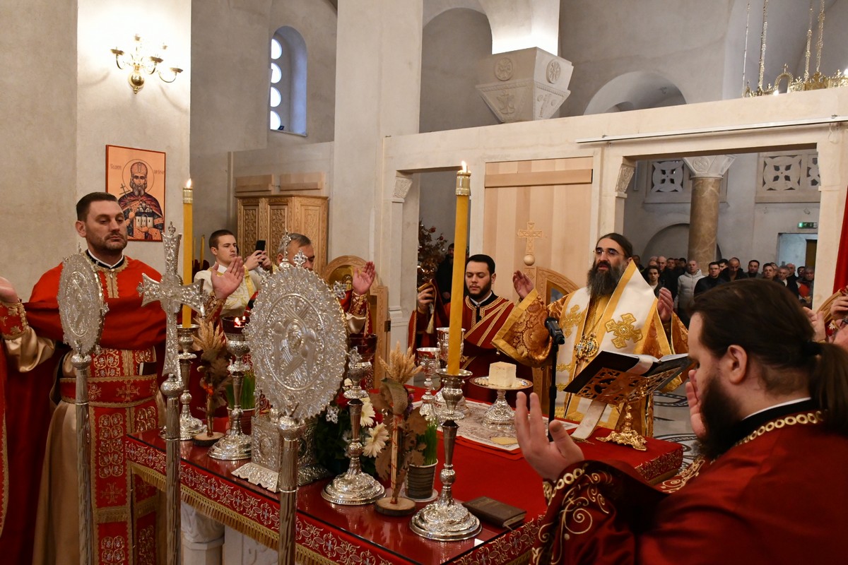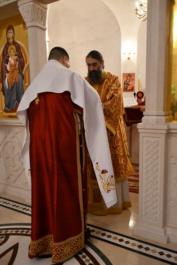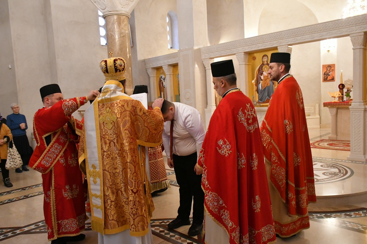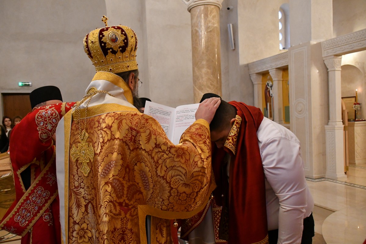 Након одслужених Царских часова, на самом почетку евхаристијског сабрања, Високопреосвећени Владика је у први чин свештенства, чин чтеца, рукопроизвео Лазара Радосављевића, ученика пете године нишке Богословије Светих Кирила и Методија.