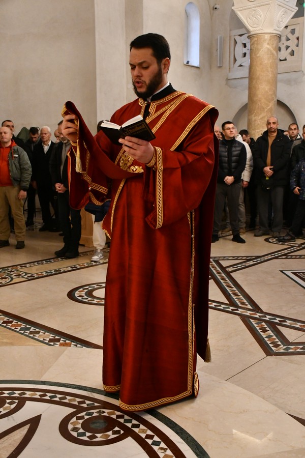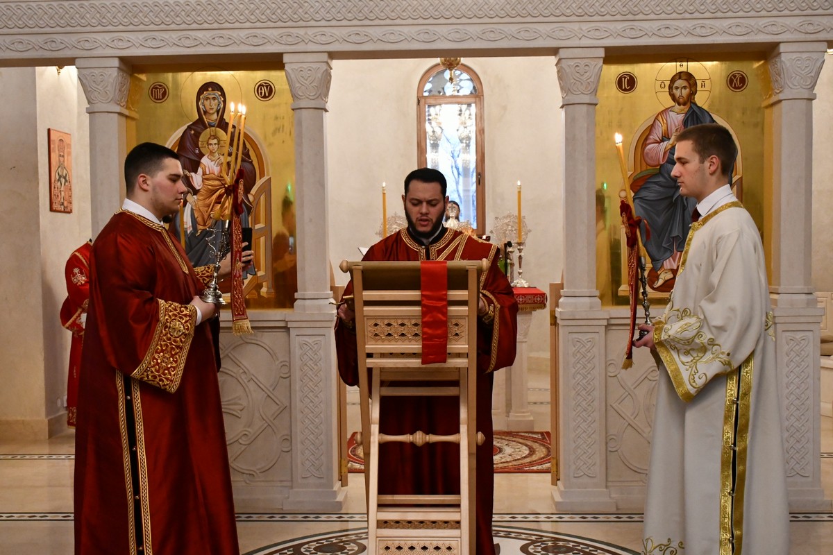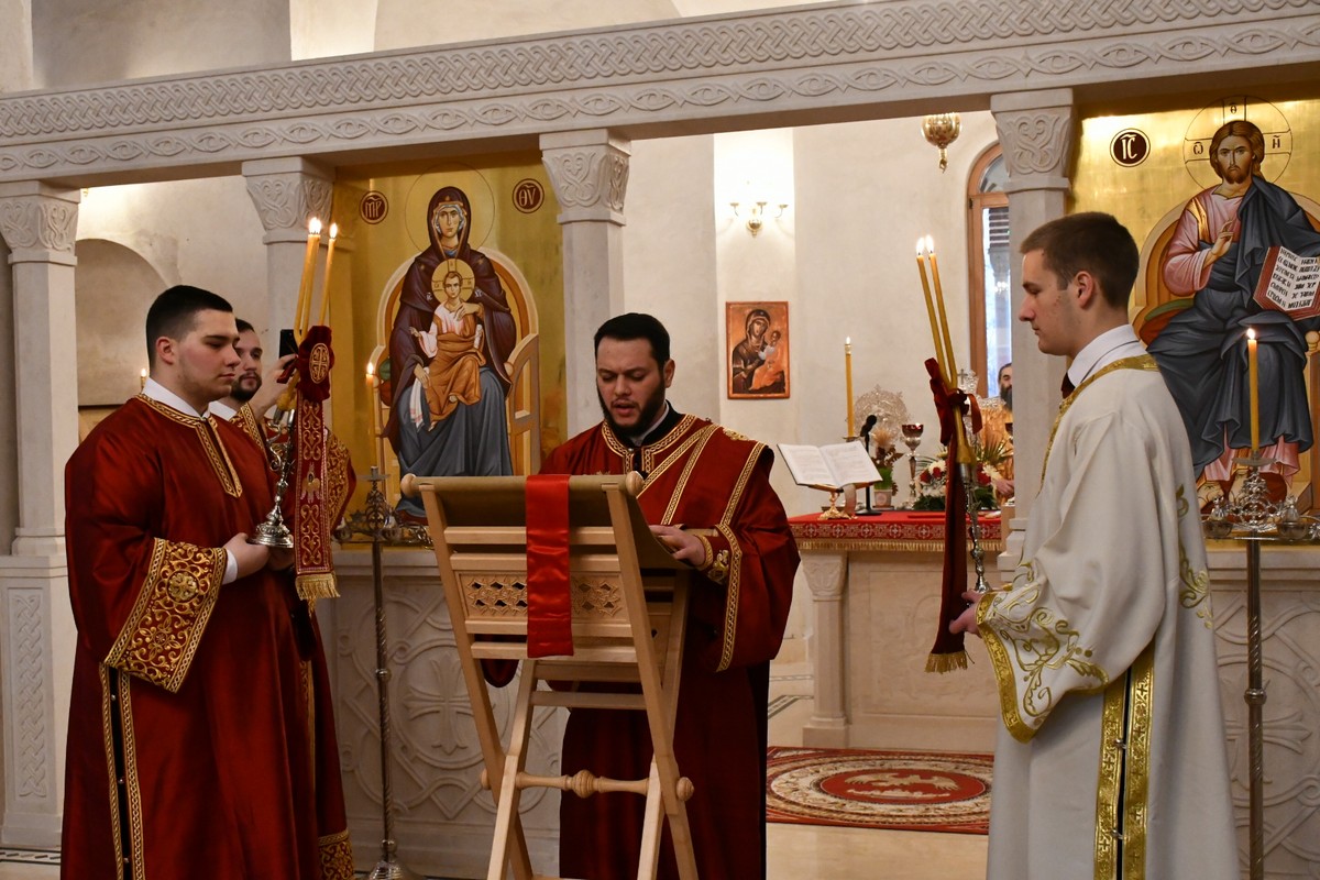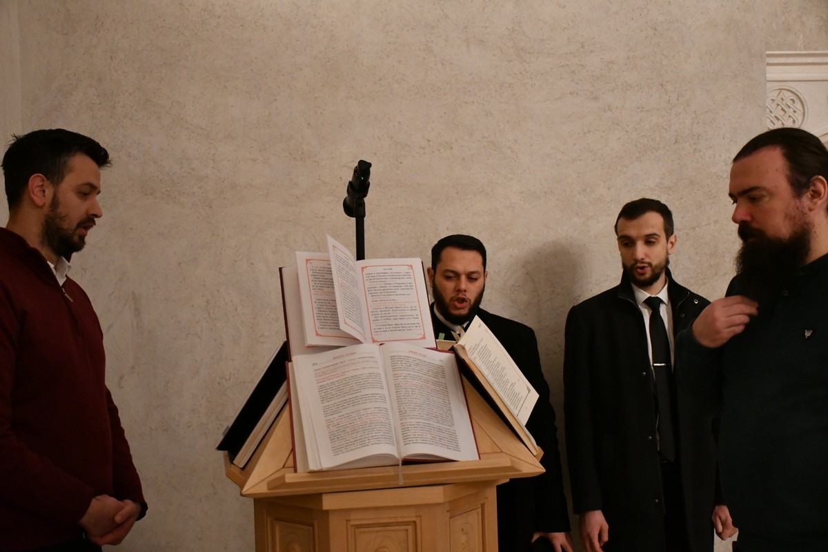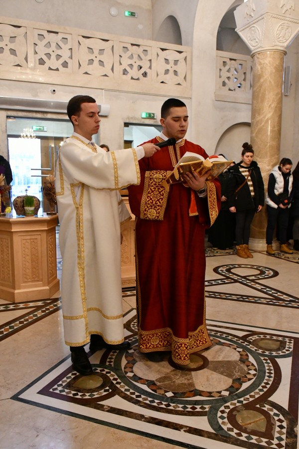 Након одслужених Царских часова, на самом почетку евхаристијског сабрања, Високопреосвећени Владика је у први чин свештенства, чин чтеца, рукопроизвео Лазара Радосављевића, ученика пете године нишке Богословије Светих Кирила и Методија.