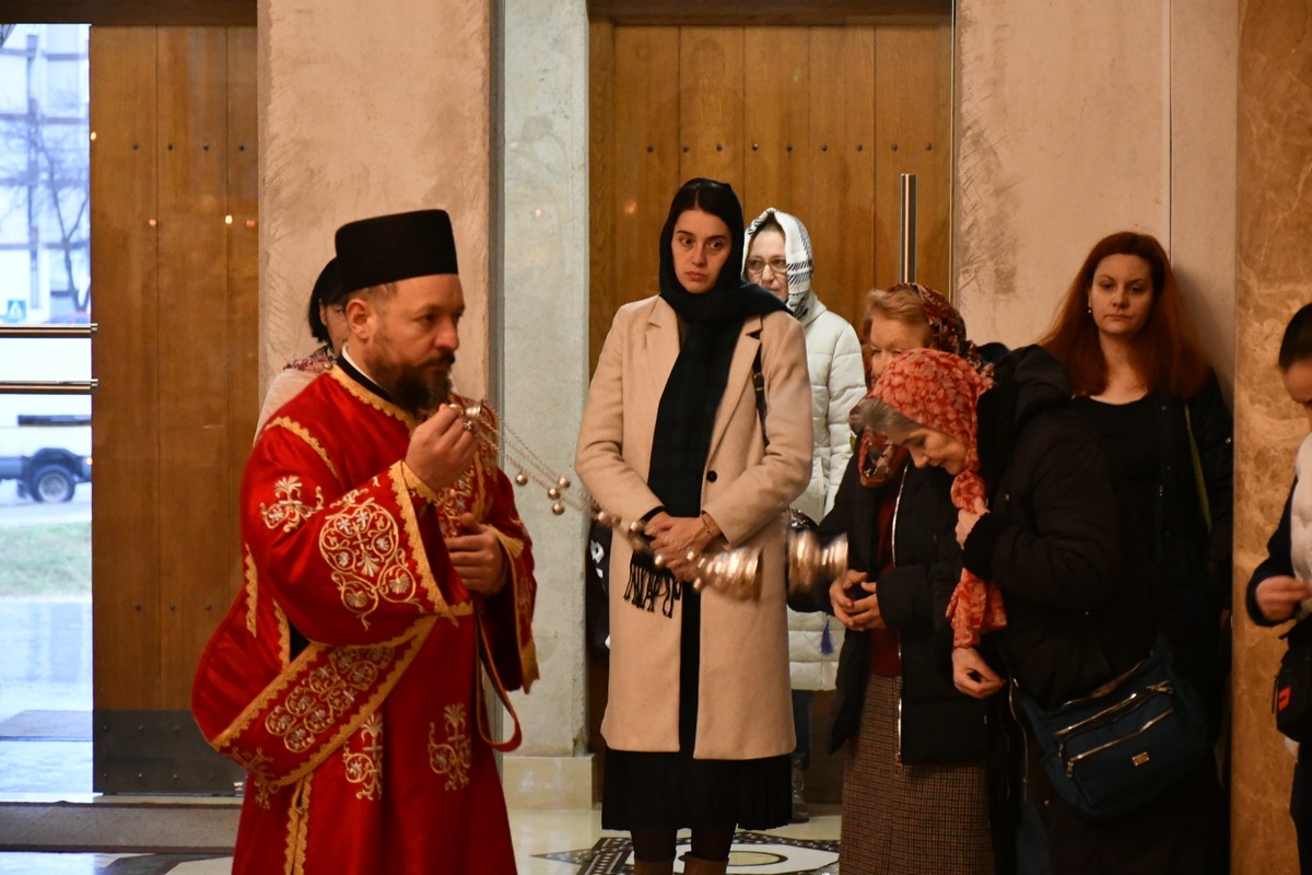 Високопреосвећеном Митрополиту саслуживали су протојереј Предраг Радосављевић, старешина храма, протојереј Владан Стојановић, парох трећи, јереј Драган Стефановић, парох други, јеромонах Пантелејмон Мијаиловић, ђакон Стефан Пекић и ђакон Ранђел Стошић.