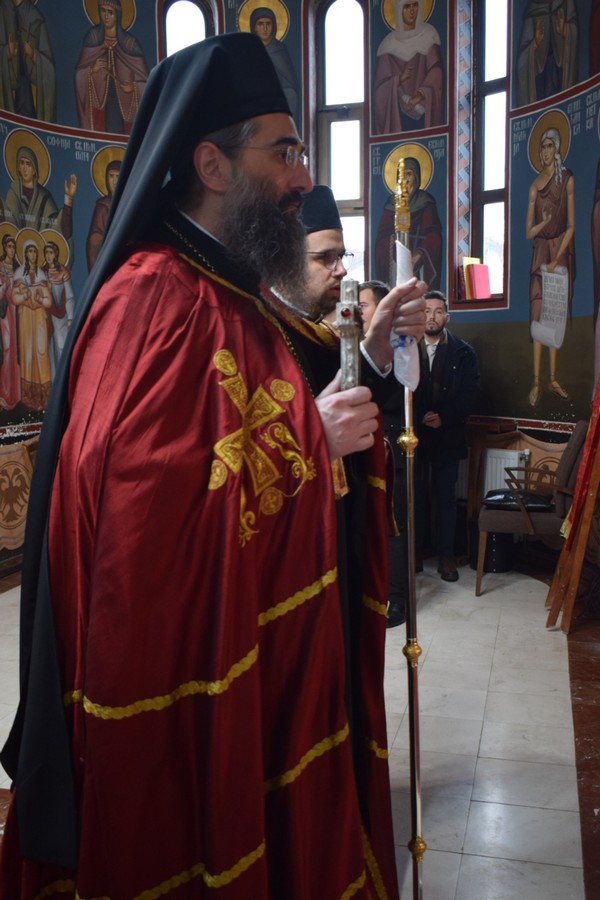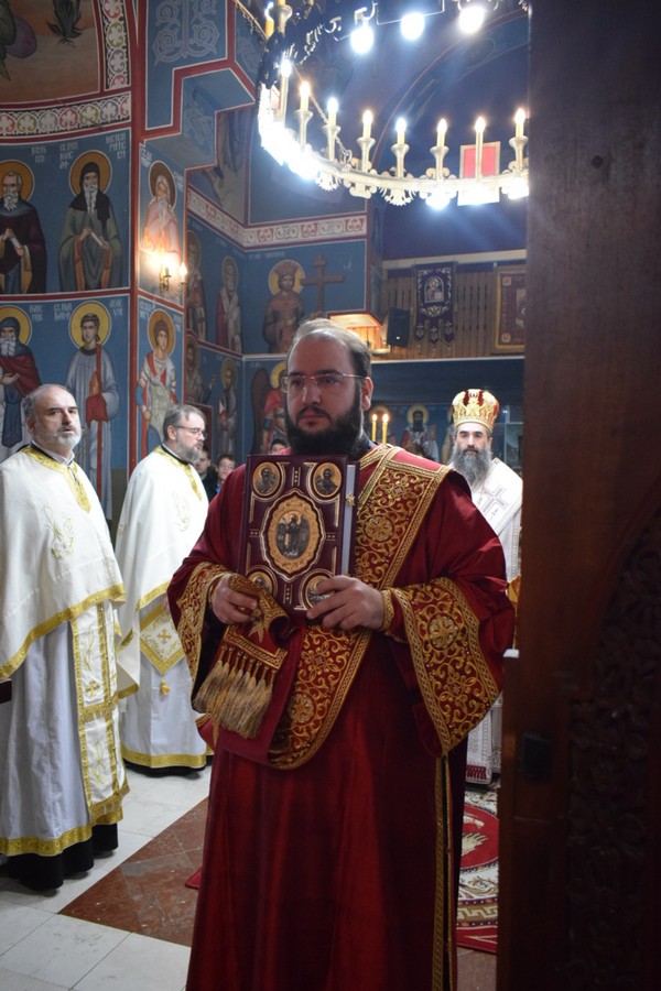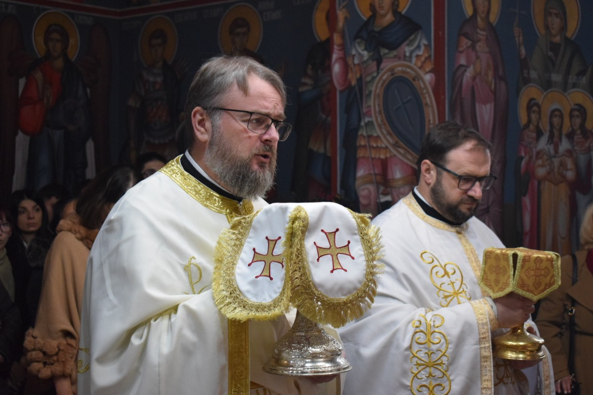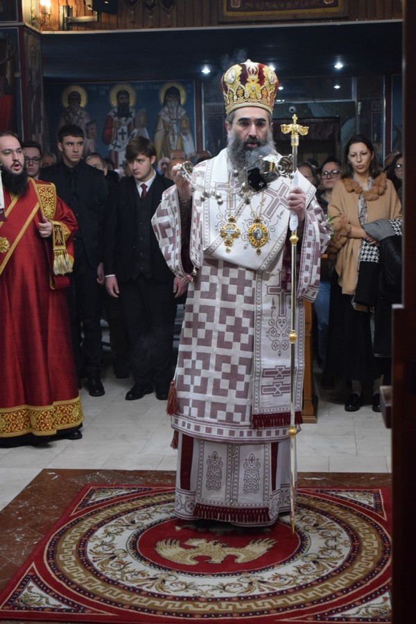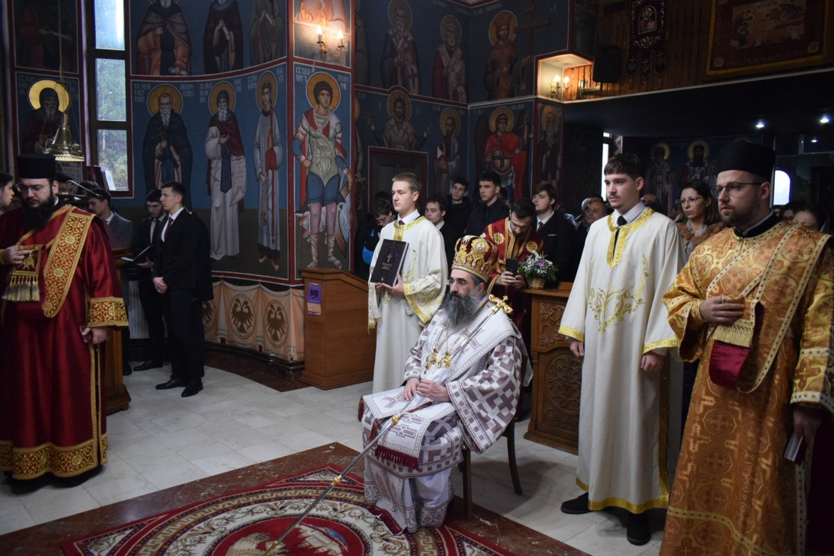 Високопреосвећеном Митрополиту саслуживали су протојереј Дејан Крстић, ректор нишке Богословије Светих Кирила и Методија, протојереј Бобан Стојковић, старешина храма, јереј Љубиша Костић, професор Богословије, протођакон Ђорђе Филиповић и ђакон Предраг Владисављевић.