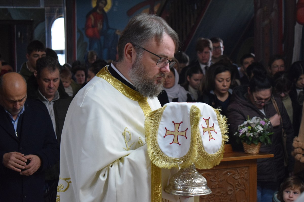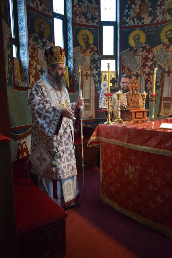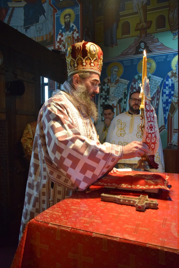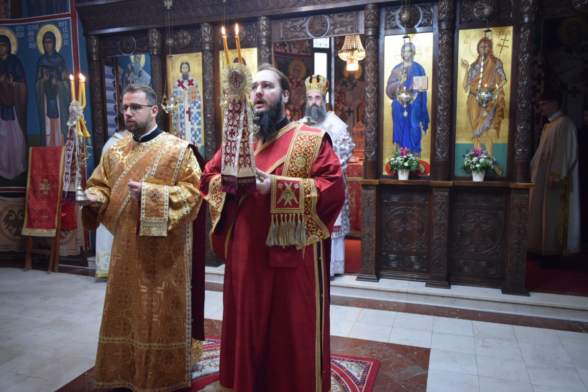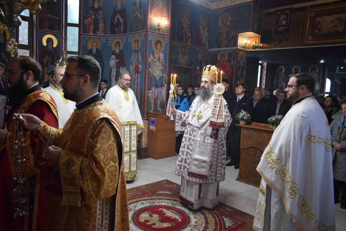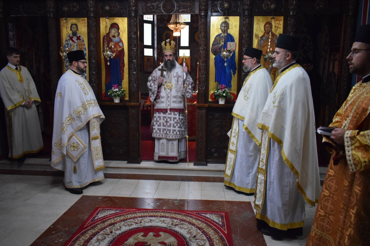 Храм Хиландарског метоха у Нишу био је испуњен верним народом, а службу је красило појање ученика нишке Богословије.