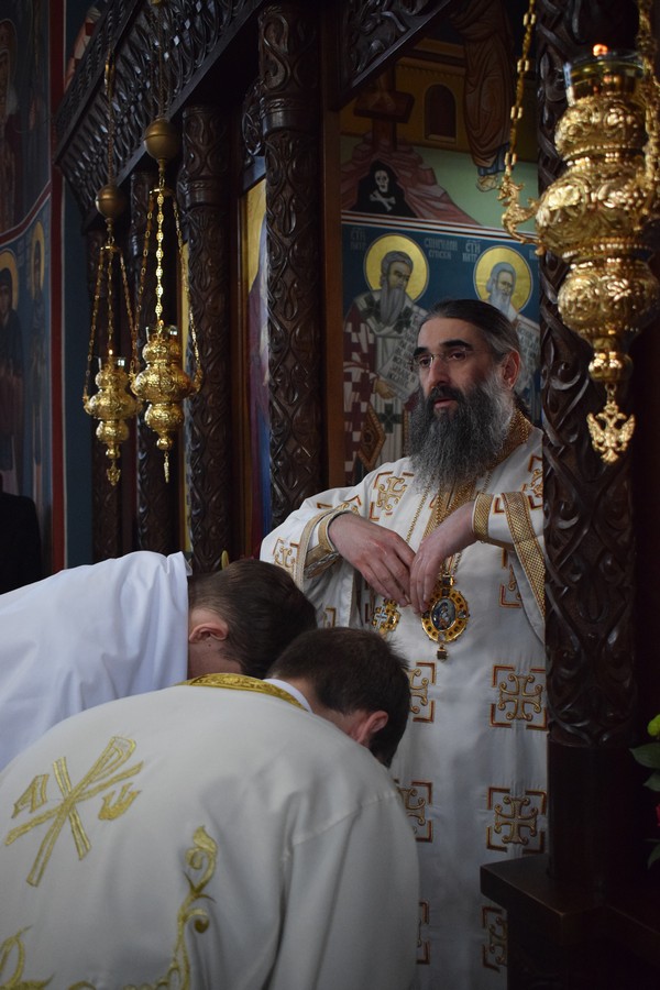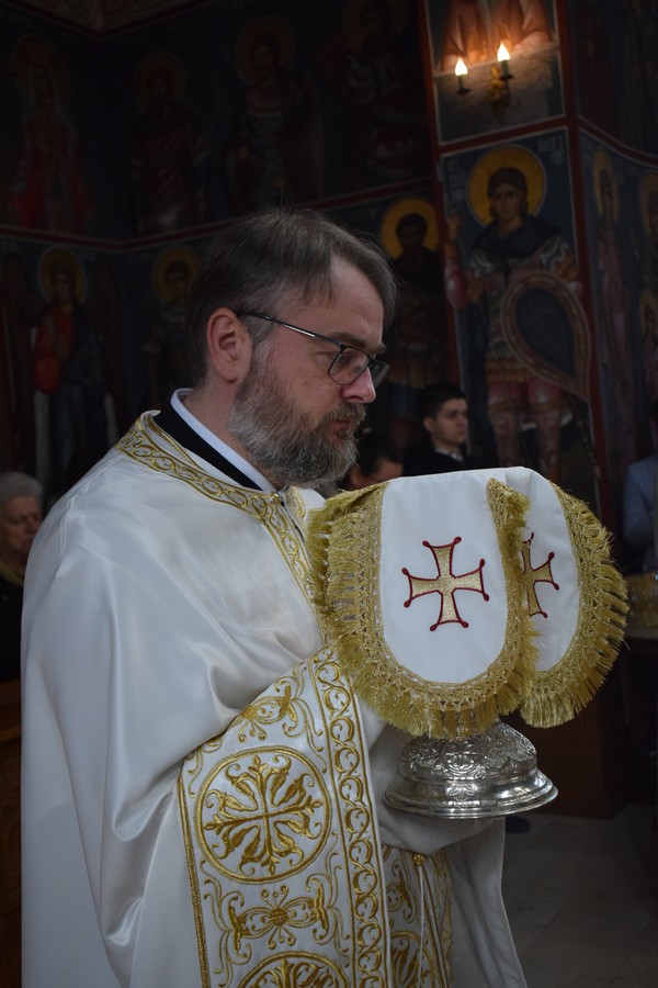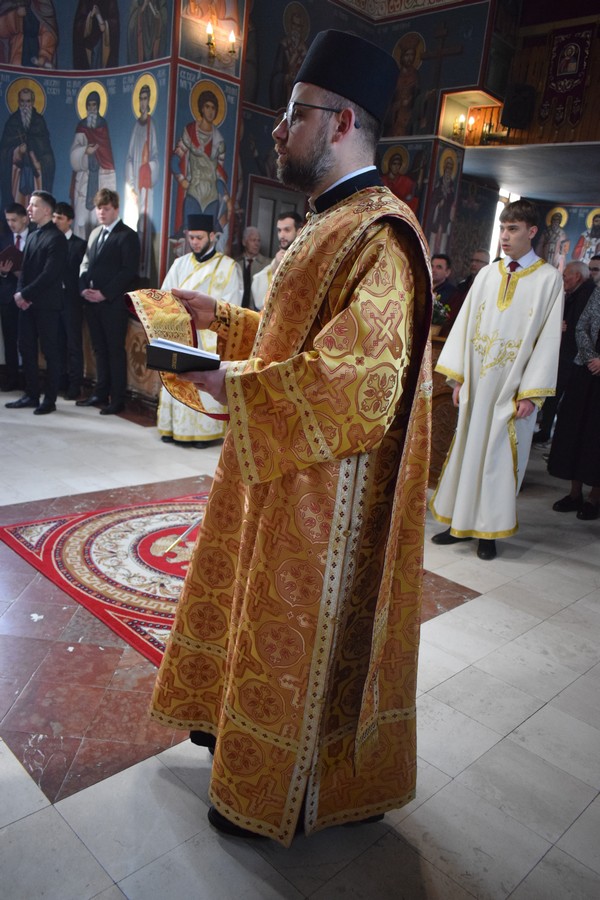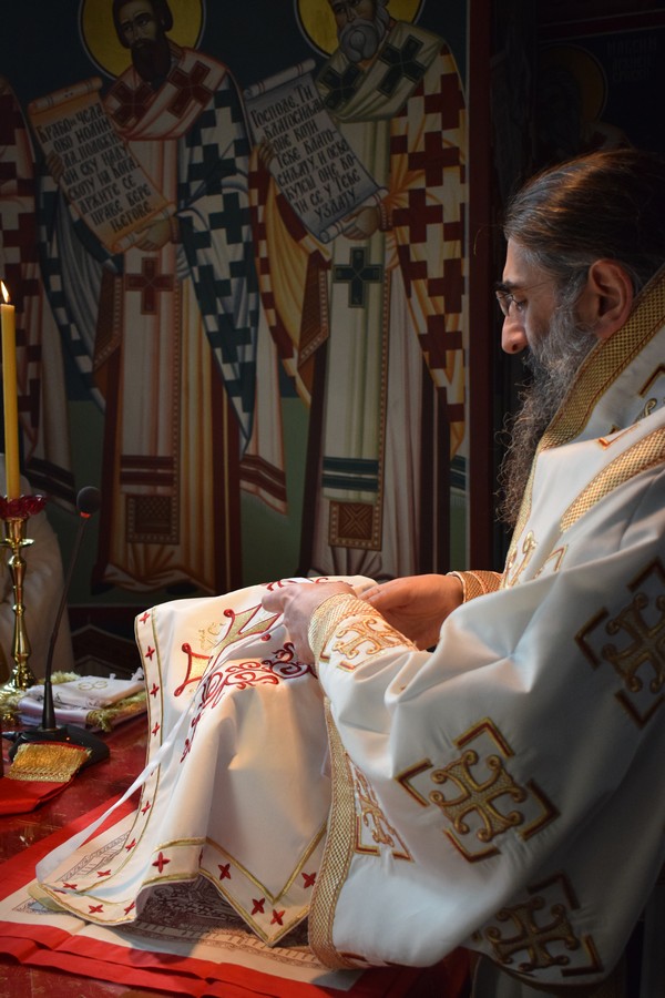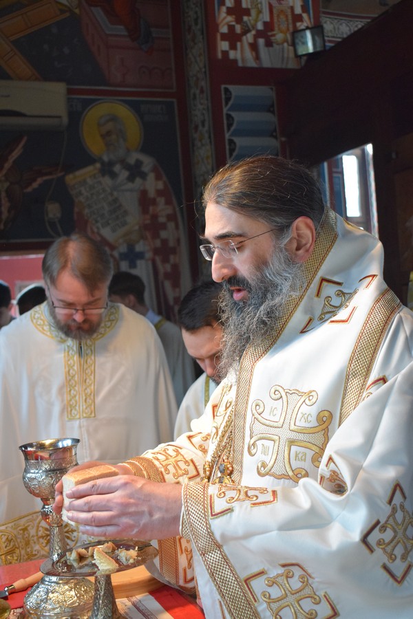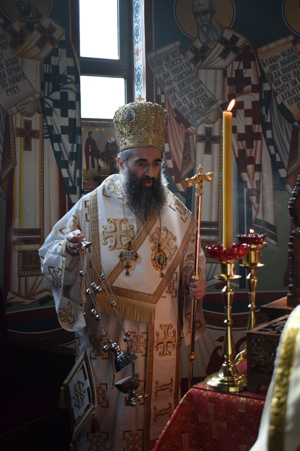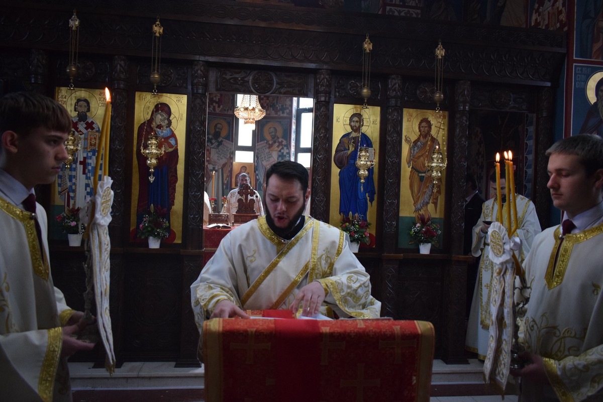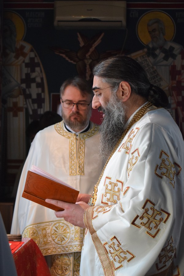 Високопреосвећеном Митрополиту саслуживали су протојереј Дејан Крстић, ректор нишке Богословије Светих Кирила и Методија, протојереј Бобан Стојковић, старешина храма и професор Богословије, јереј Љубиша Костић, парох при овој светињи и професор Богословије, јереј Стефан Цинцаревић, парох пети при храму Светог Цара Константина и Царице Јелене у Нишу, јеромонах Пантелејмон Мијаиловић, ђакон Стефан Пекић и ђакон Предраг Владисављевић.