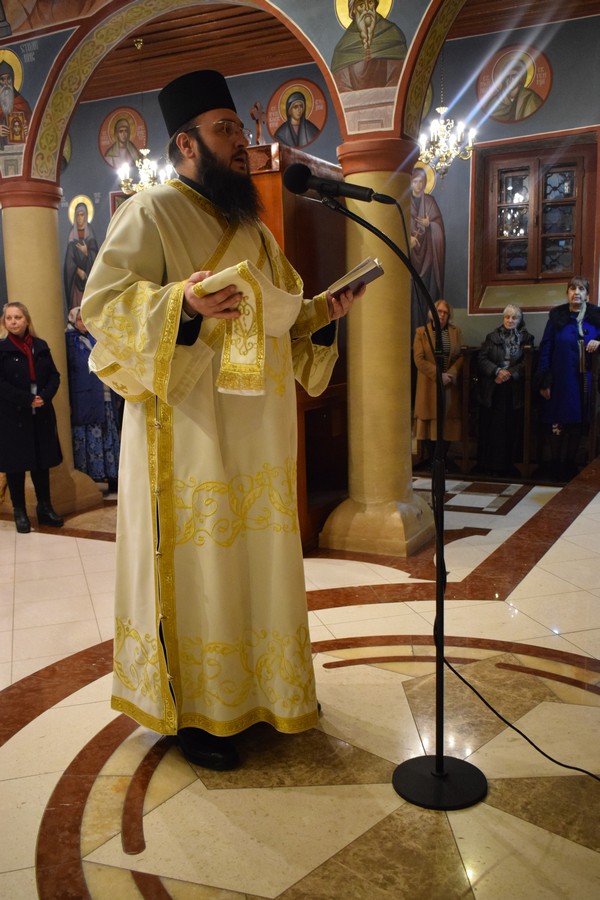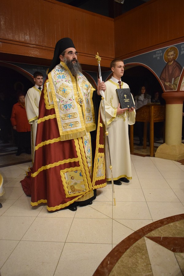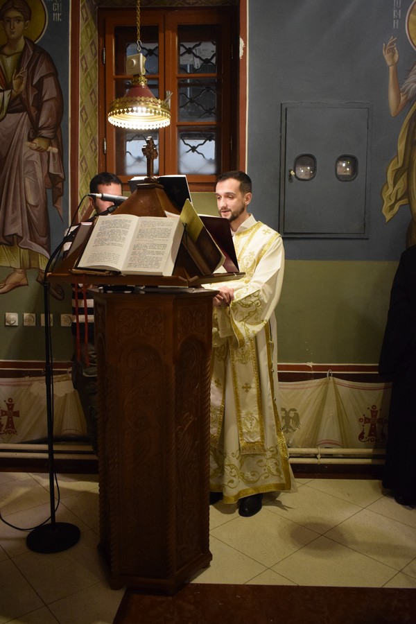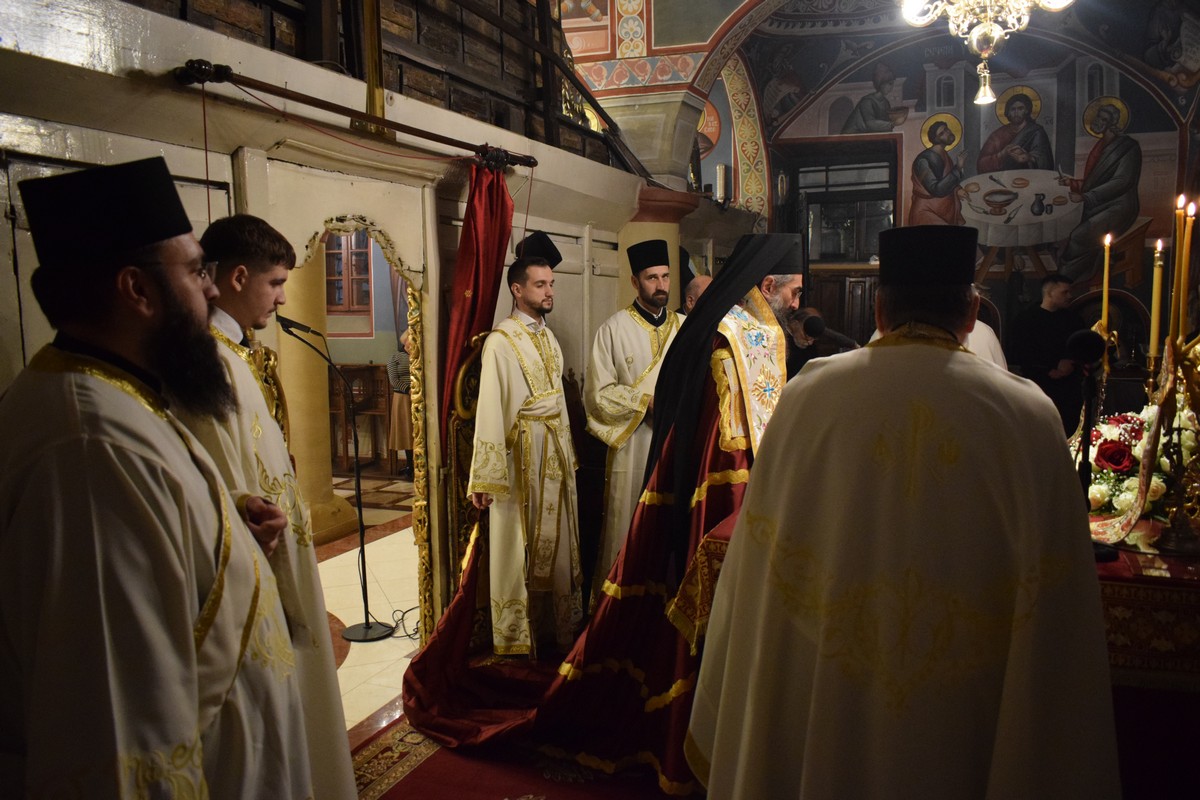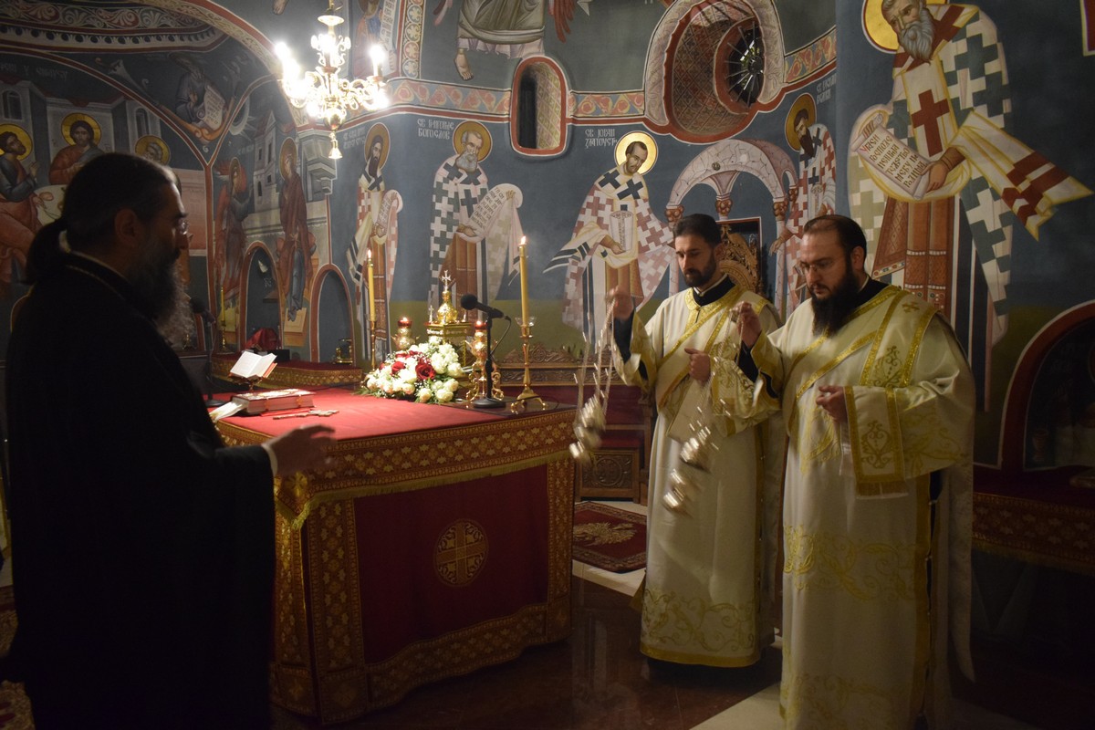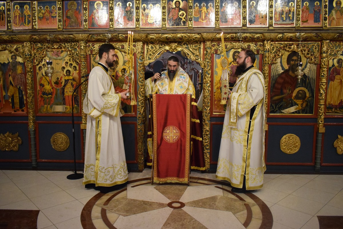 Високопреосвећеном Митрополиту саслуживали су протојереј-ставрофор Бранислав Цинцаревић, старешина Саборног храма, протојереј Борислав Стаменковић, парох трећи, протођакон Ђорђе Филиповић и протођакон Стеван Кричка.