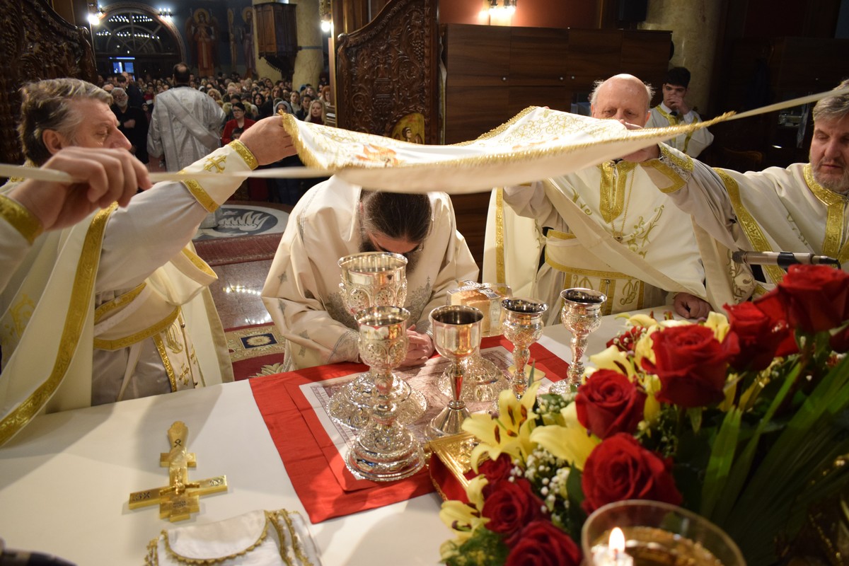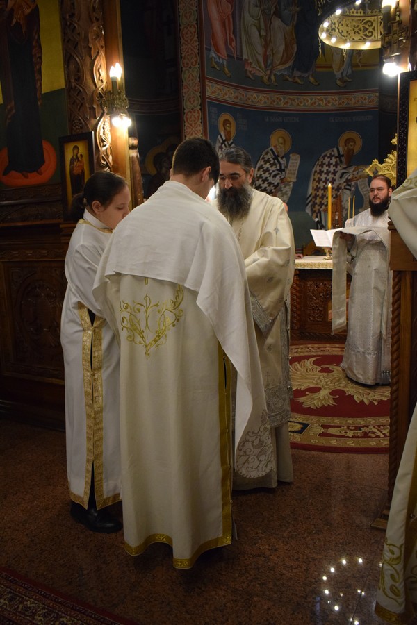 Високопреосвећеном Митрополиту саслуживали су протојереј-ставрофор Бранислав Цинцаревић, старешина храма, протојереј-ставрофор Влајко Грабеж, свештеник у пензији, протојереј-ставрофор Ненад Микић, парох први при Саборном храму, протојереј Миодраг Павловић, Архијерејски намесник први нишки, протојереј Владица Савић, парох пети, јереј Владе Капларевић, службеник ЕУО Епархије нишке и протођакон Ђорђе Филиповић.