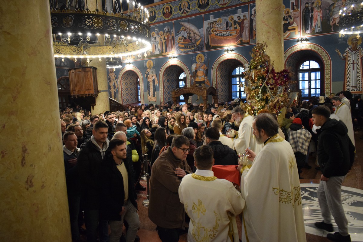 Мноштво народа у лађи нишког катедралног храма, као и свечано појање чланова Хора "Бранко" умногоме су увеличали ово литургијско сабрање, доприневши достојној прослави празника Христовог Оваплоћења.