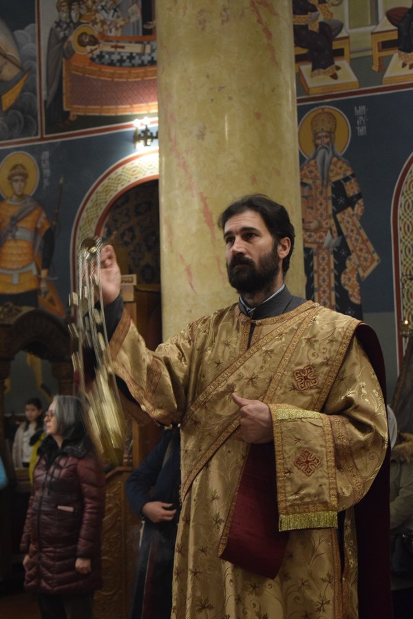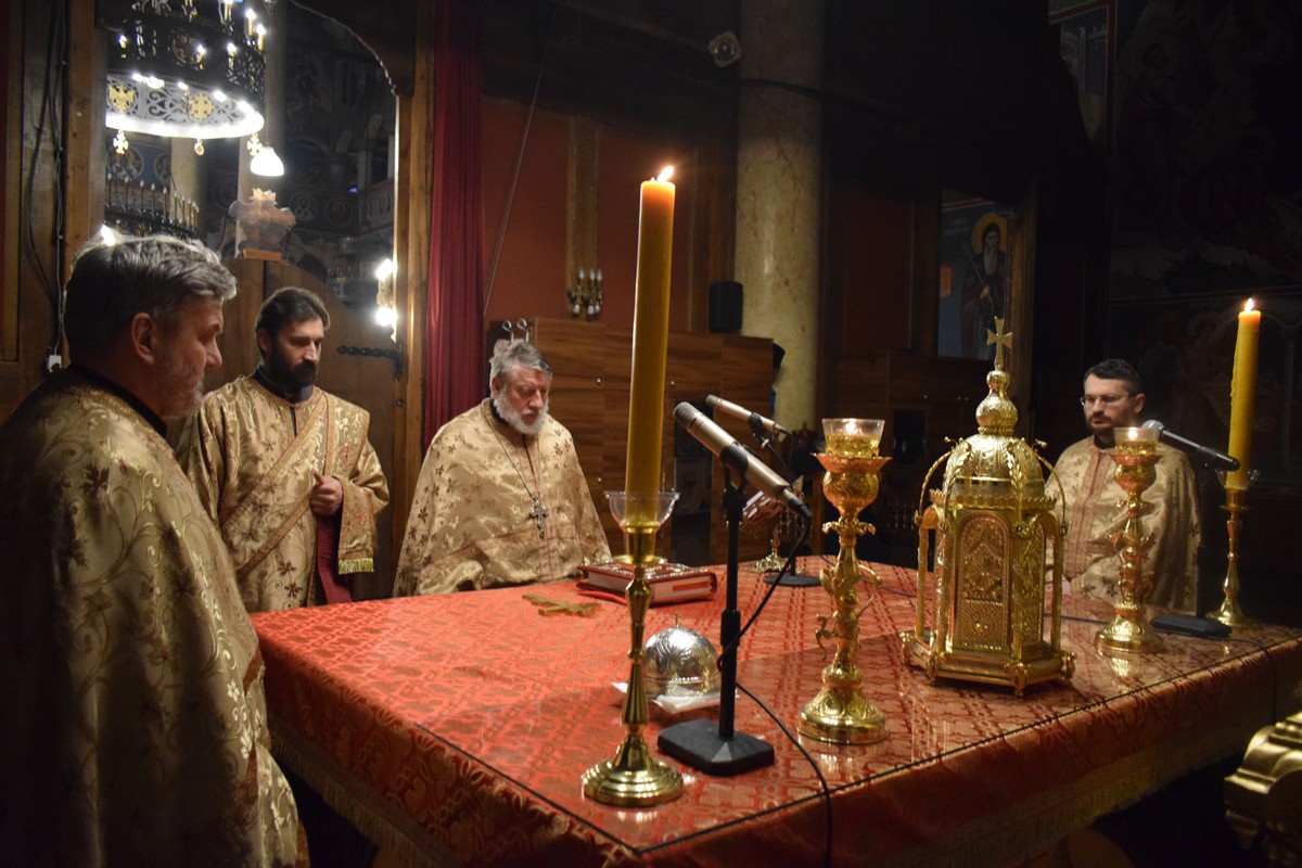 Вечерње богослужење служили су протојереј-ставрофор Бранислав Цинцаревић, старешина храма, протојереј Миодраг Павловић, Архијерејски намесник први нишки, протојереј Владица Савић, парох пети при овој цркви и протођакон Стеван Кричка.