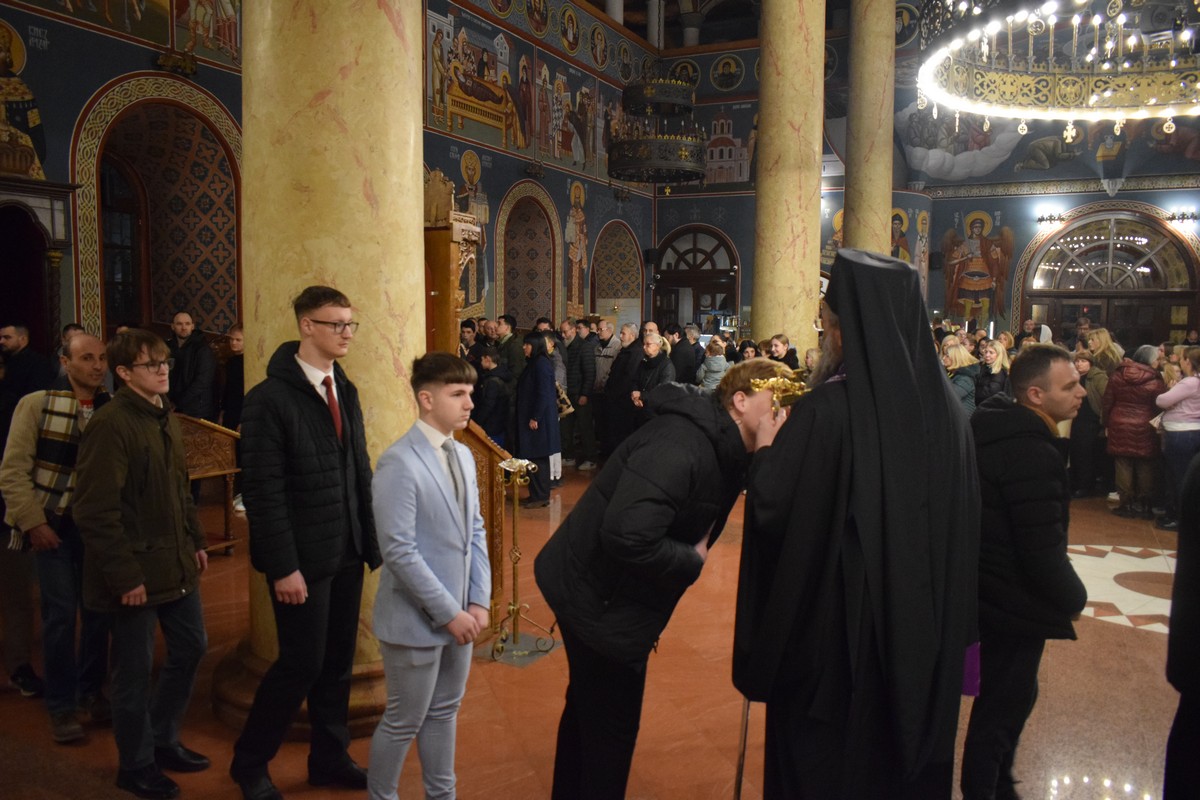 У недељу Сиропусну, 22. фебруара 2026. године, Његово Високопреосвештенство Митрополит нишки г. Арсеније присуствовао је вечерњем богослужењу у нишком Саборном храму Силаска Светога Духа на Апостоле, уочи почетка Свете Четрдесетнице.