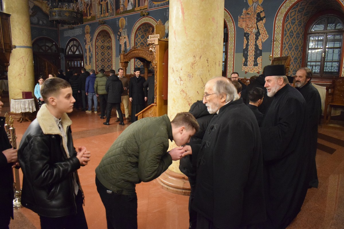 На крају службе, Високопреосвећени Митрополит узнео је коленопреклону молитву за благословен почетак Часног поста, по чему је уследило међусобно праштање свештенства и верног народа, како би се у Свету Четрдесетницу ушло чисте савести и измирених односа са ближњим.