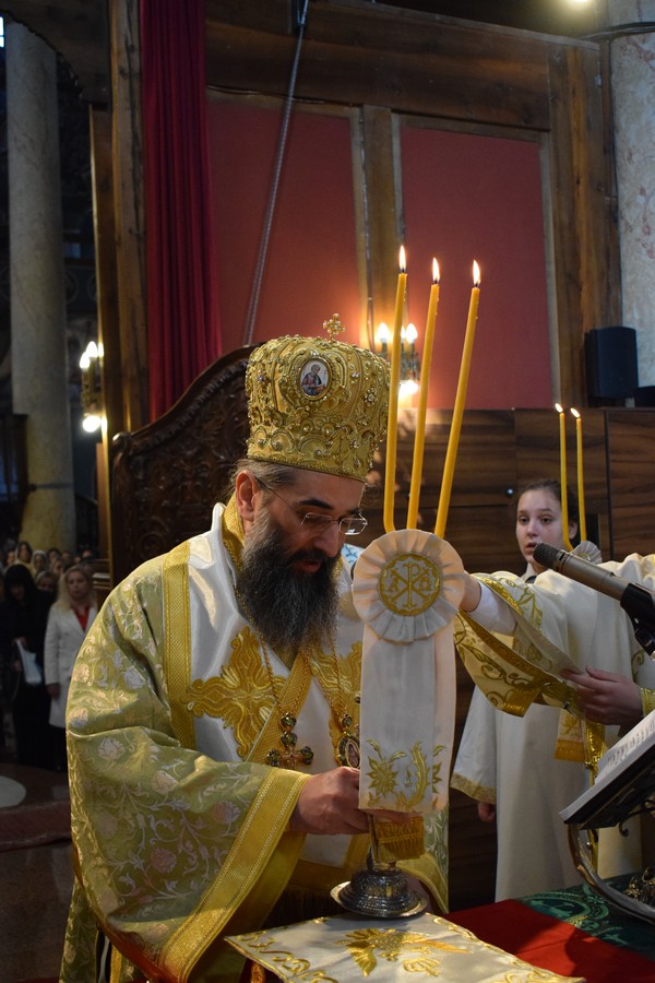 У недељу Цветну, 5. априла 2026. године, на дан празника Уласка Господа и Спаса Исуса Христа у Јерусалим, Његово Високопреосвештенство Митрополит нишки г. Арсеније началствовао је свештеним евхаристијским сабрањем у Саборном храму Силаска Светога Духа на Апостоле у Нишу.