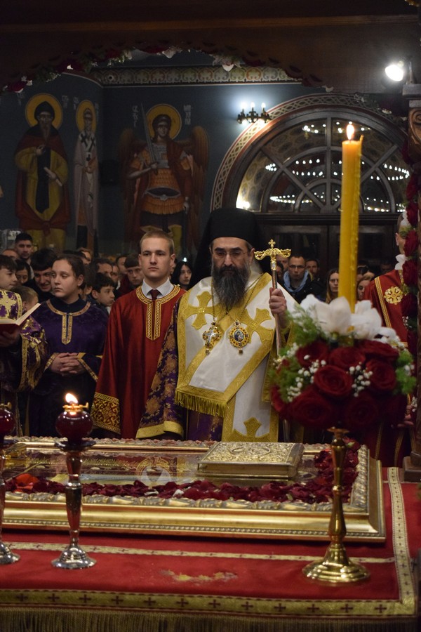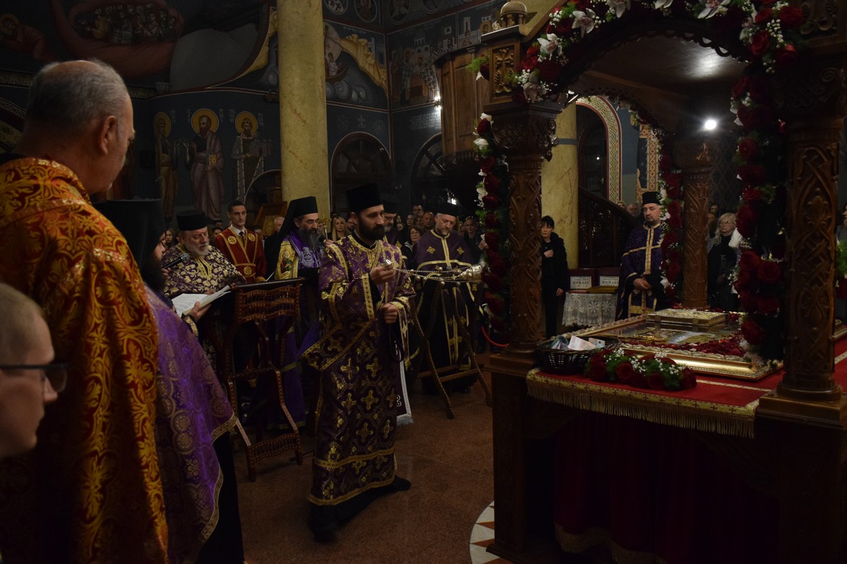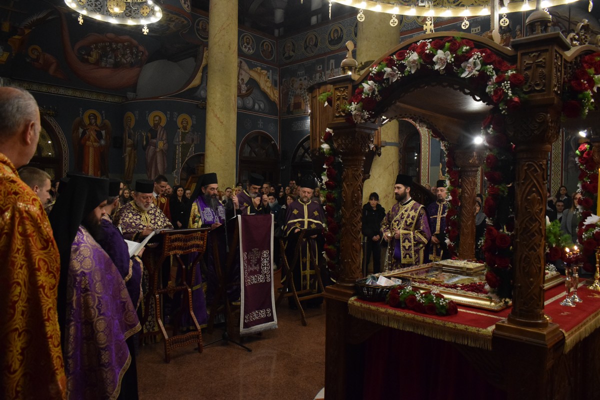 Високопреосвећеном Митрополиту саслуживали су протојереј-ставрофор Бранислав Цинцаревић, старешина цркве, протојереј-ставрофор Ненад Микић, парох први, протојереј Миодраг Павловић, Архијерејски намесник први нишки, протојереј Борислав Стаменковић, парох трећи, протојереј Владица Савић, јеромонах Пантелејмон Мијаиловић, протођакон Ђорђе Филиповић и протођакон Стеван Кричка.